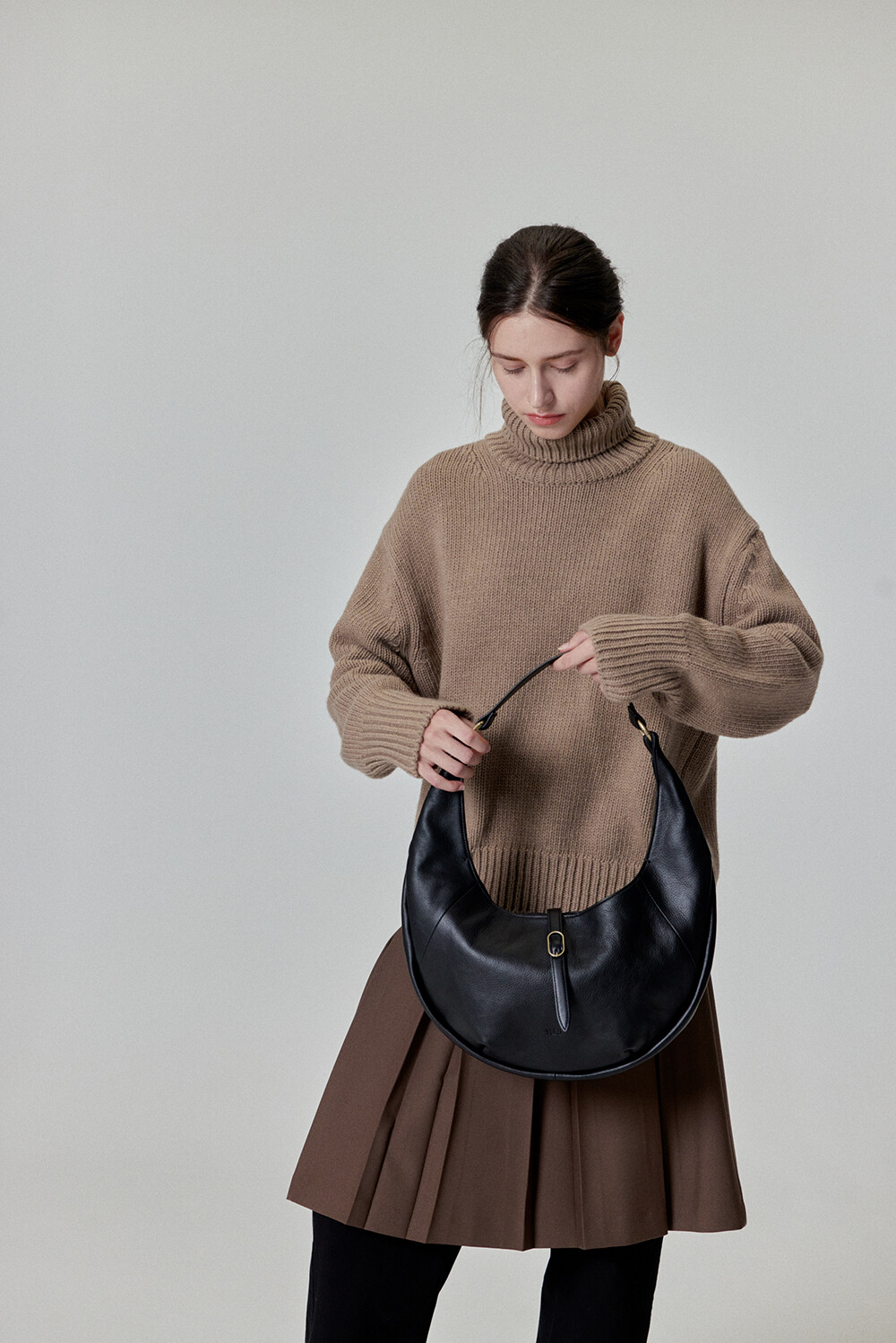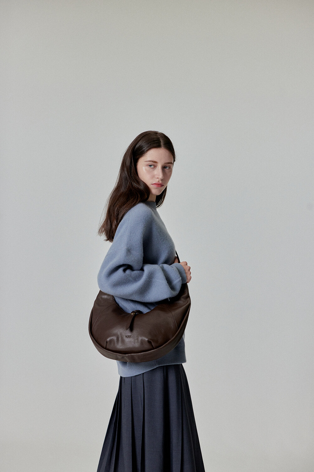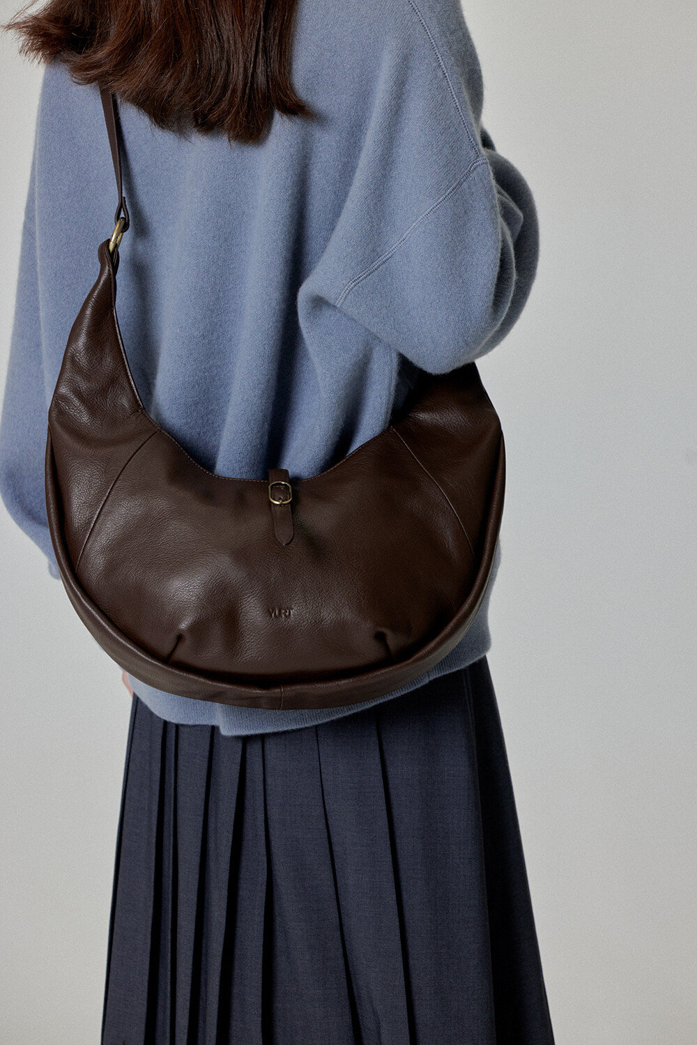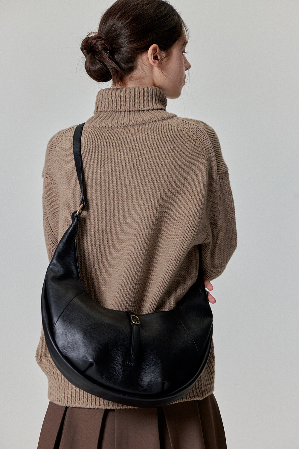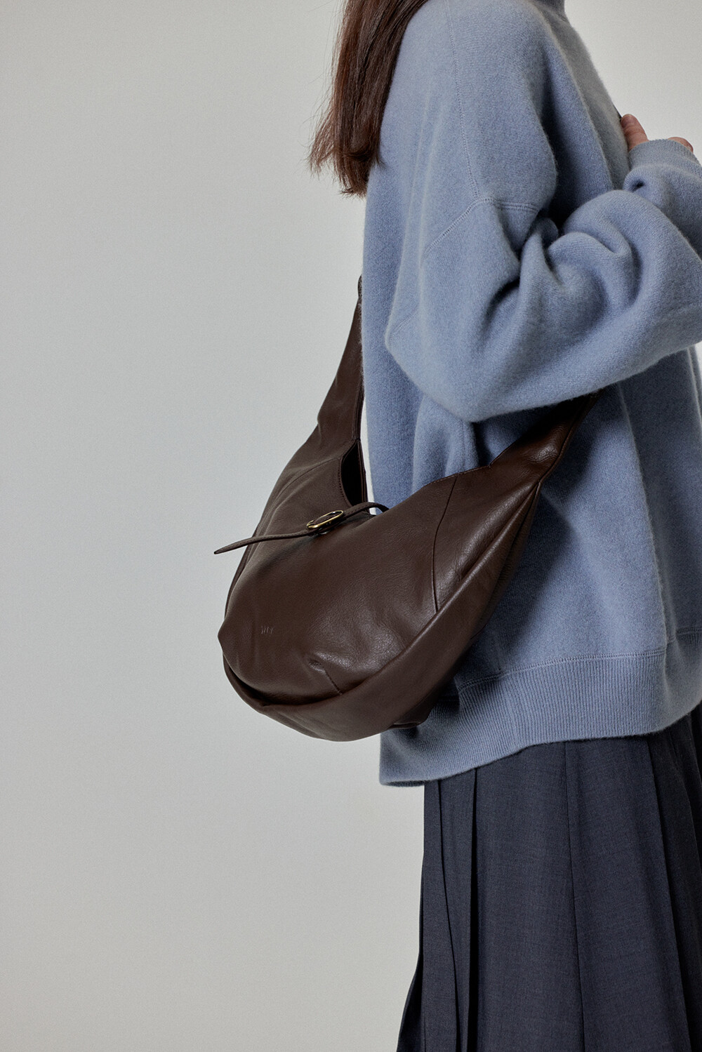 - 부드러운 소가죽에 다트를 잡아 형성한 반달형 실루엣과 볼드한 장식이 어우러진 호보백입니다.