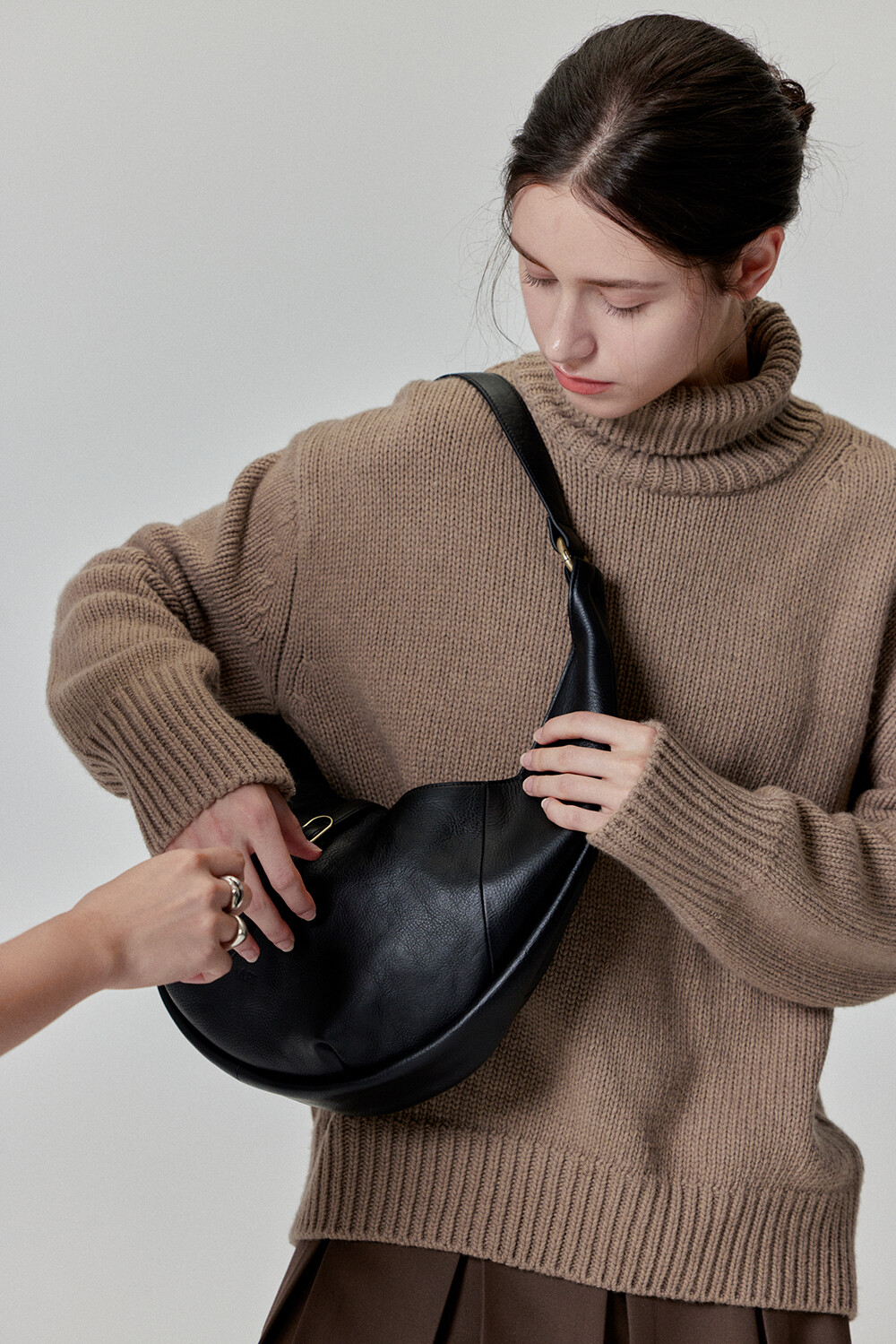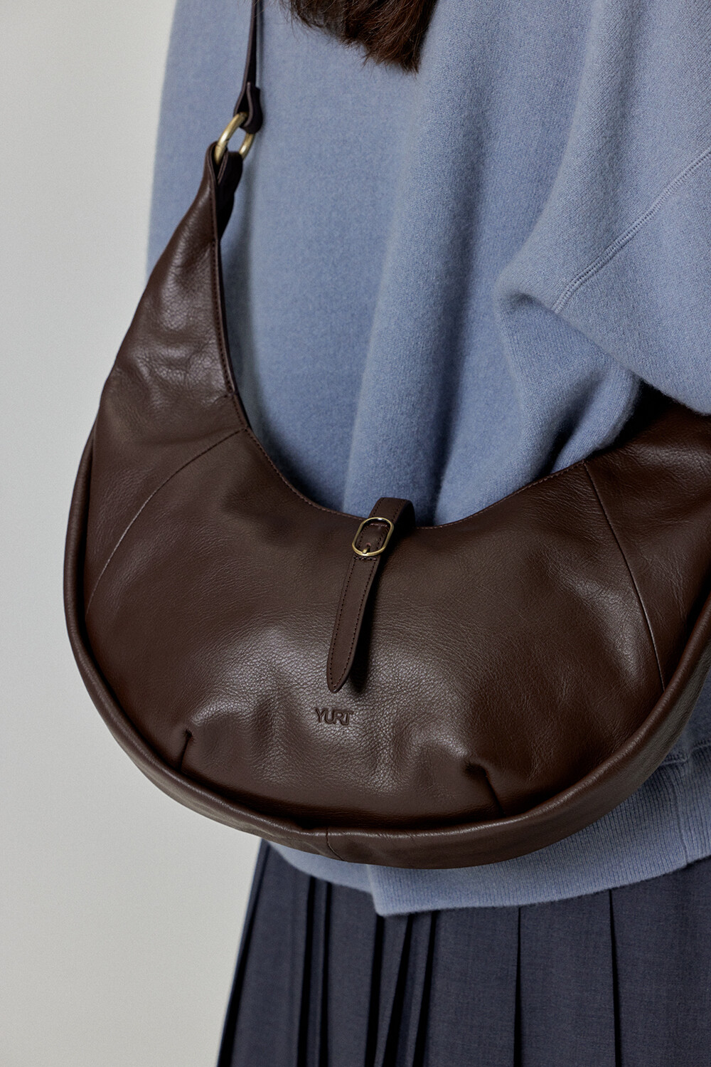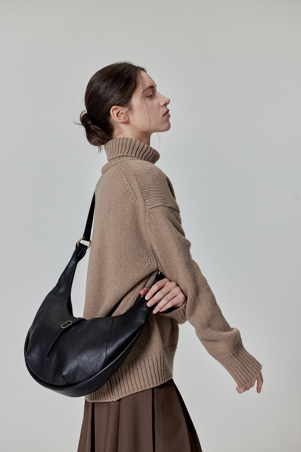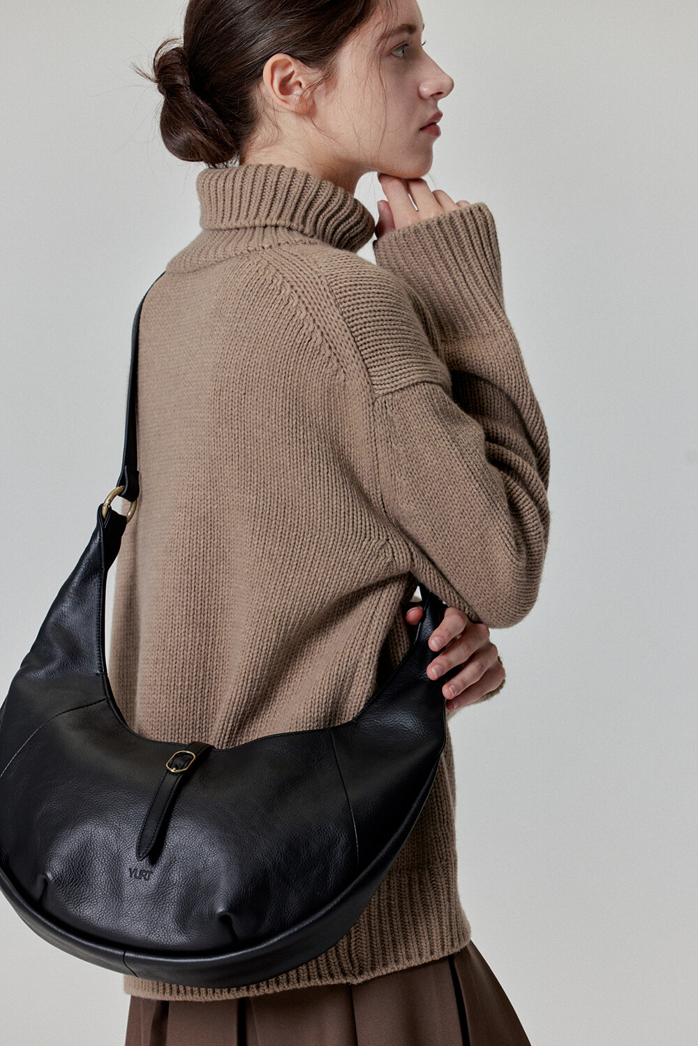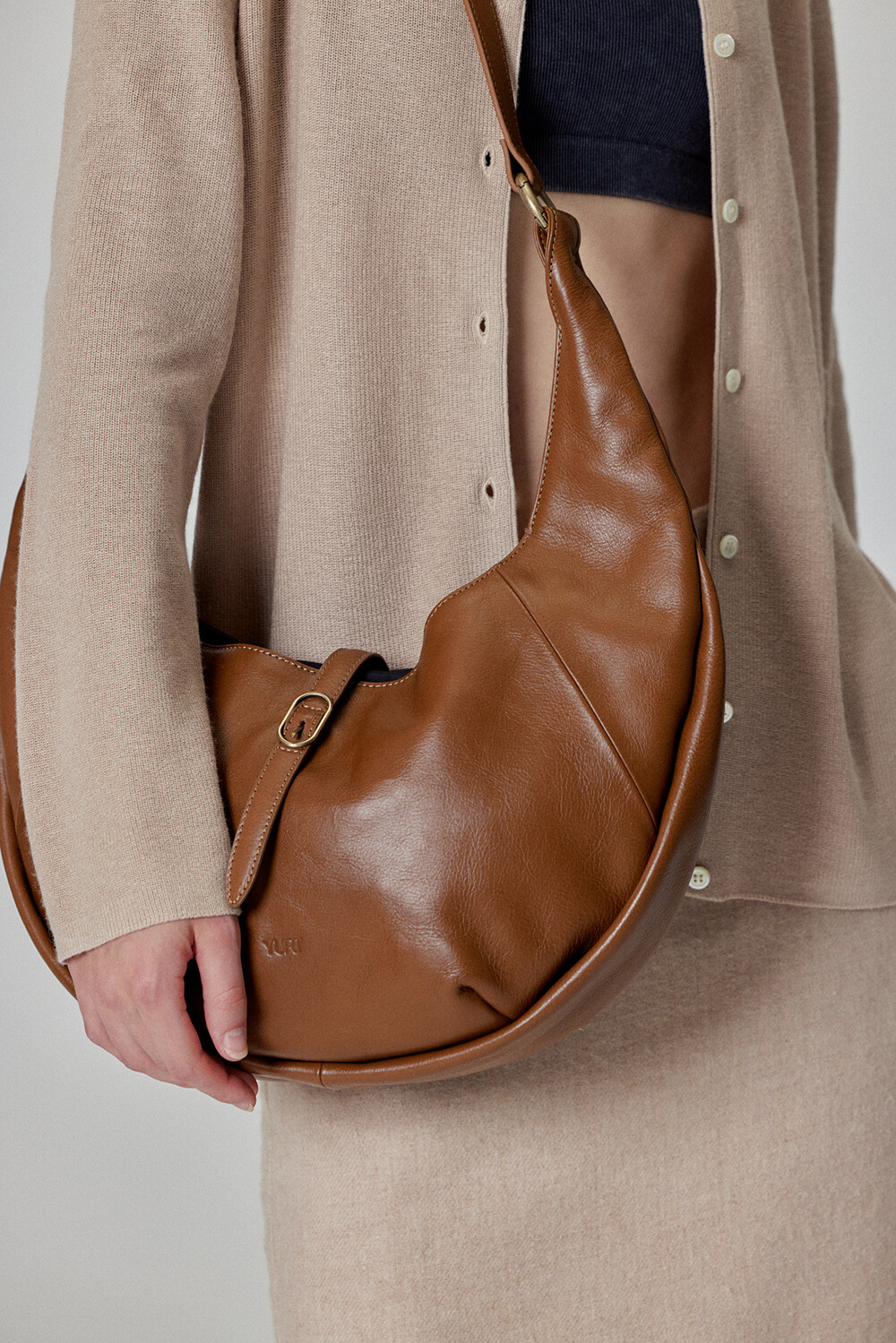 - 부드러운 소가죽에 다트를 잡아 형성한 반달형 실루엣과 볼드한 장식이 어우러진 호보백입니다.