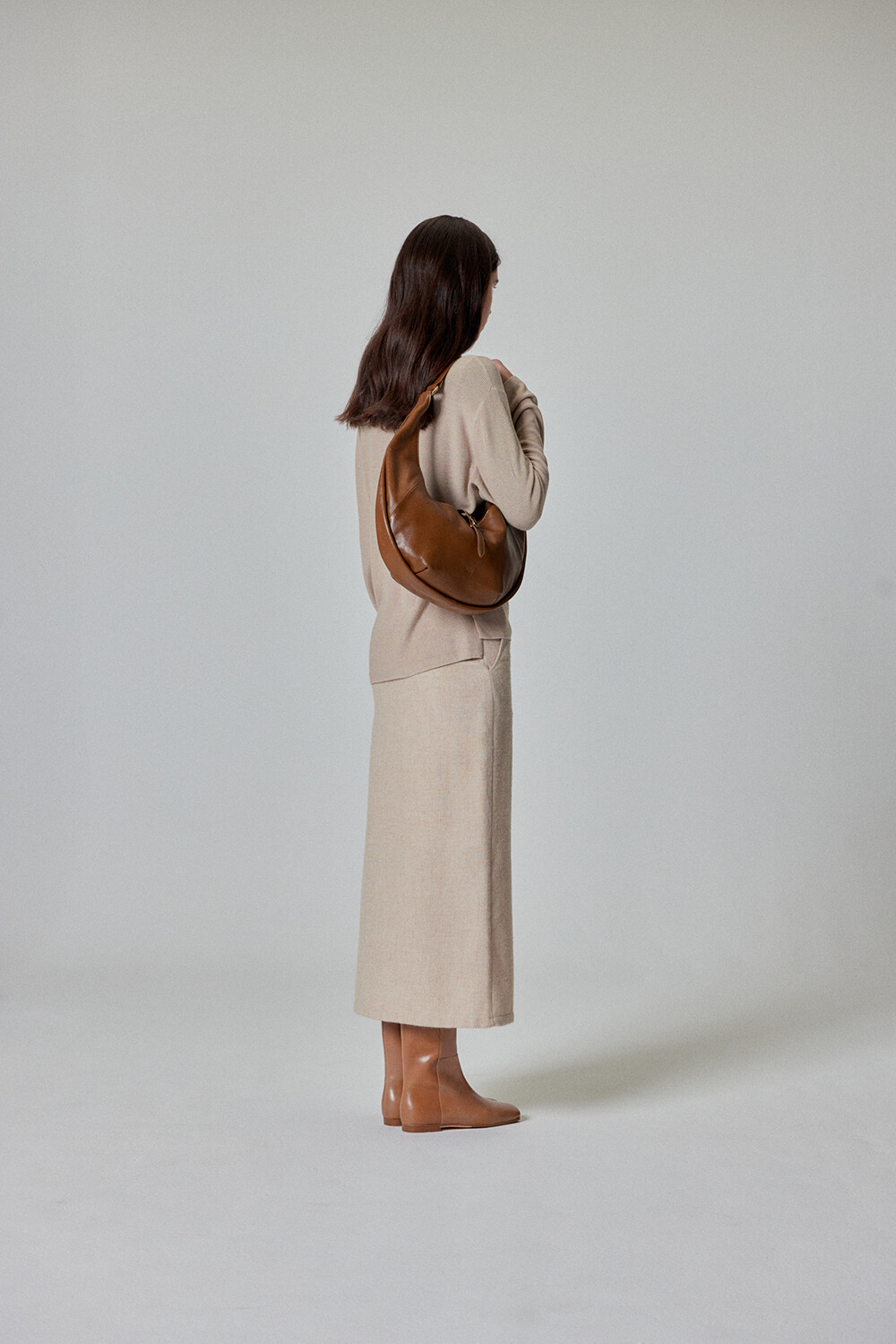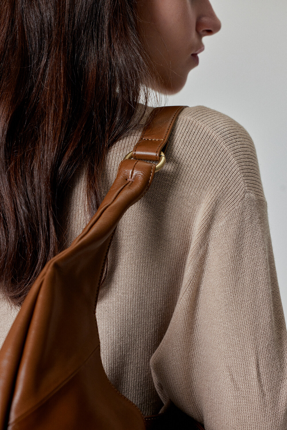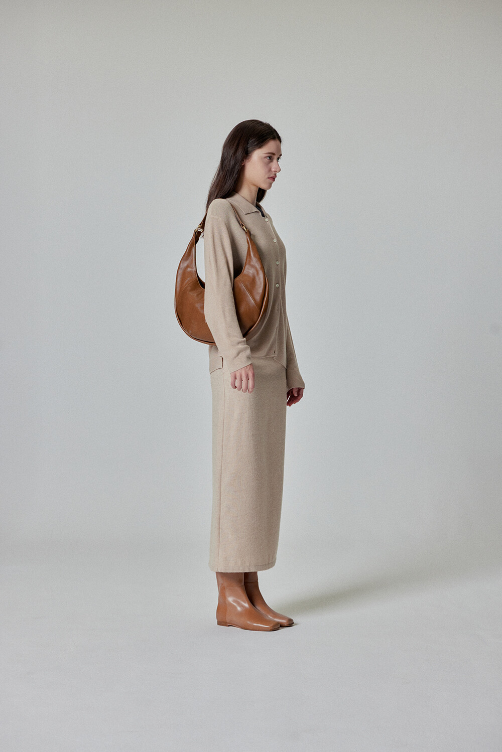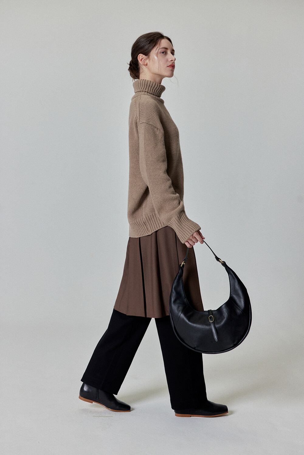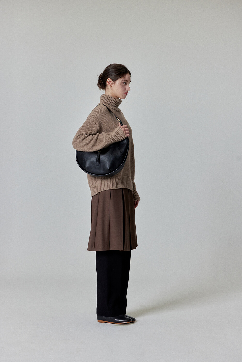 - 부드러운 소가죽에 다트를 잡아 형성한 반달형 실루엣과 볼드한 장식이 어우러진 호보백입니다.