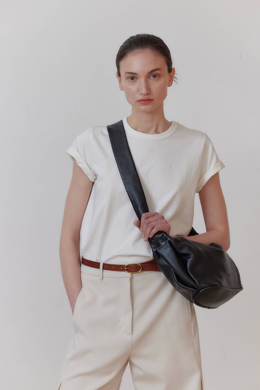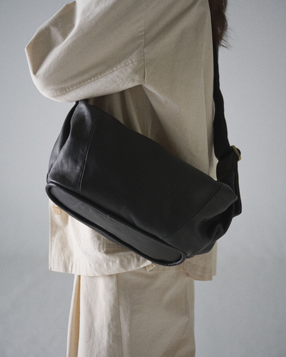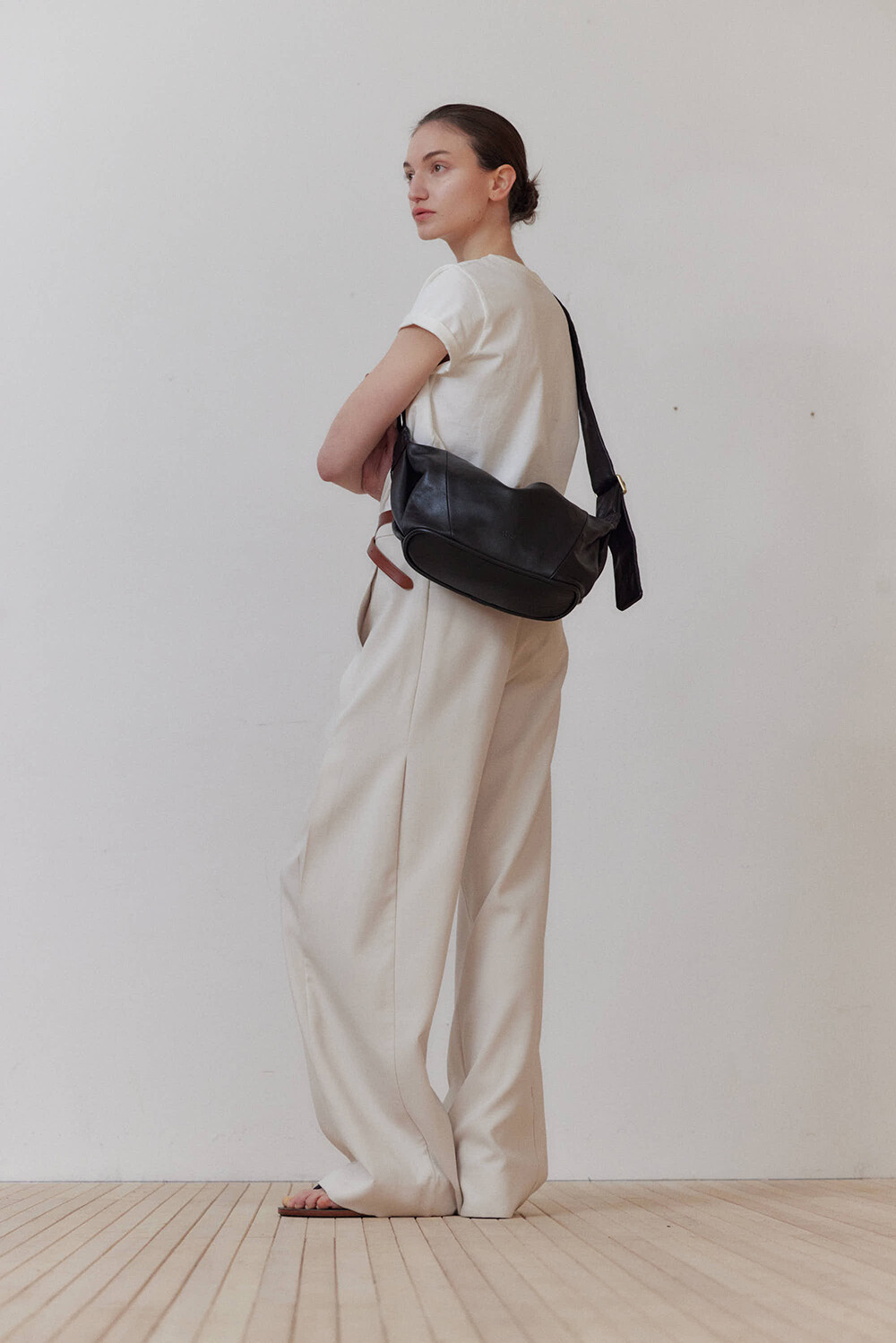 - 부드러운 소가죽으로 잡은 사이드에 턱 디테일이 돋보이는 백