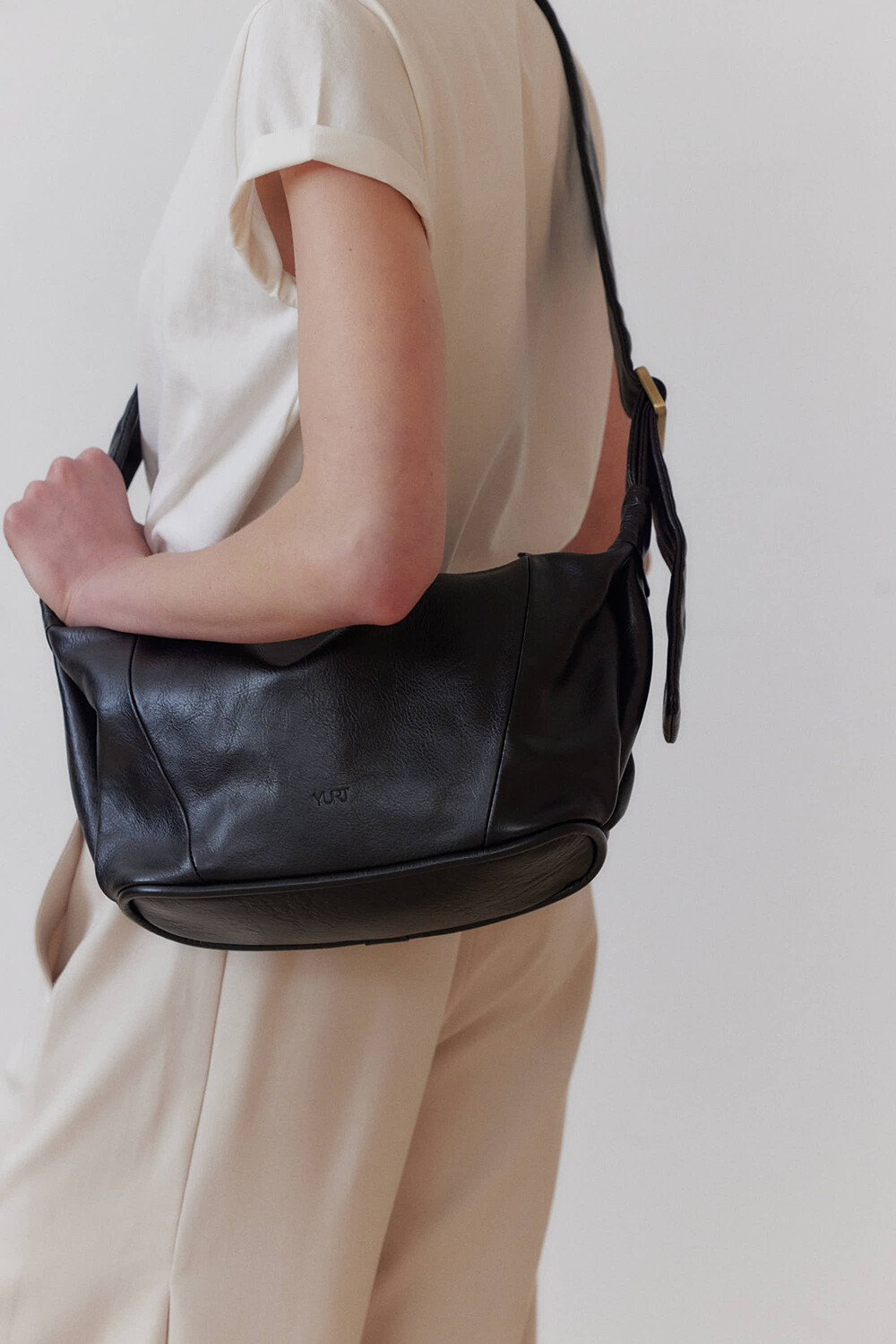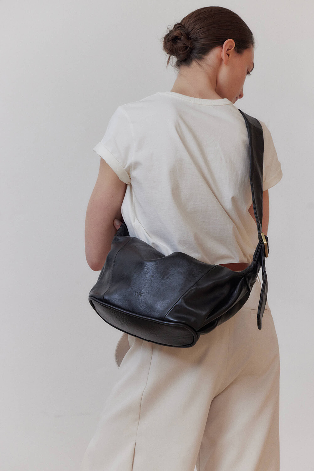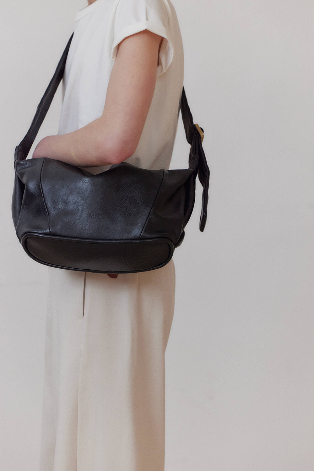 - 부드러운 소가죽으로 잡은 사이드에 턱 디테일이 돋보이는 백