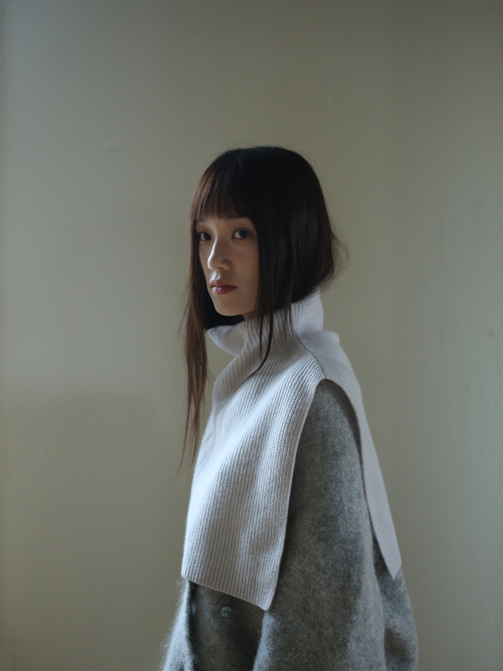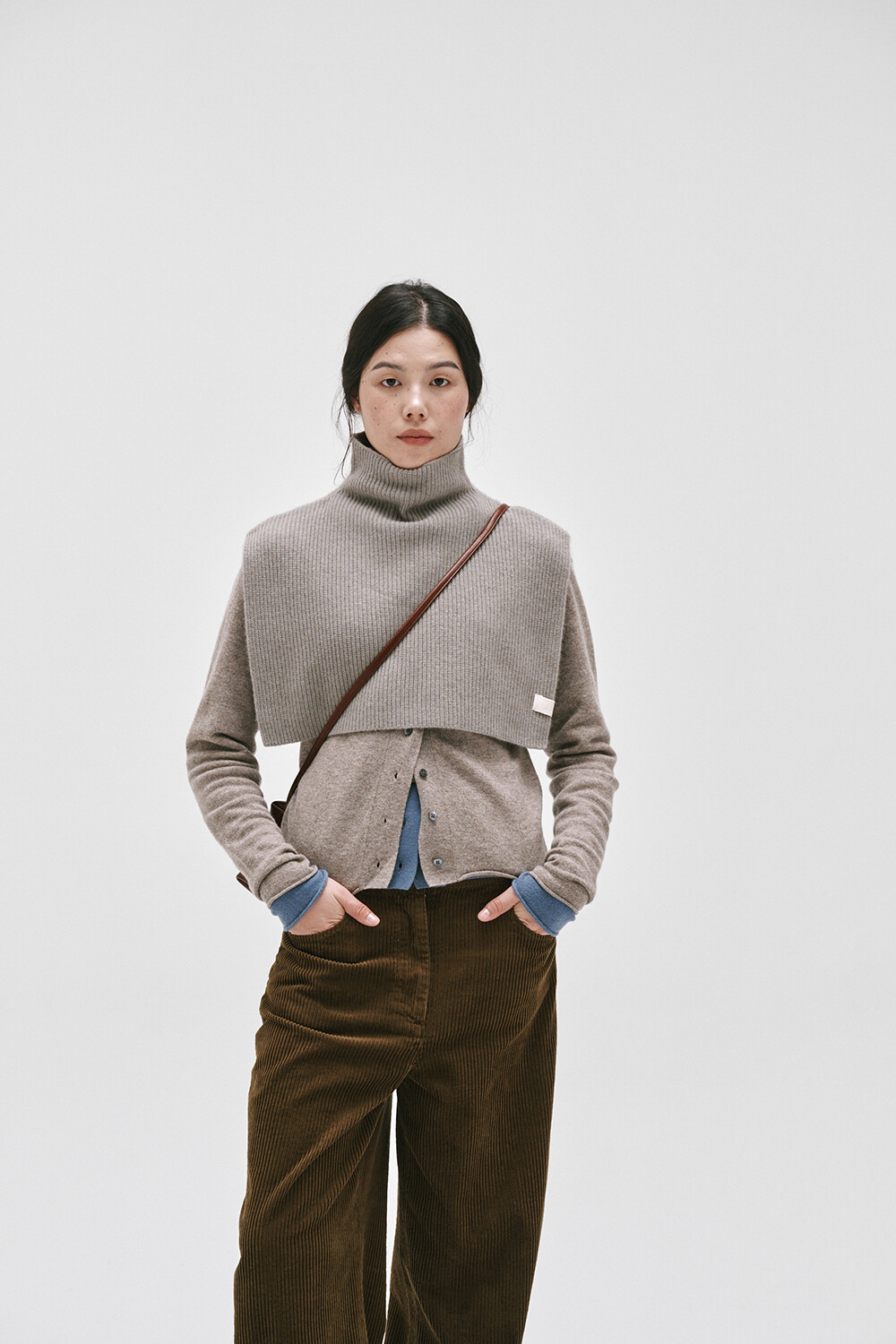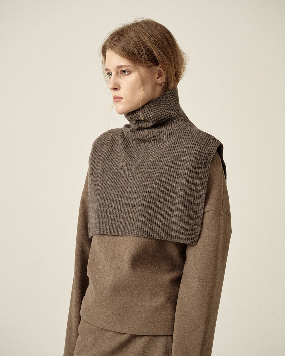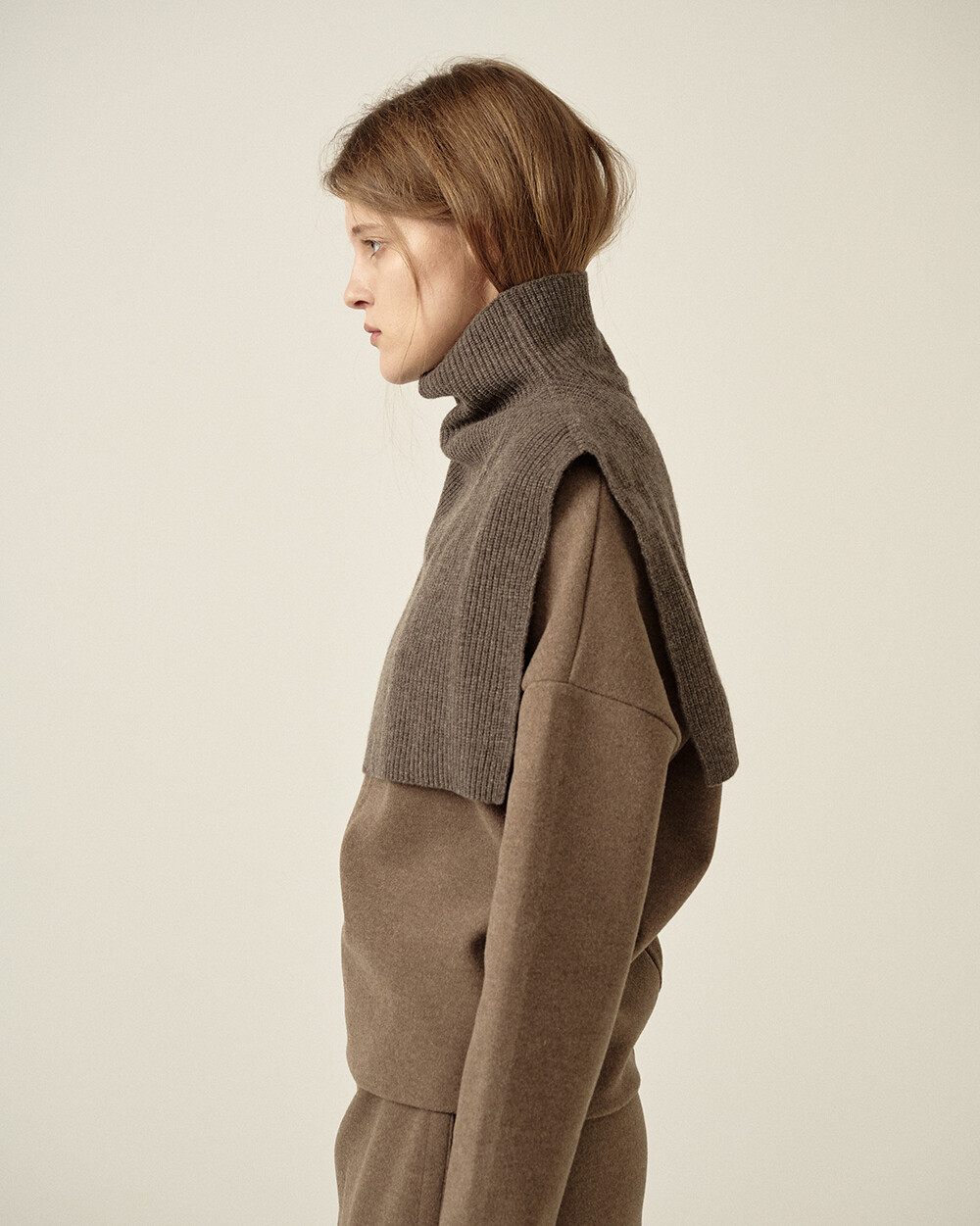 - 부드럽고 섬세한 촉감의 캐시미어와 탄탄한 울 소재가 어우러진 감도 있는 소재를 사용한 페이크 터틀넥 형태의 넥워머입니다.