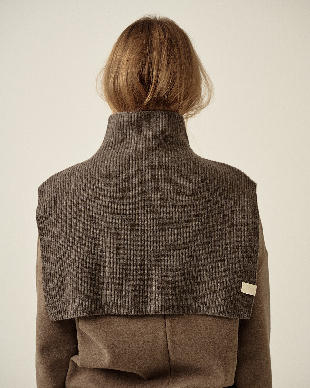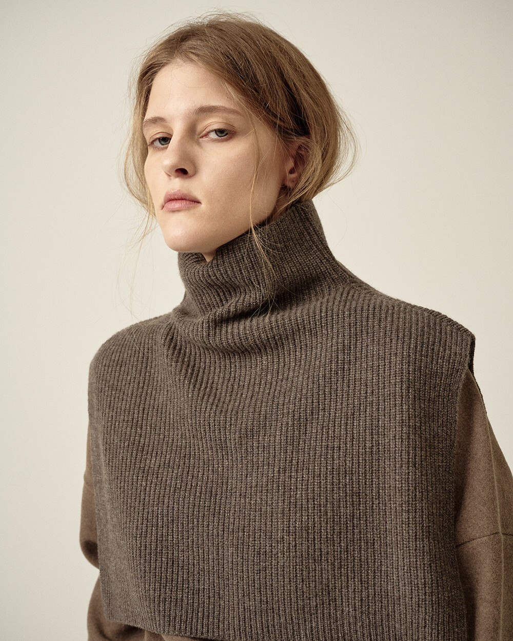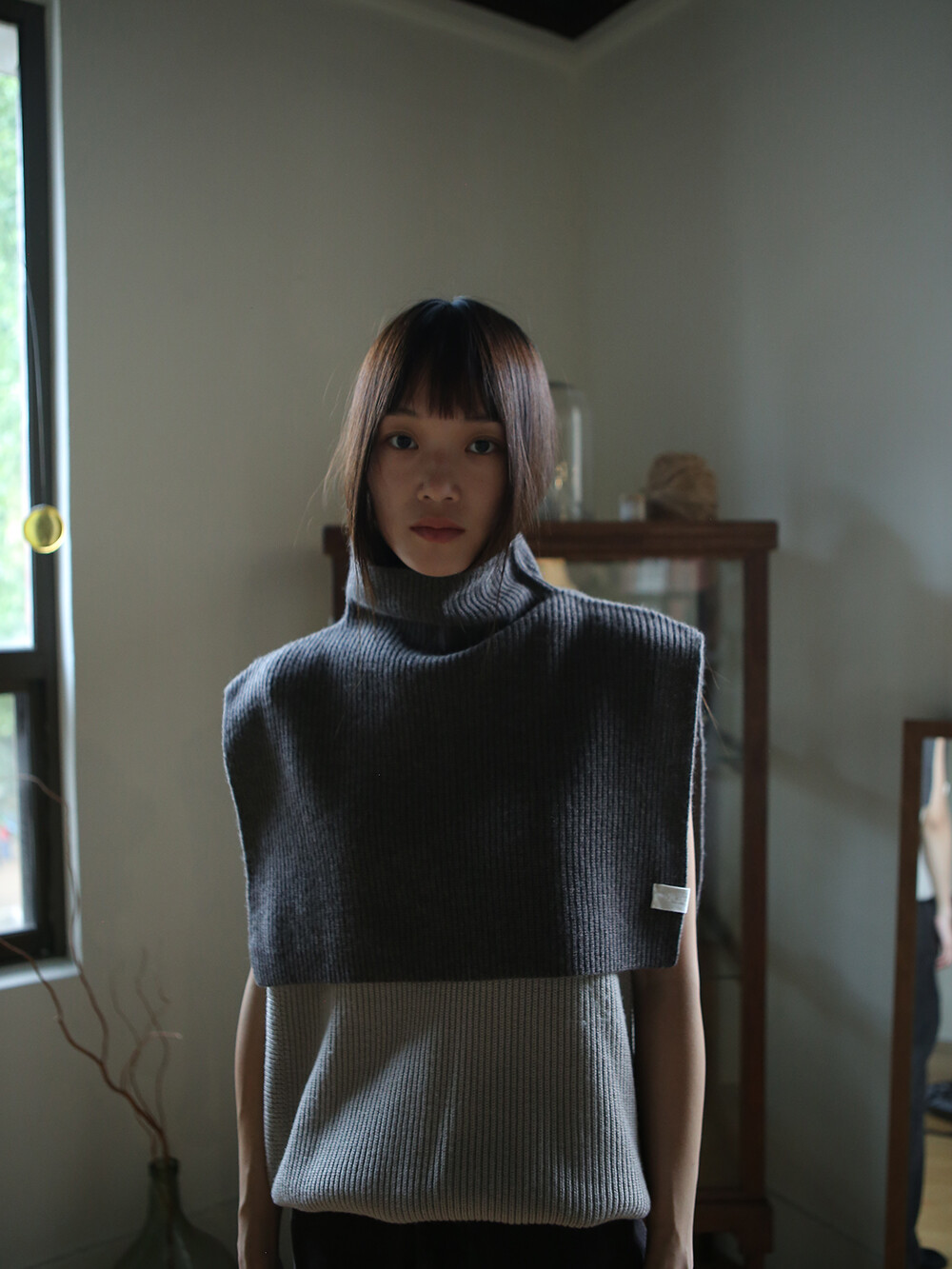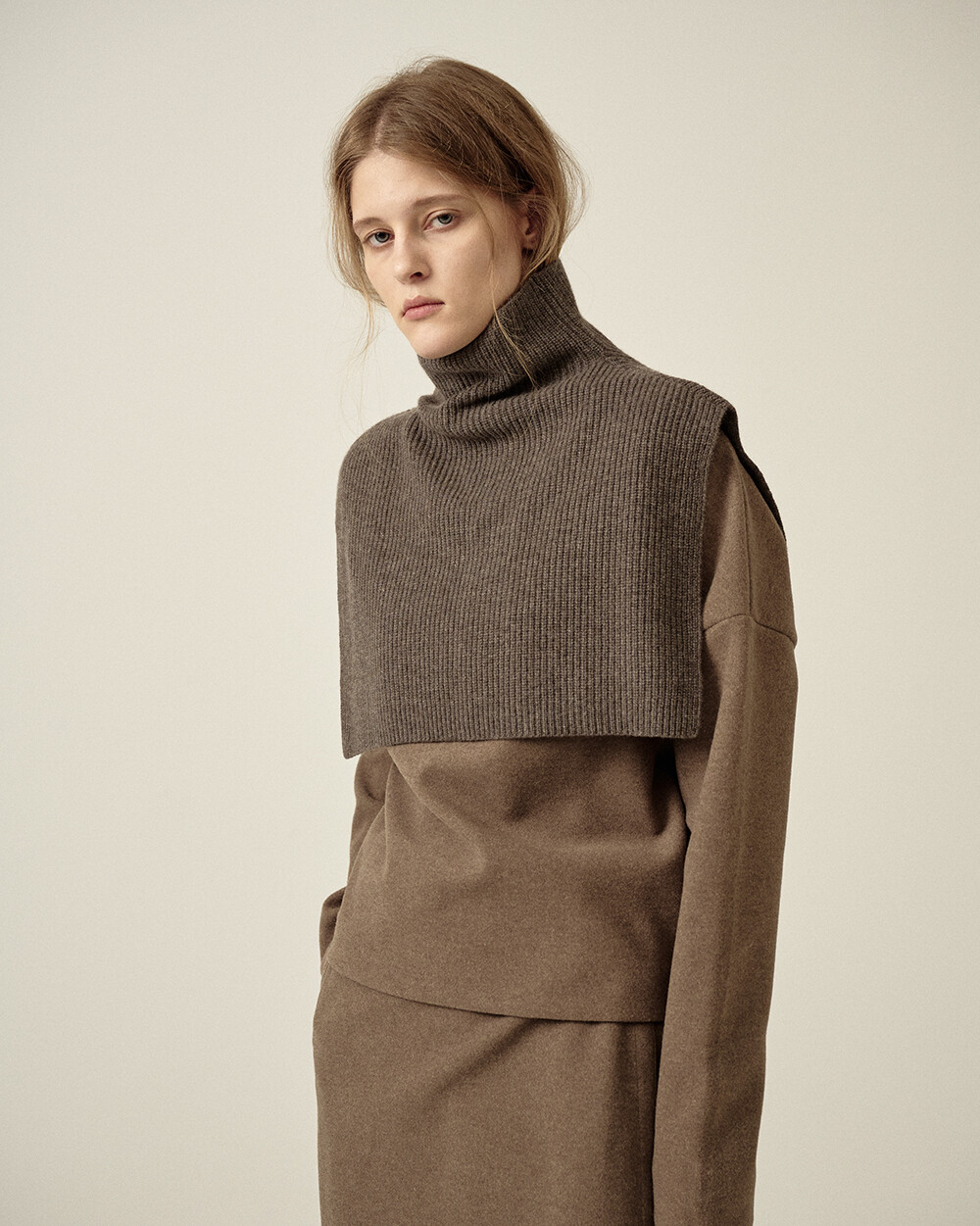 - 부드럽고 섬세한 촉감의 캐시미어와 탄탄한 울 소재가 어우러진 감도 있는 소재를 사용한 페이크 터틀넥 형태의 넥워머입니다.