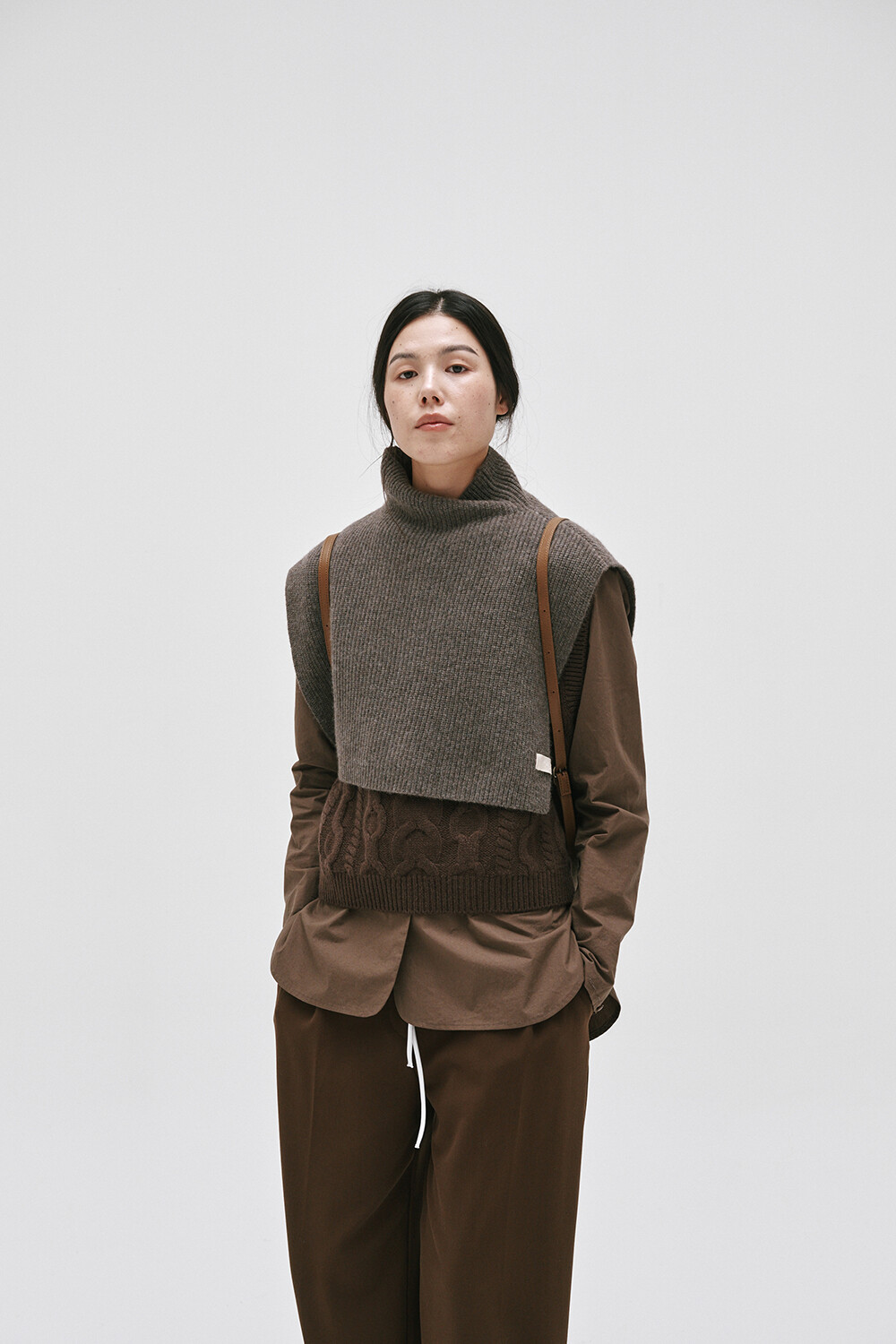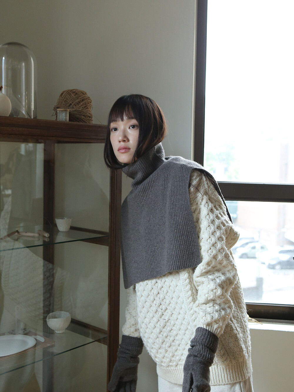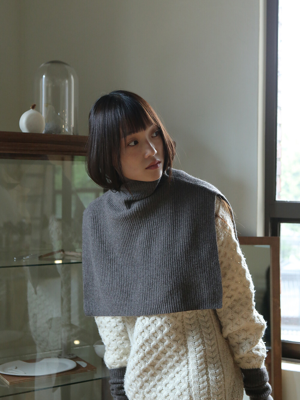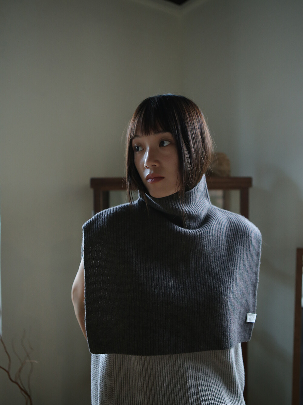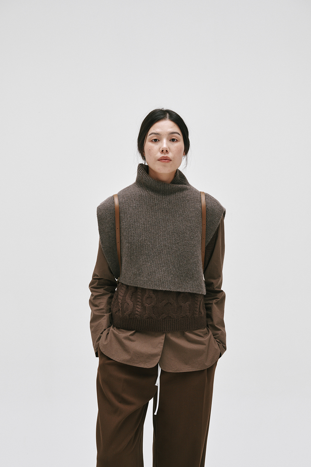 - 부드럽고 섬세한 촉감의 캐시미어와 탄탄한 울 소재가 어우러진 감도 있는 소재를 사용한 페이크 터틀넥 형태의 넥워머입니다.