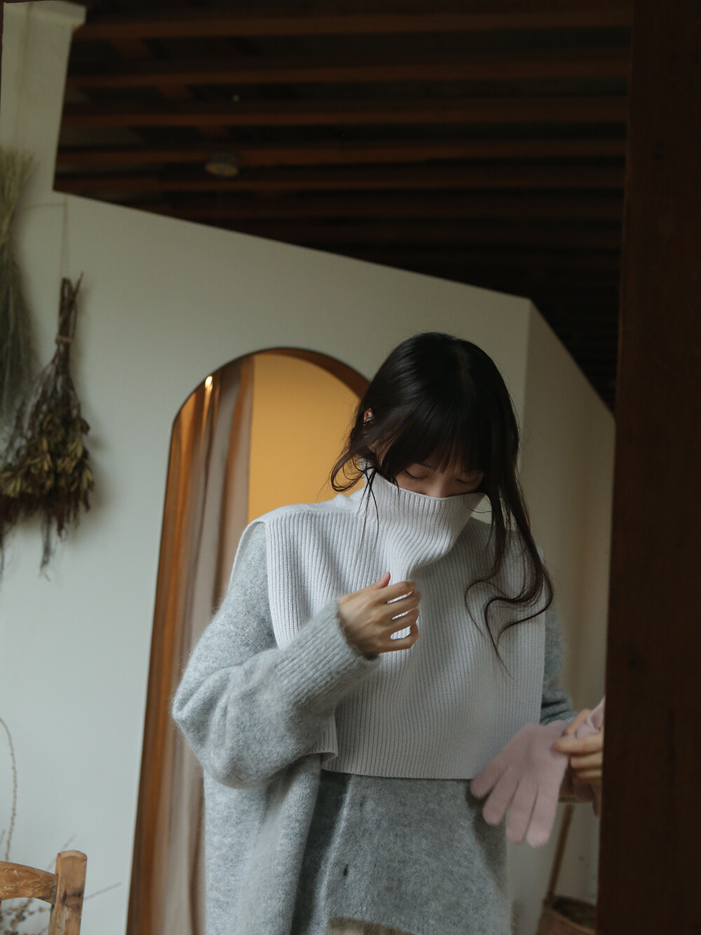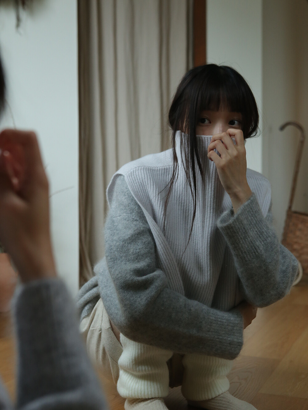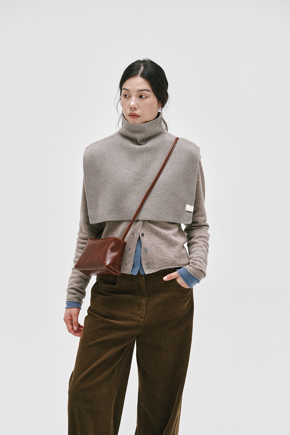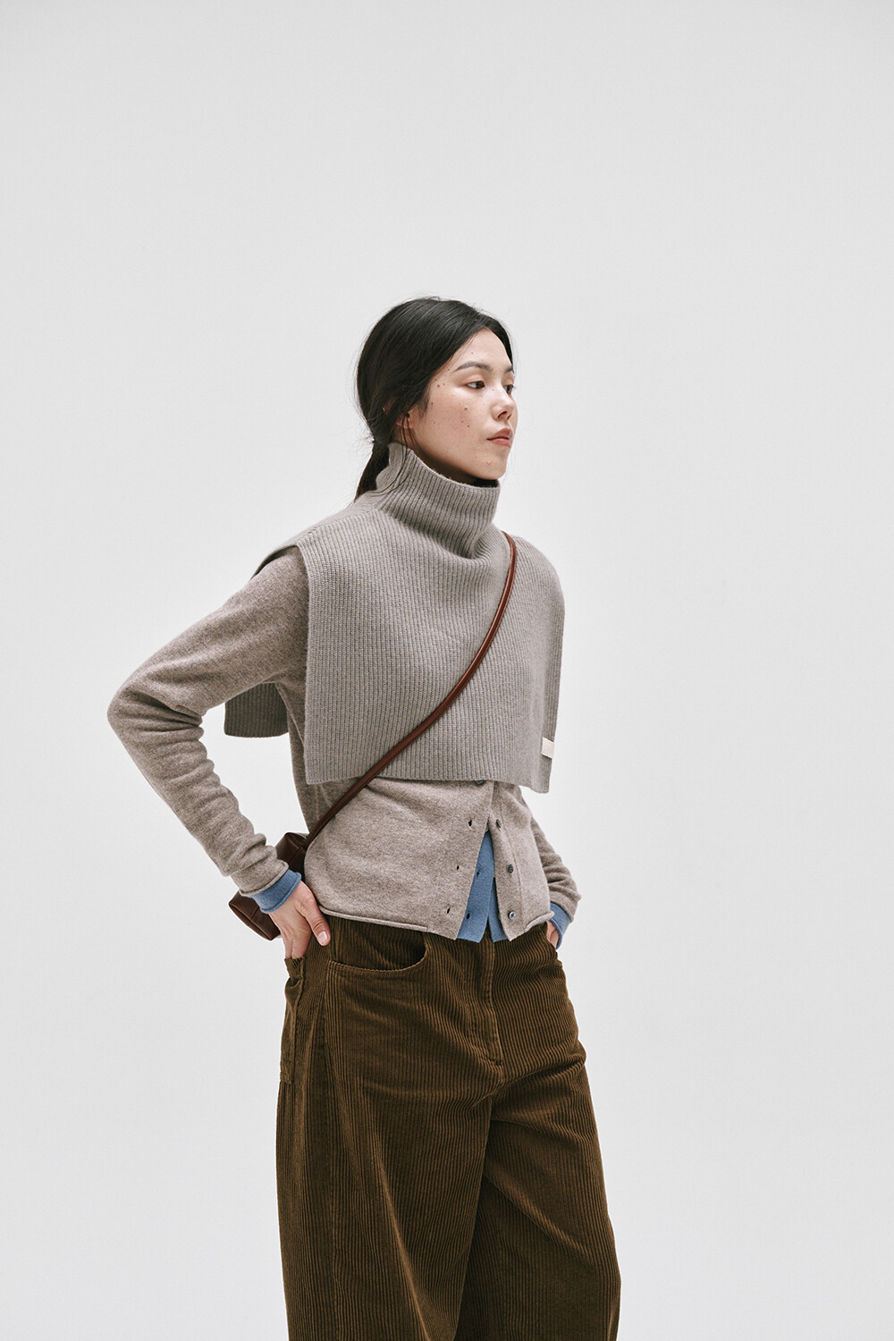 - 부드럽고 섬세한 촉감의 캐시미어와 탄탄한 울 소재가 어우러진 감도 있는 소재를 사용한 페이크 터틀넥 형태의 넥워머입니다.