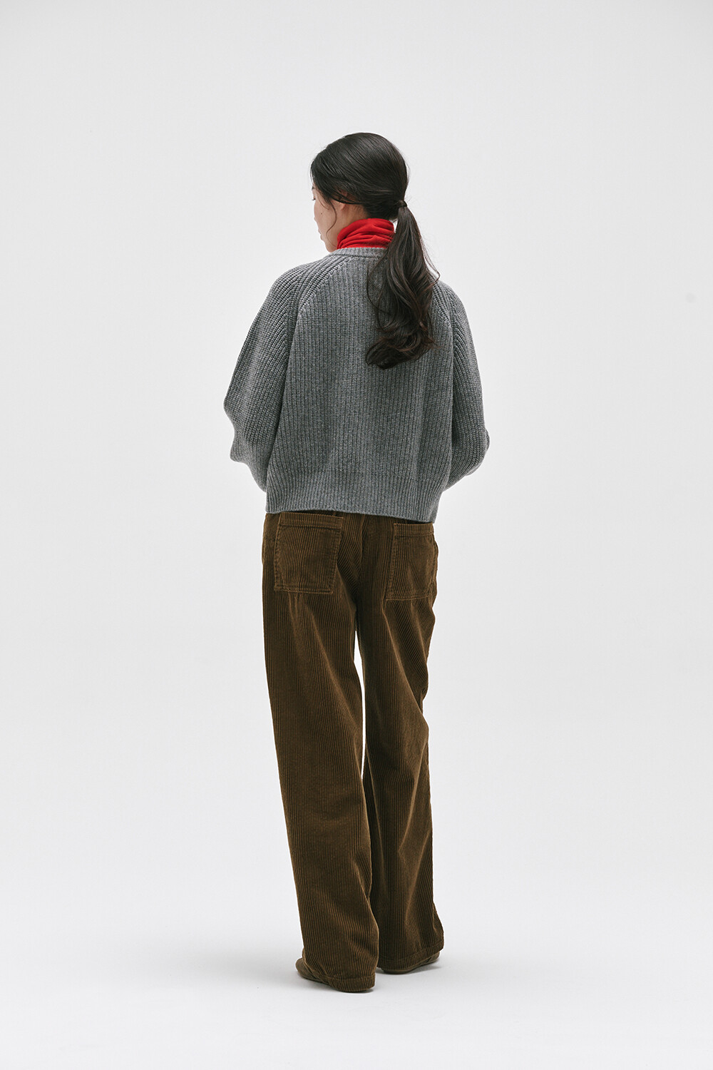 유르트는 이러한 내몽골 캐시미어 원사의 본질적인 특성을 존중하며, 게이지(Gauge)의 차이를 통해 제품마다 다른 보온성, 실루엣, 착용감을 설계합니다. 5게이지의 두꺼운 짜임은 캐시미어 본연의 결감과 볼륨을 그대로 살립니다. 밀도감 있는 조직이 만들어내는 묵직한 촉감 속에 포근한 보온성과 안정적인 실루엣을 느끼실 수 있습니다. 단품으로 착용해도 형태가 탄탄히 유지되며, 이너 혹은 아우터와의 레이어링 시에도 존재감 있는 짜임이 드러납니다.