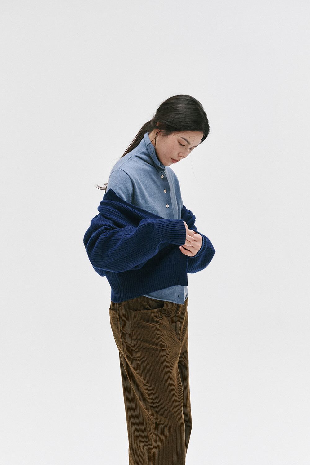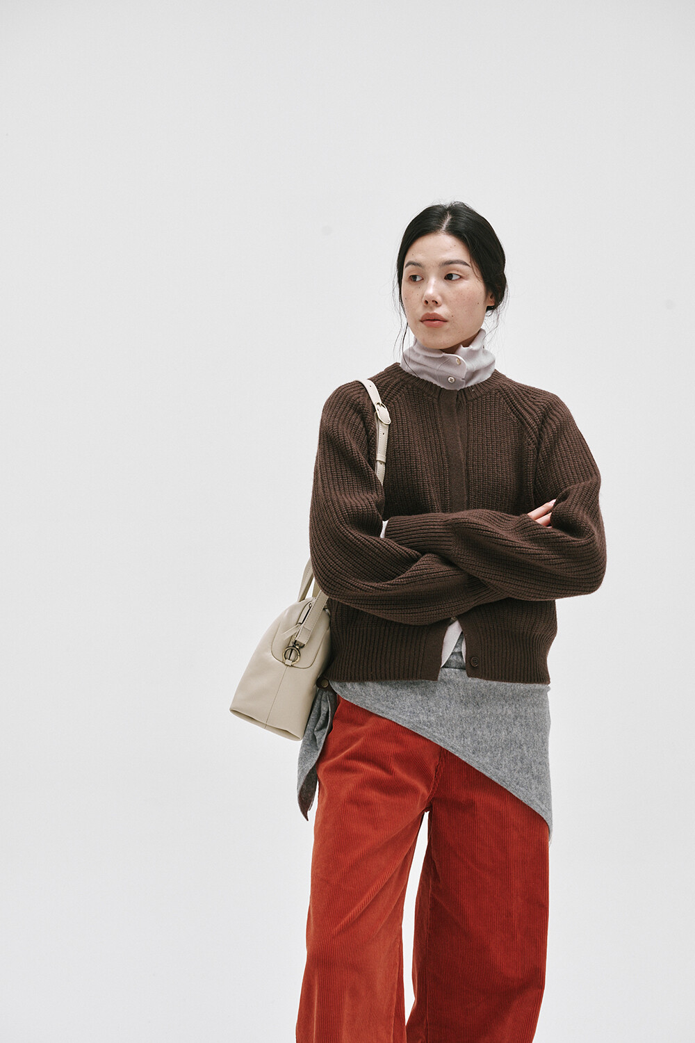 볼륨감있는 소매 라인과 탄탄한 짜임이 멋스러운 ‘CASHMERE WOOL HEAVY CARDIGAN 캐시미어 울 헤비 가디건’입니다. 손목을 잡아주는 립을 일반적인 길이감보다 길게 잡아 어깨에서부터 자연스럽게 떨어지는 유려한 소매 곡선 라인을 완성했습니다. 헤비 가디건이지만 부드럽고 섬세한 촉감의 울과 캐시미어가 블렌딩된 원사를 사용해 피부에 닿는 촉감이 우수하며 가벼운 착용감을 제공합니다. 단품만으로도 충분한 보온성을 느끼실 수 있으며, 히든 버튼라인으로 단정하고 완성도 있게 마무리 했습니다. 볼드한 짜임과 볼륨감있는 실루엣으로 단독으로도, 겨울철 두꺼운 아우터 안에도 다양하게 활용하실 수 있습니다.