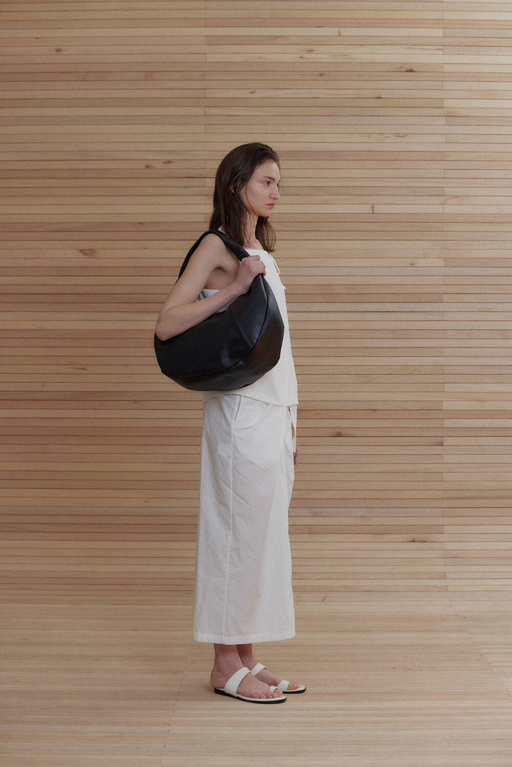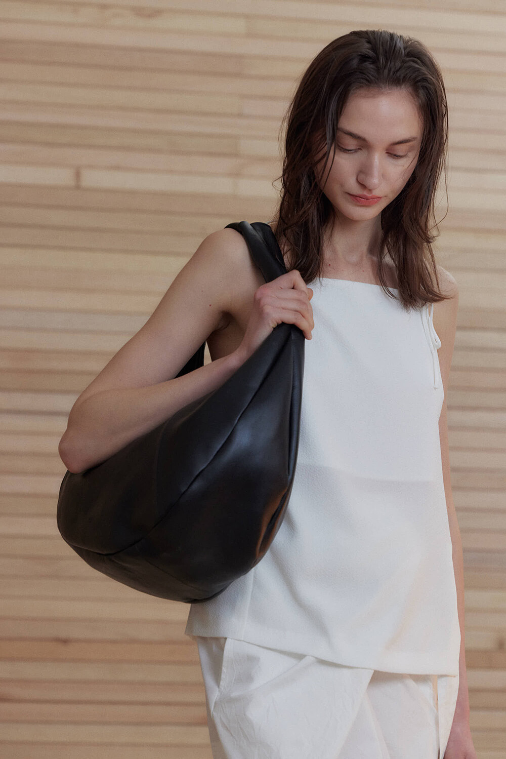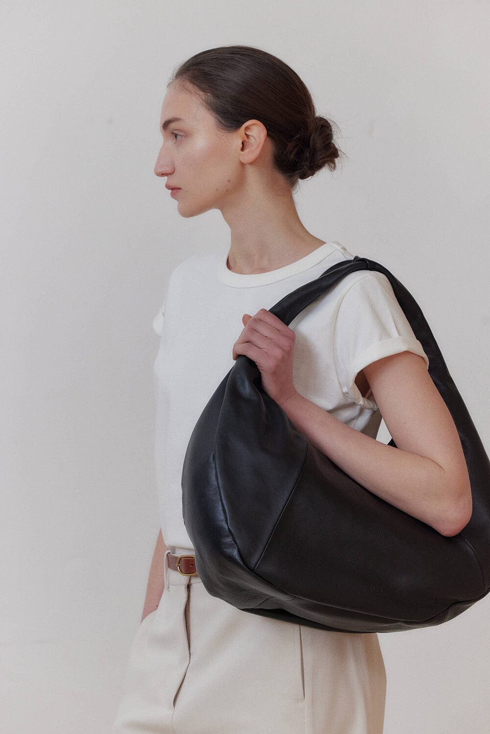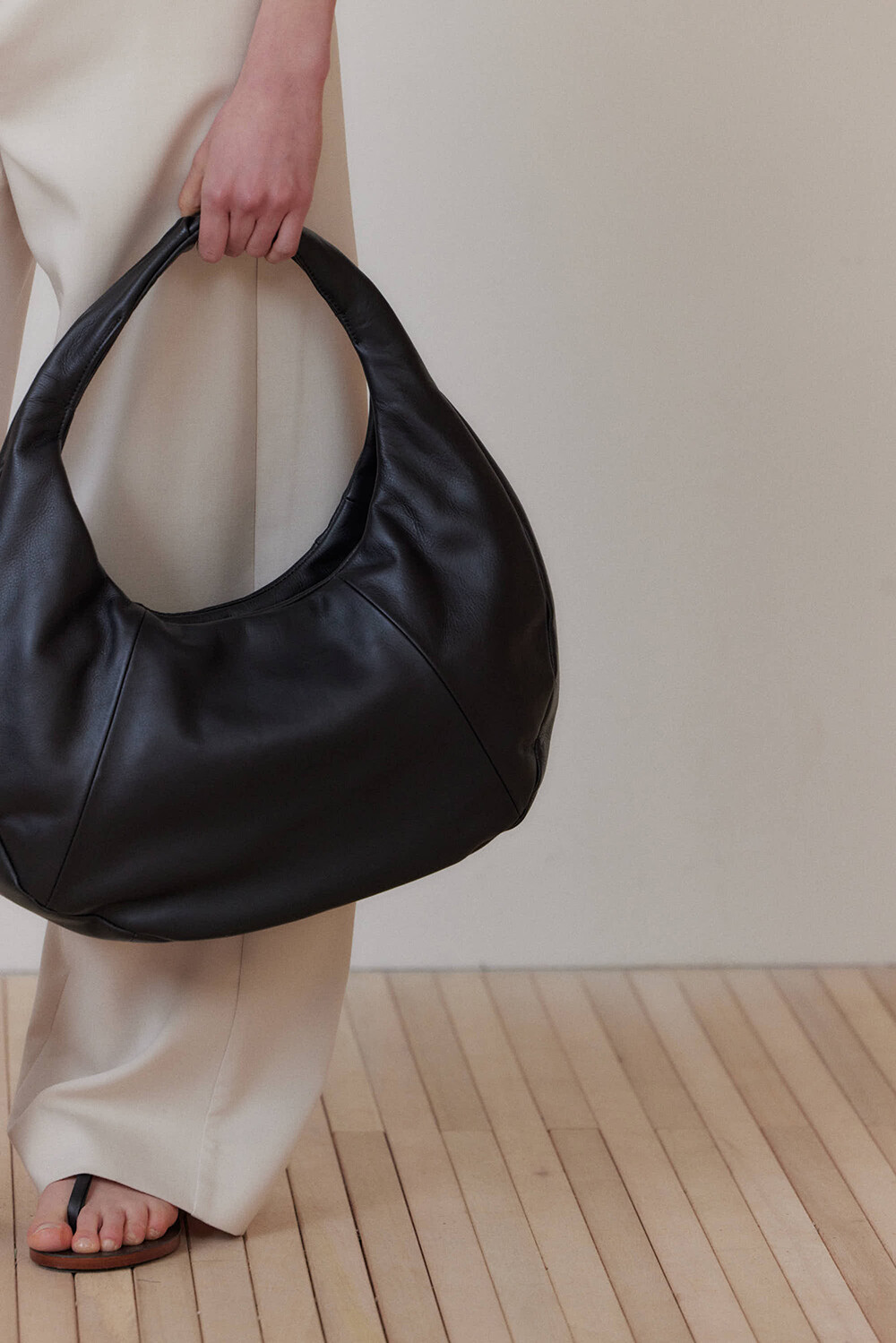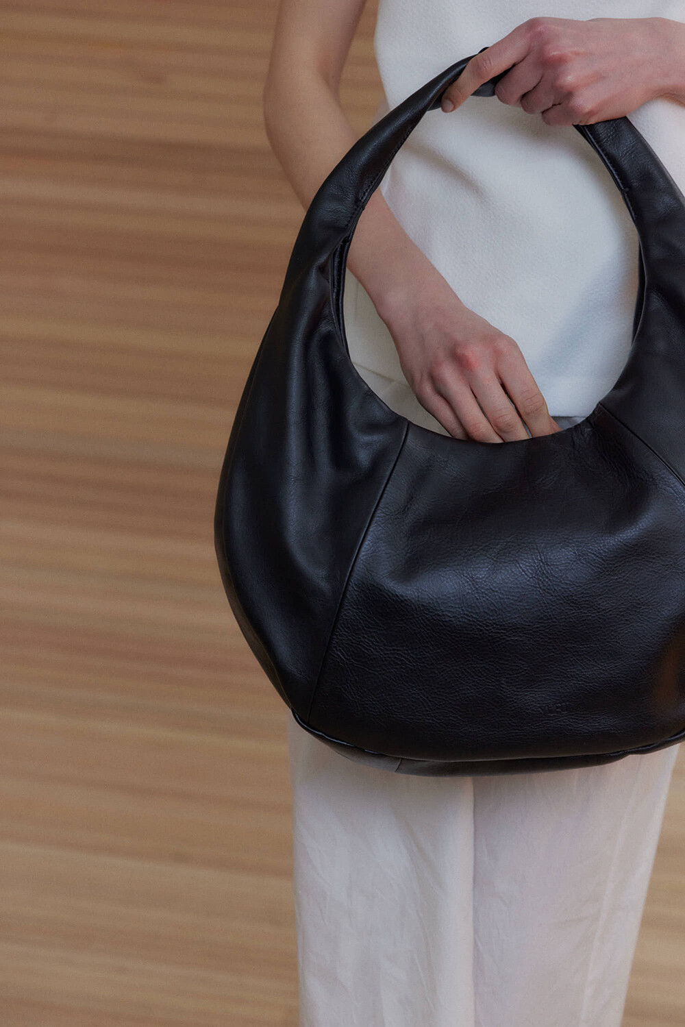 -미니멀한 디자인의 호보 백입니다.