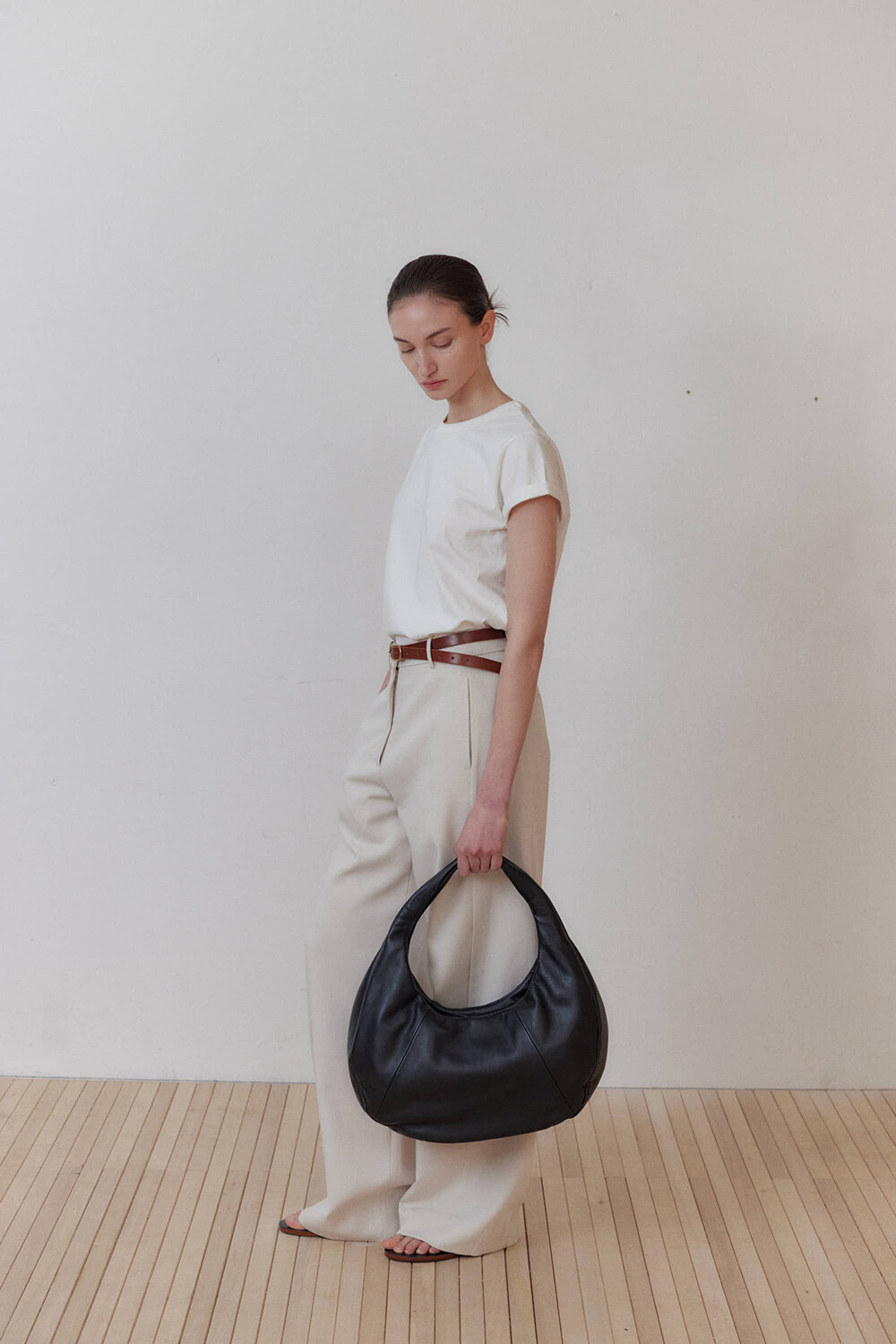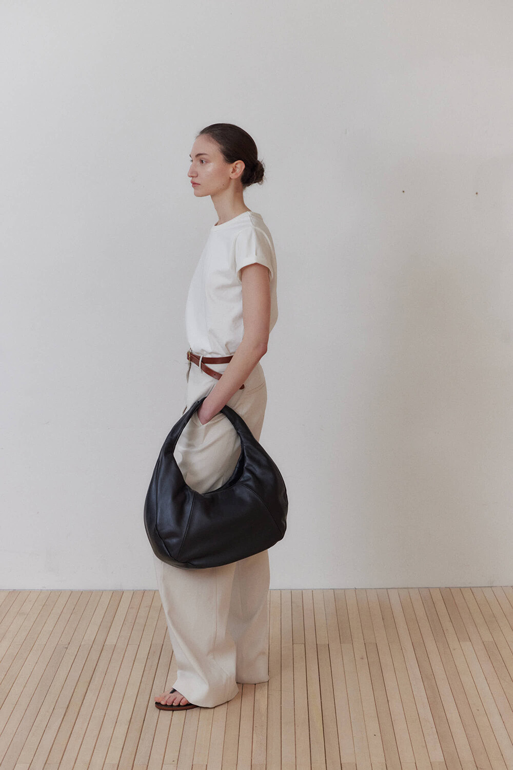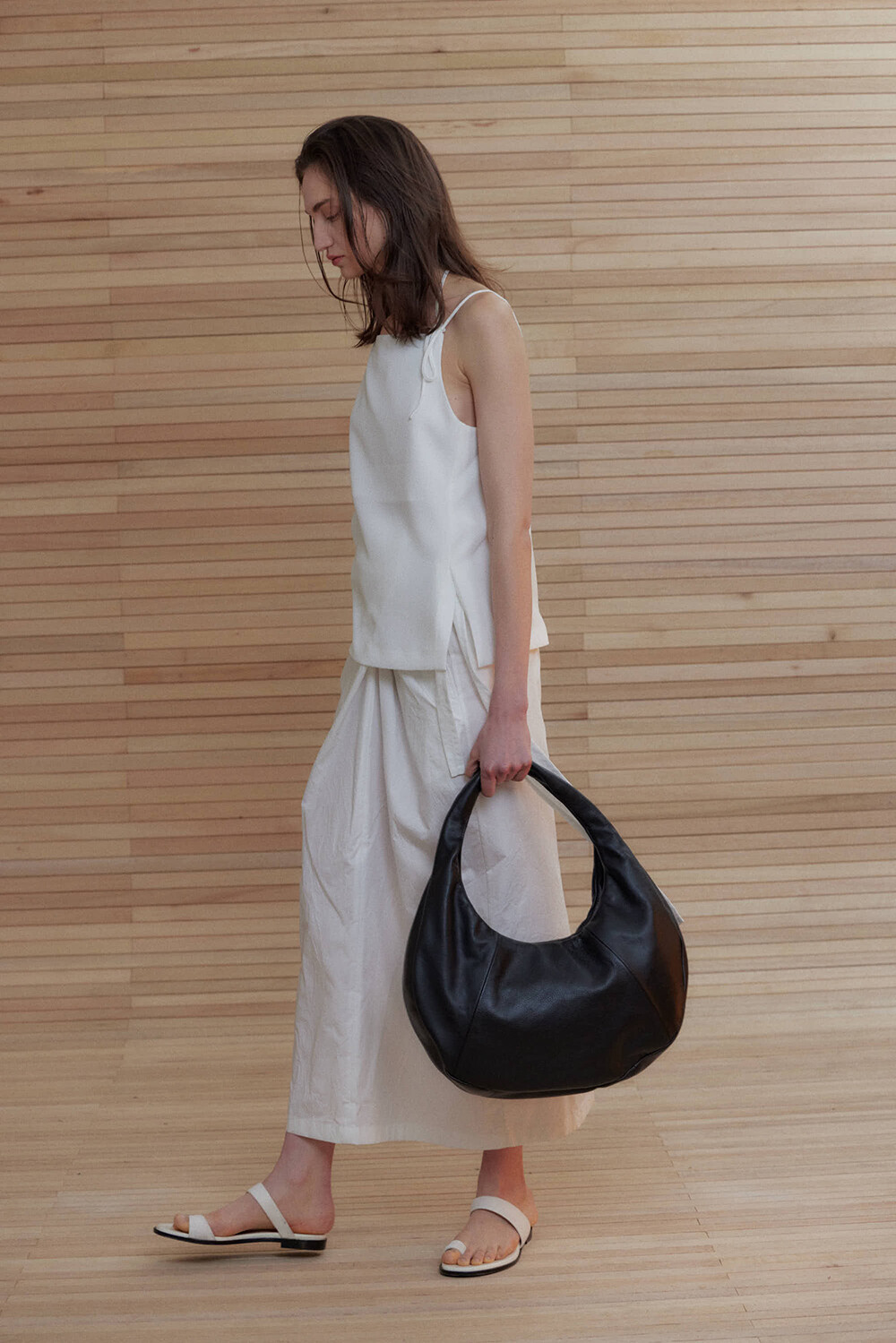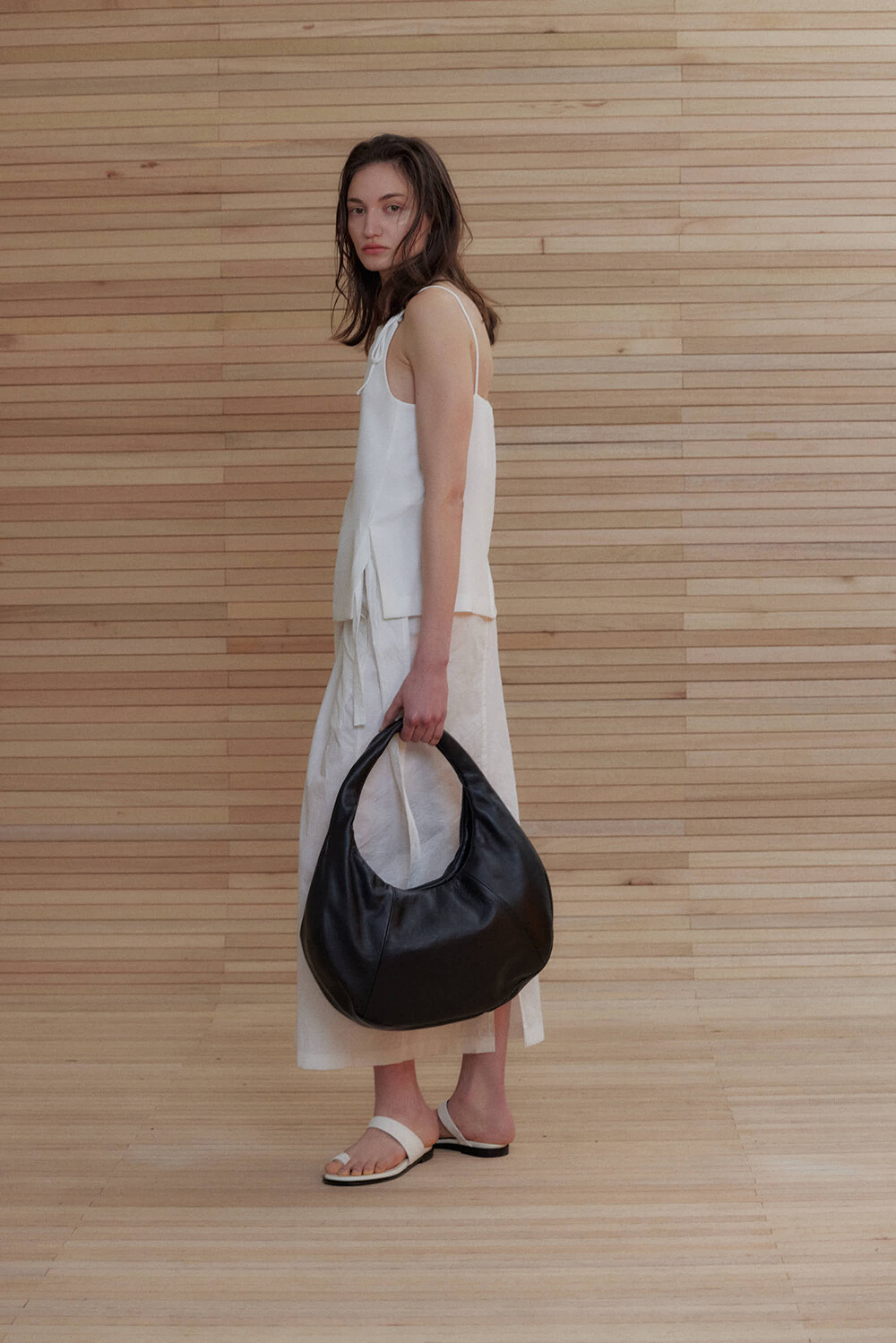 -미니멀한 디자인의 호보 백입니다.