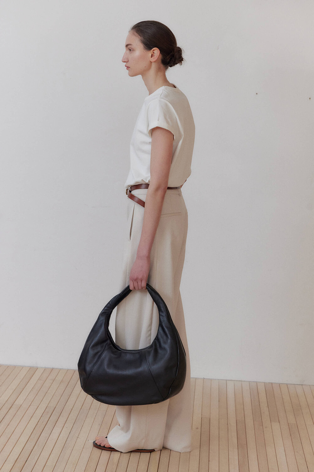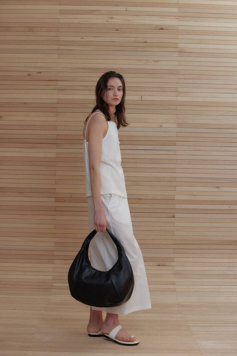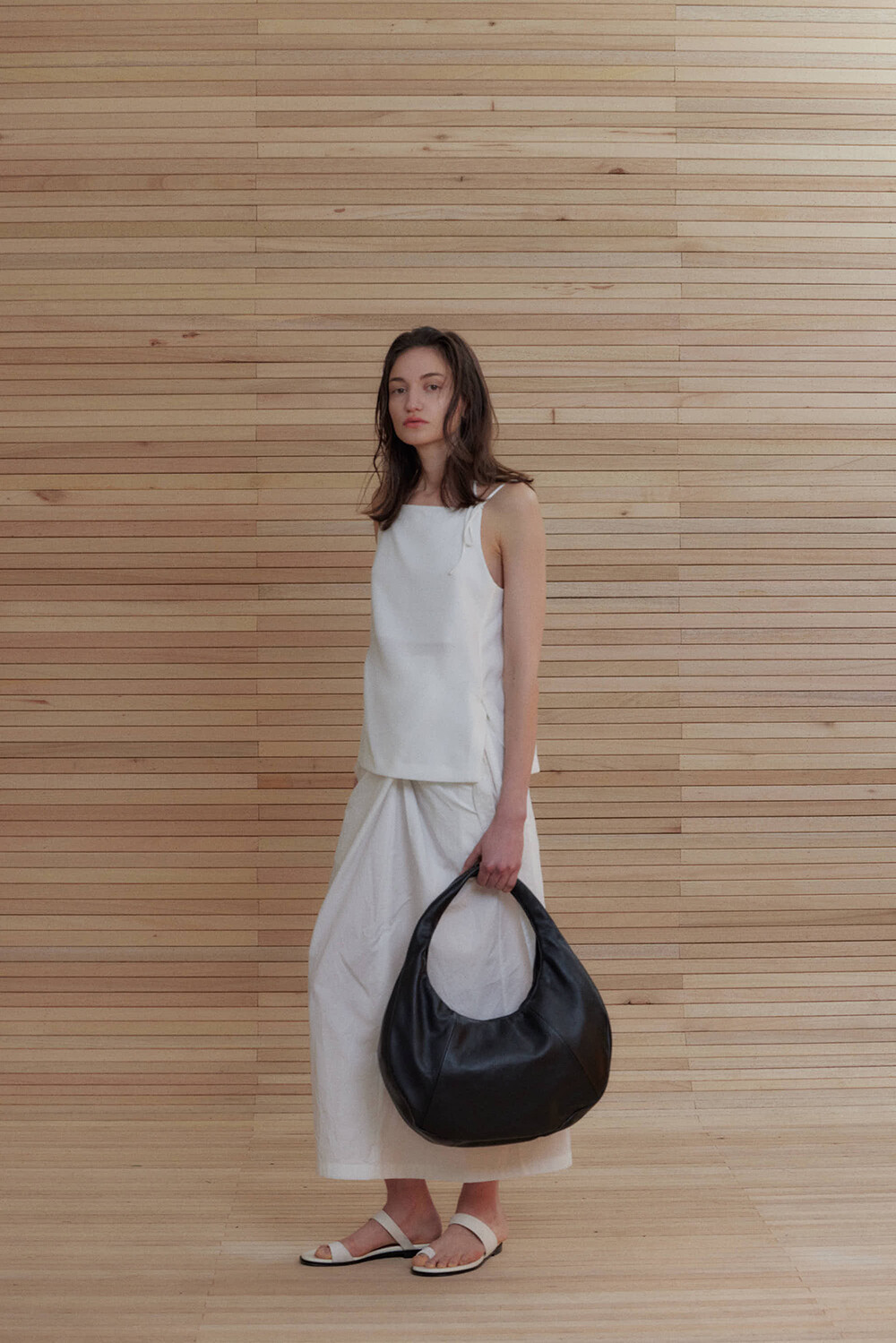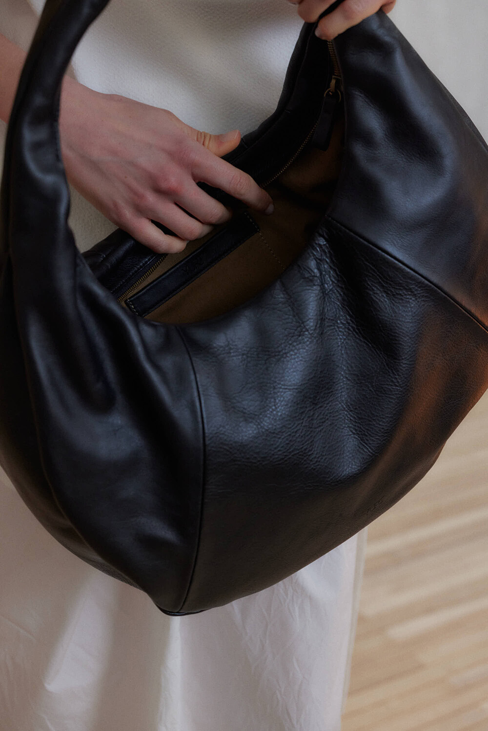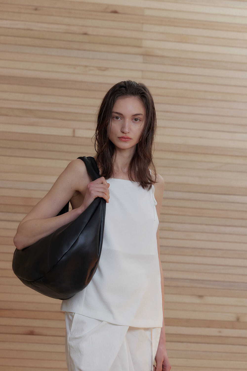 -미니멀한 디자인의 호보 백입니다.