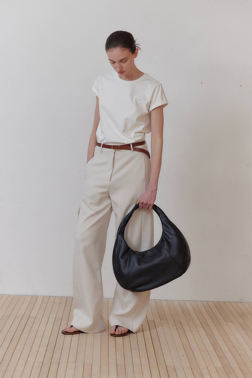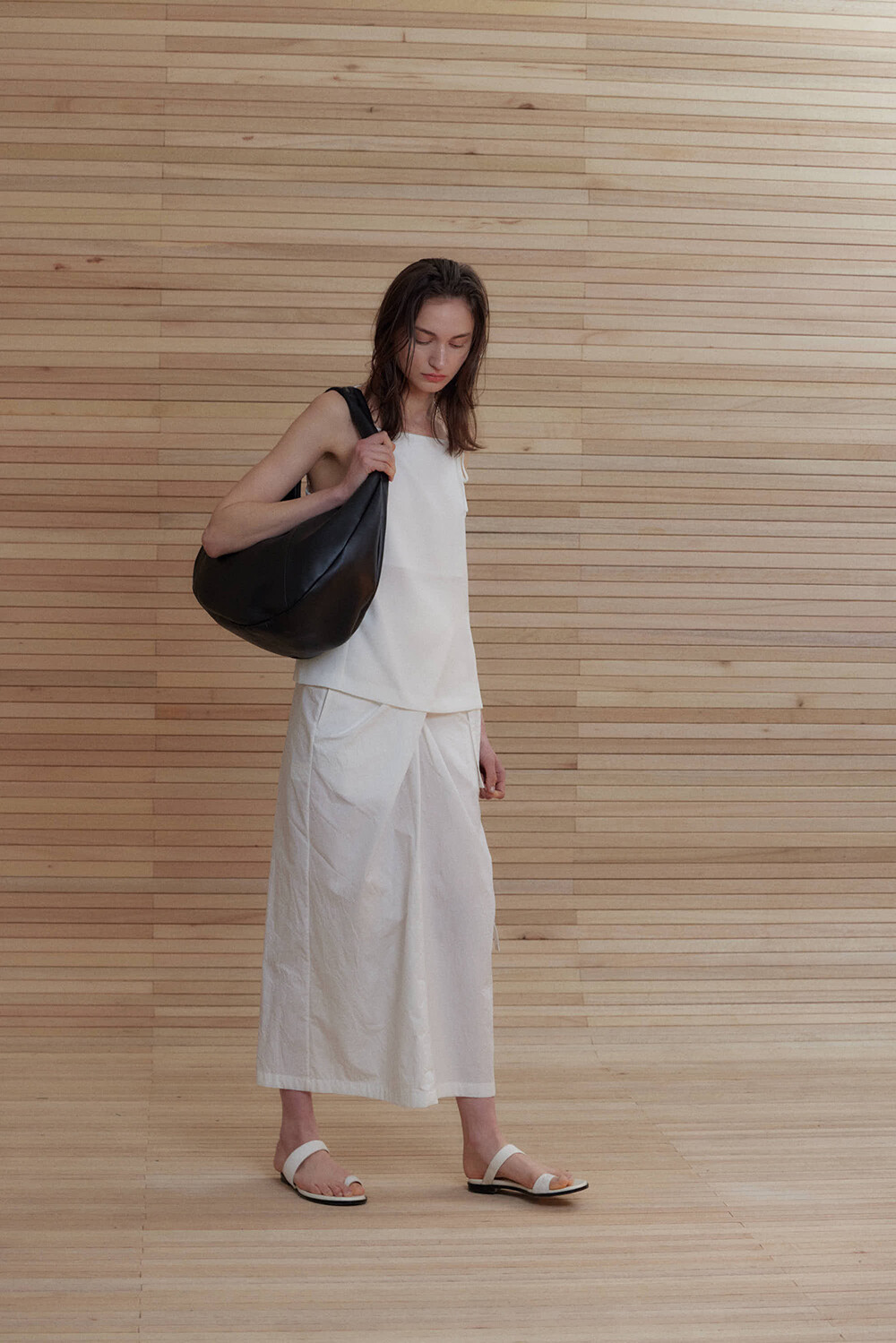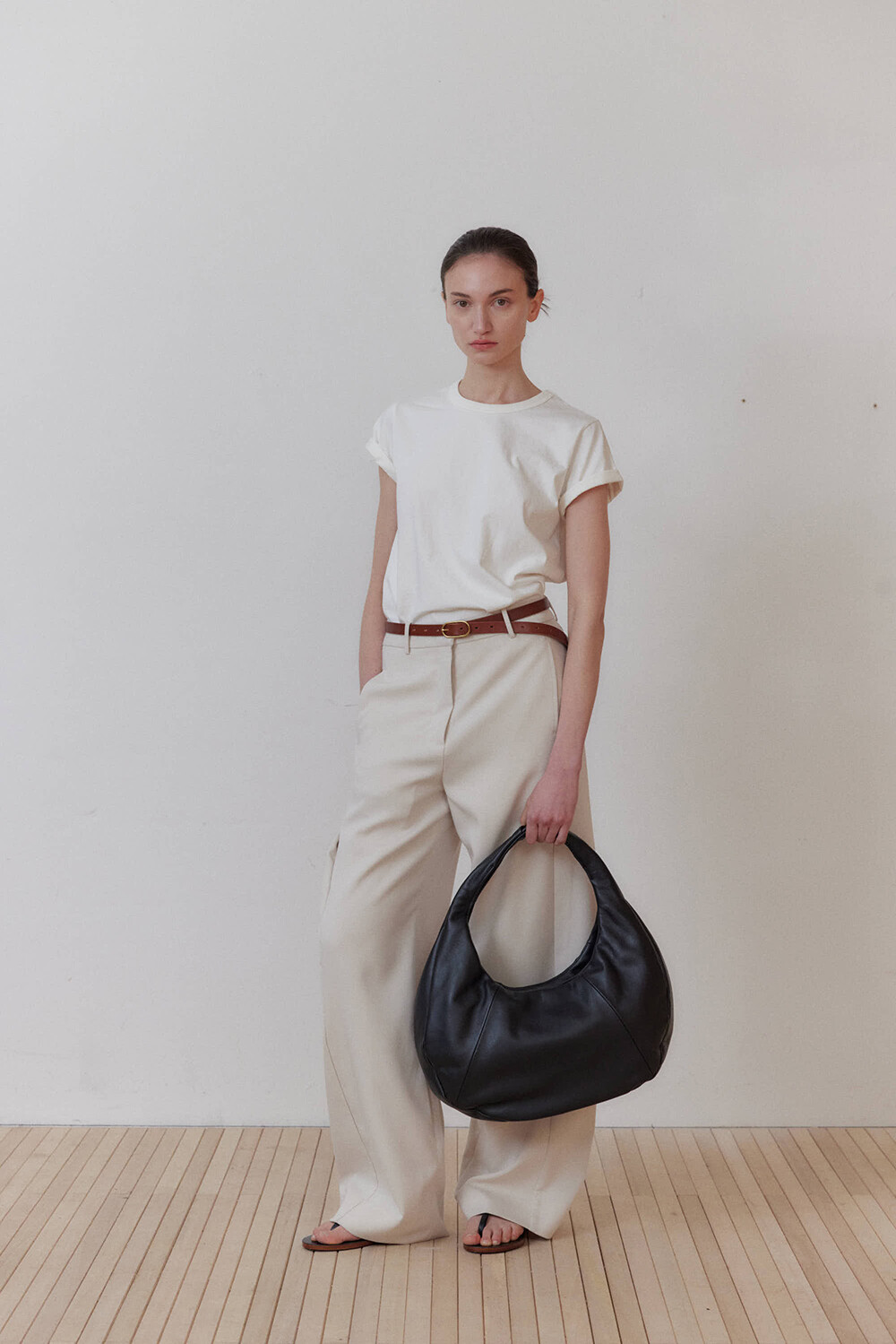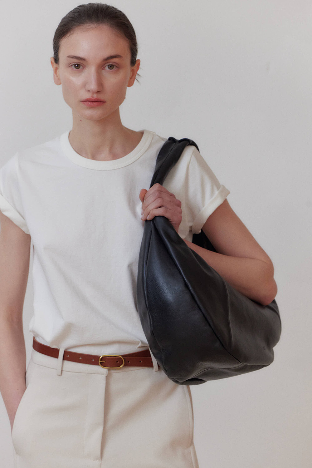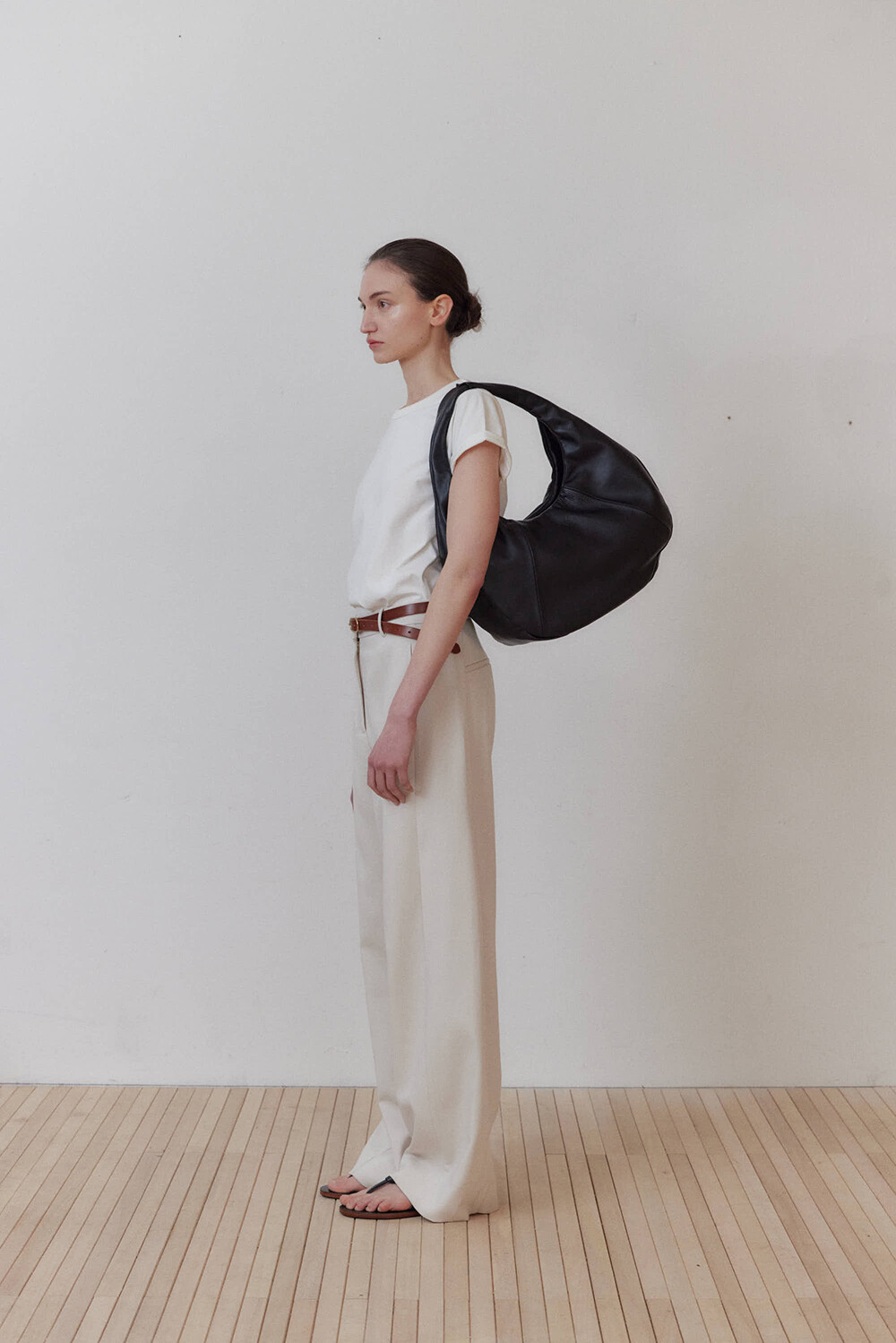 -미니멀한 디자인의 호보 백입니다.
