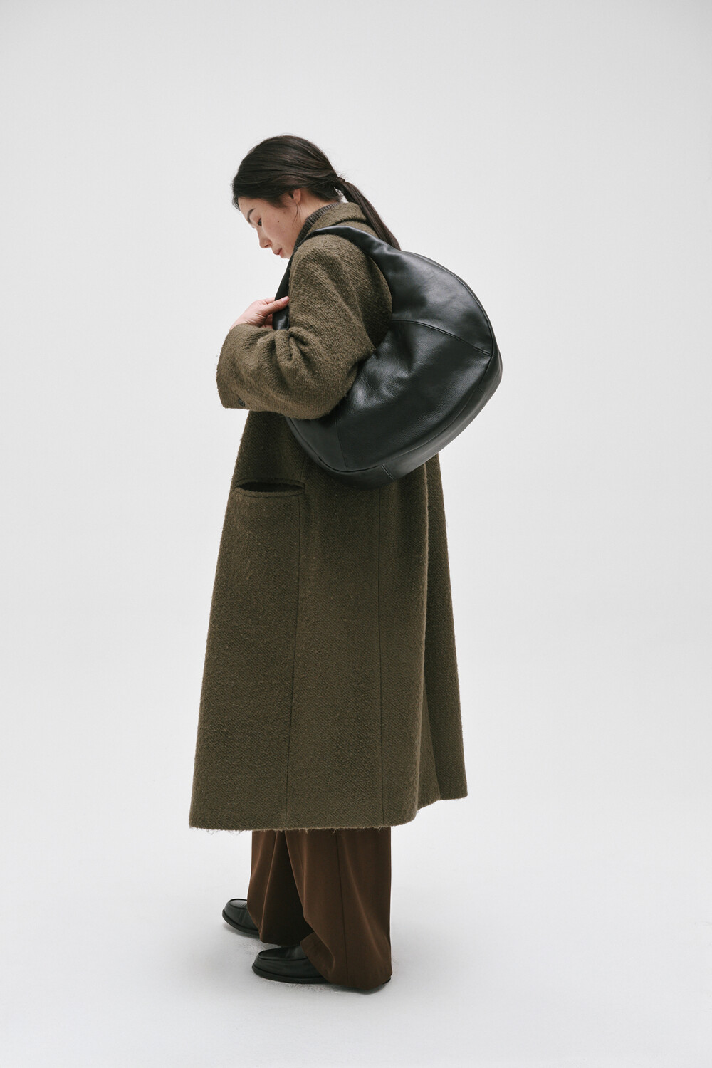 -부드러우면서도 탄탄한 소가죽과 볼드한 쉐입이 형성하는 볼륨감이 특징입니다.