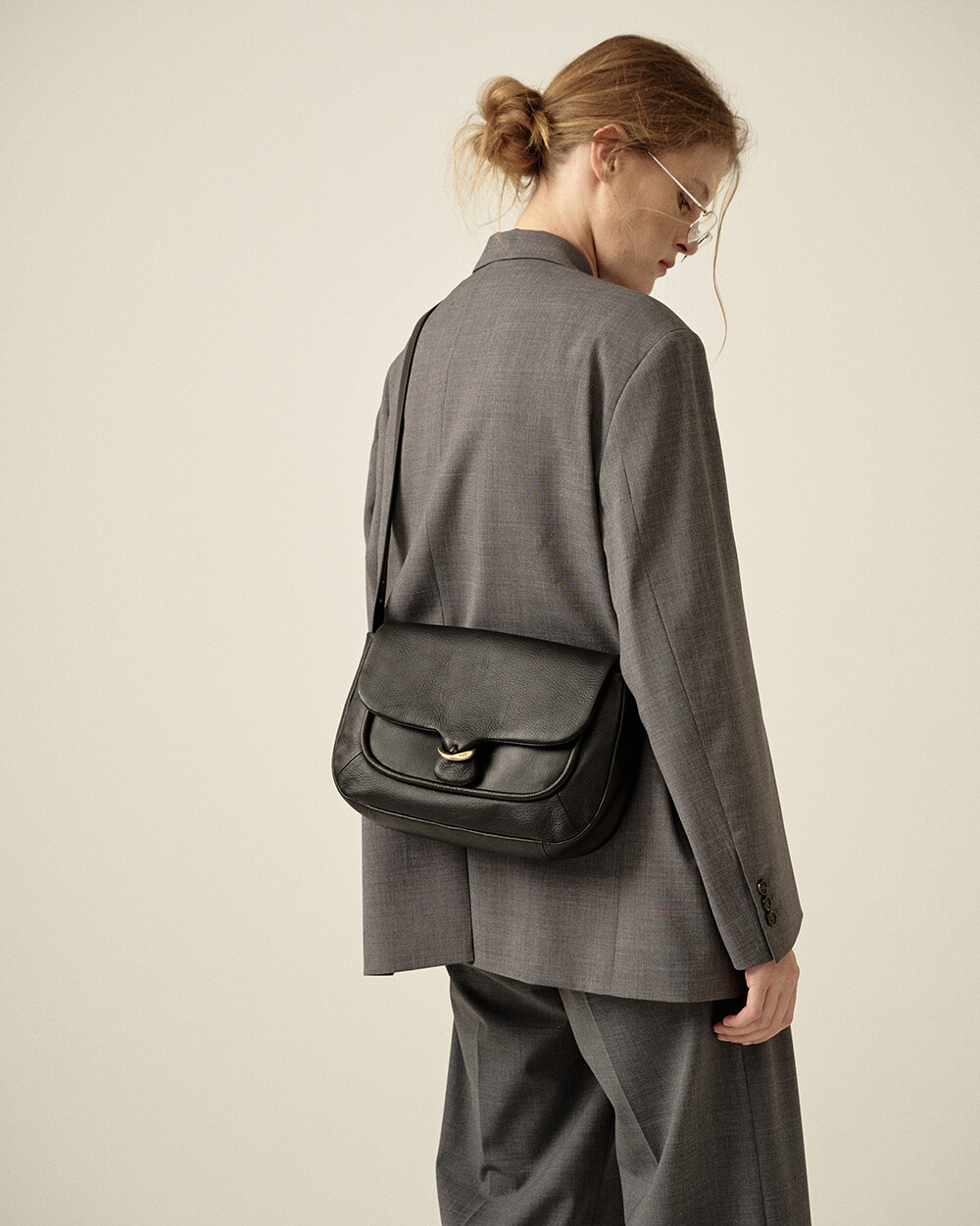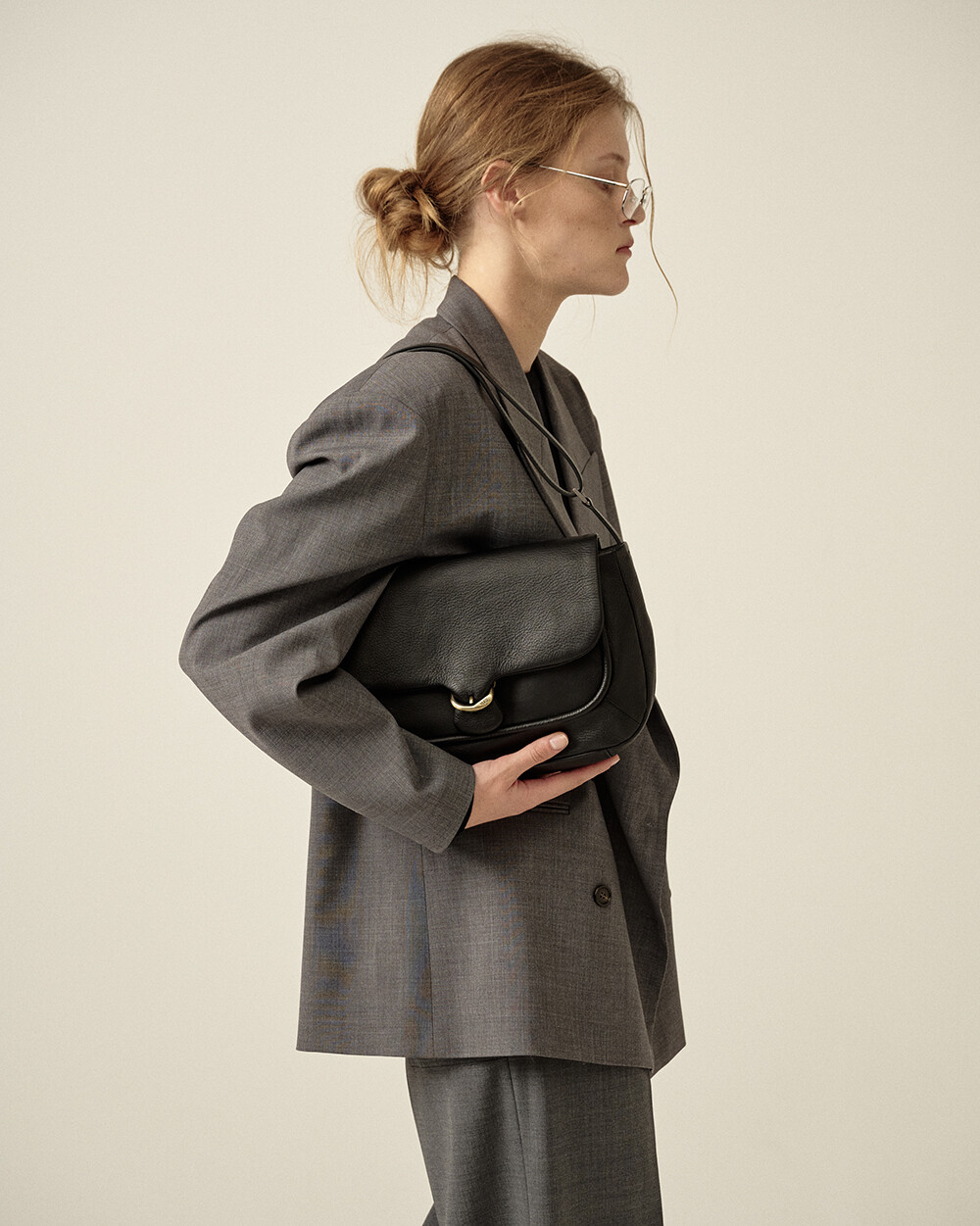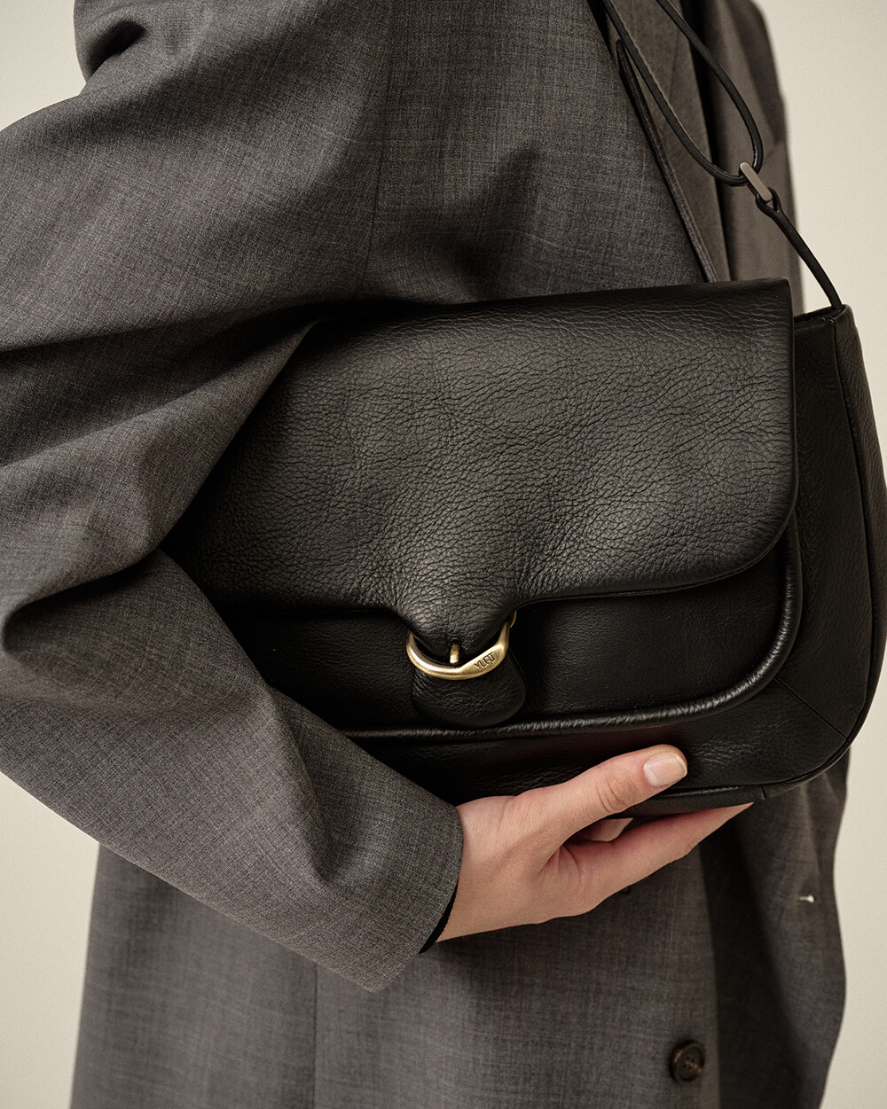 <디자이너의 말> 누군가에게 마음이나 소식을 전하는 우편봉투를 닮은 메일백을 유르트의 시선으로 재해석한 디자인입니다. 소중한 마음과 중요한 이야기들을 묵묵하게 전달하는 비밀스러운 전달자처럼 디테일을 최소화하고 유르트만의 버클장식으로 무게감을 더했습니다.