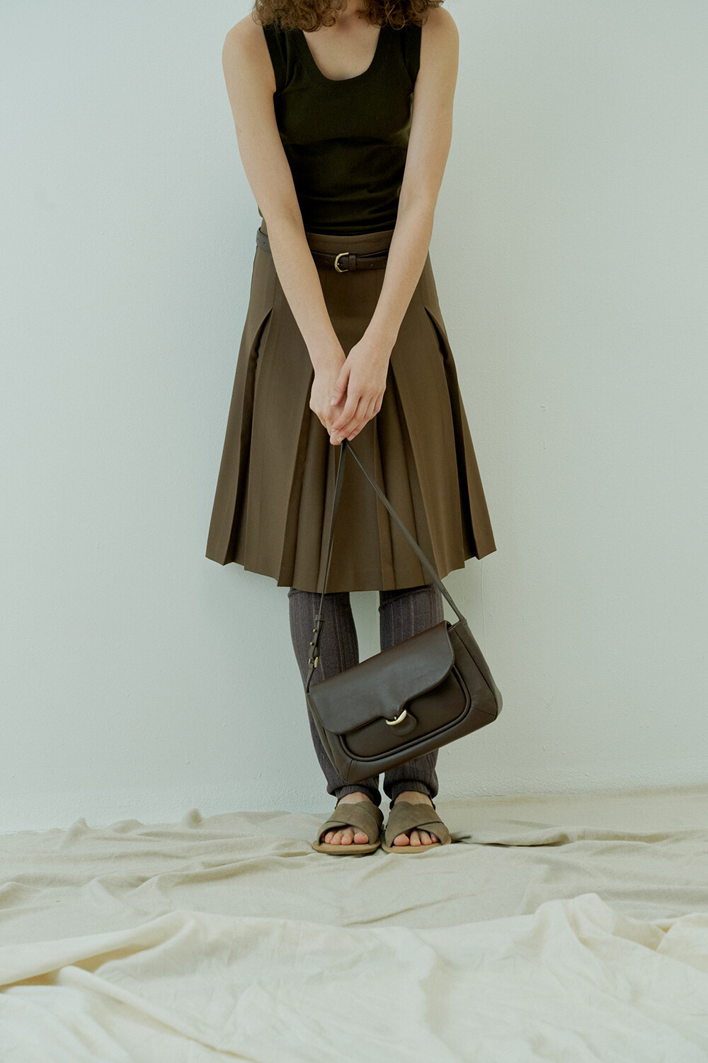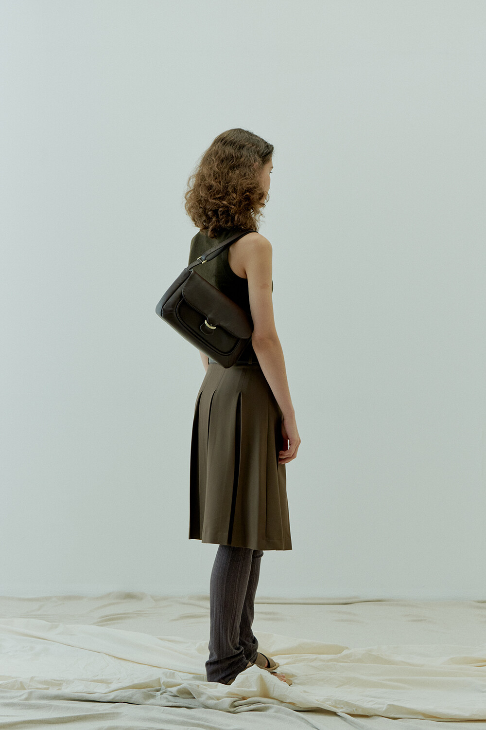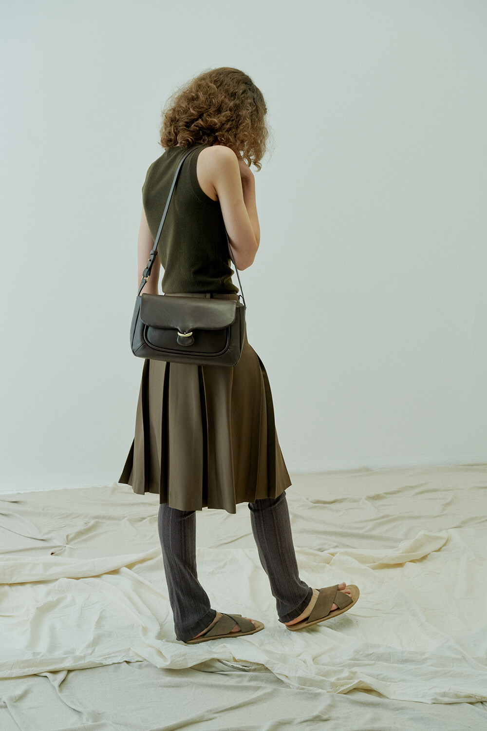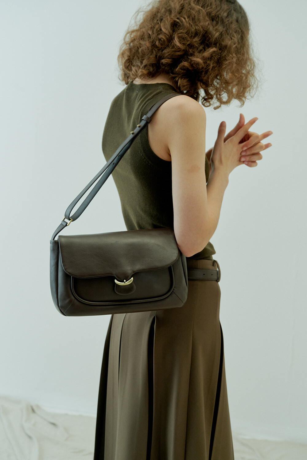 <디자이너의 말> 누군가에게 마음이나 소식을 전하는 우편봉투를 닮은 메일백을 유르트의 시선으로 재해석한 디자인입니다. 소중한 마음과 중요한 이야기들을 묵묵하게 전달하는 비밀스러운 전달자처럼 디테일을 최소화하고 유르트만의 버클장식으로 무게감을 더했습니다.