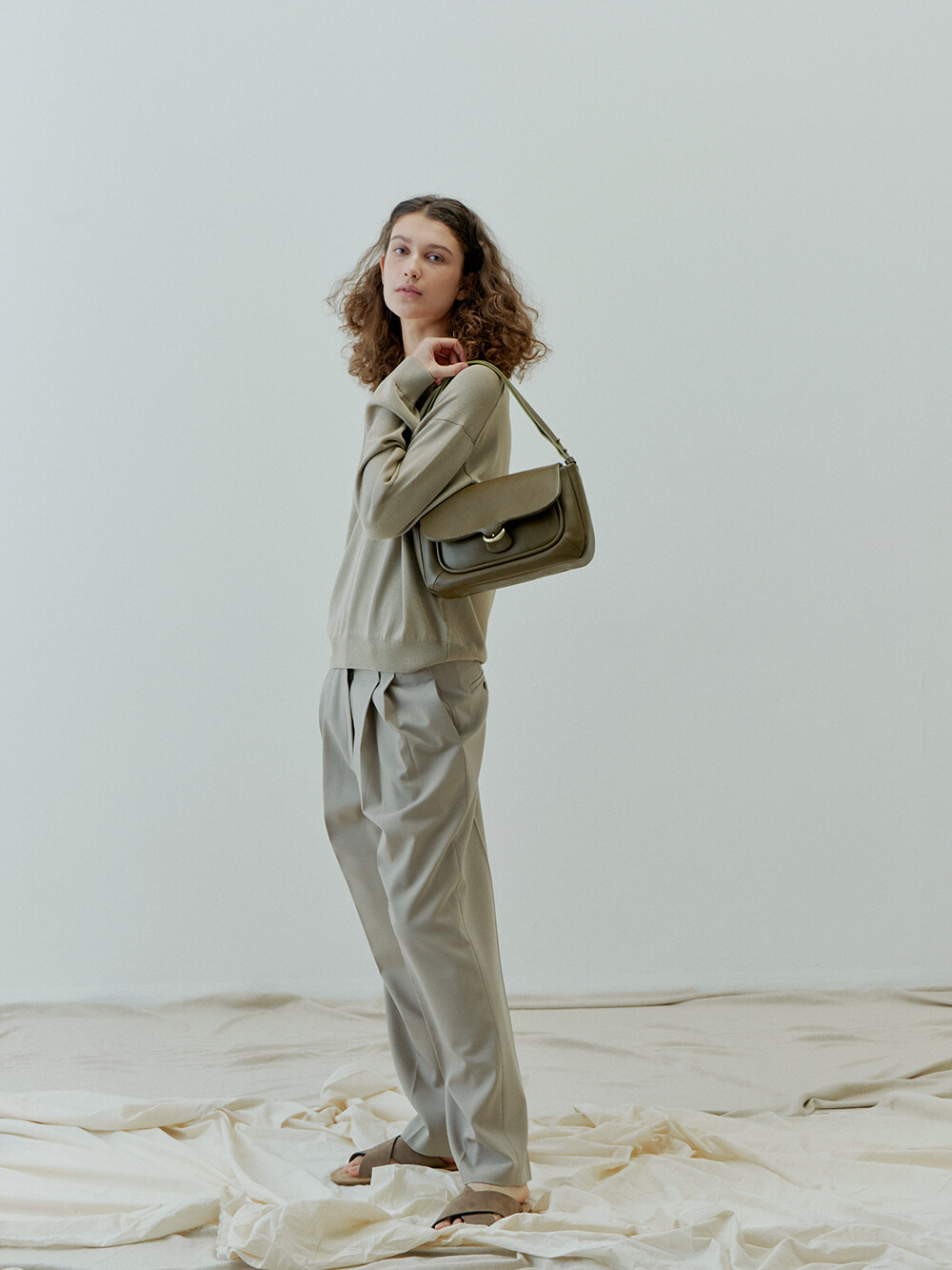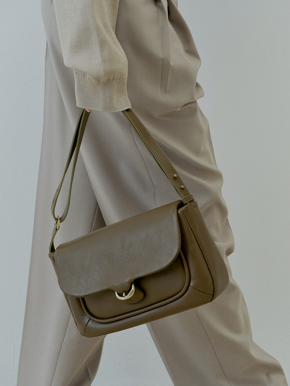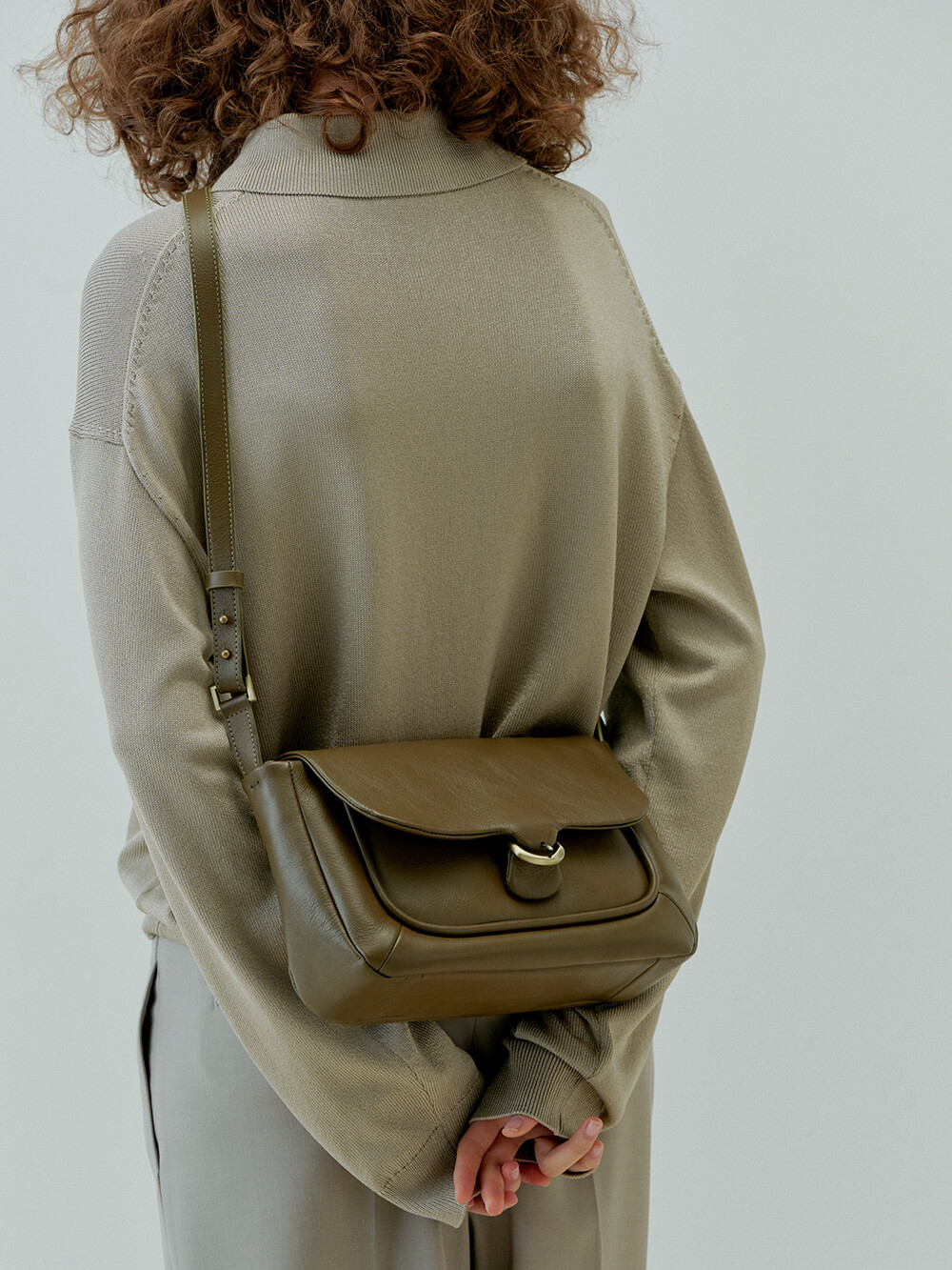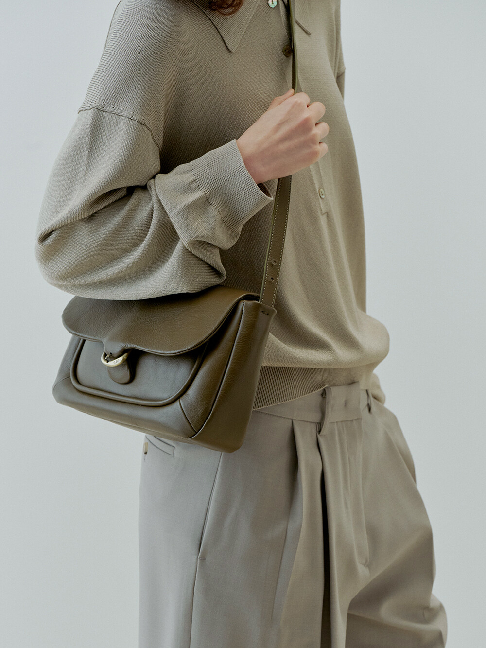 <디자이너의 말> 누군가에게 마음이나 소식을 전하는 우편봉투를 닮은 메일백을 유르트의 시선으로 재해석한 디자인입니다. 소중한 마음과 중요한 이야기들을 묵묵하게 전달하는 비밀스러운 전달자처럼 디테일을 최소화하고 유르트만의 버클장식으로 무게감을 더했습니다.