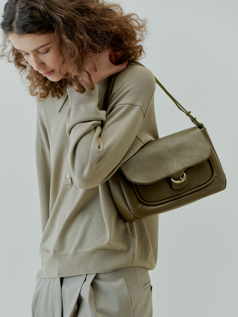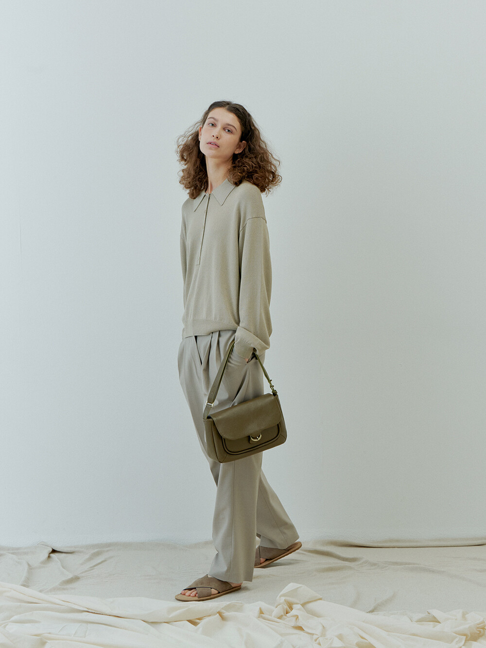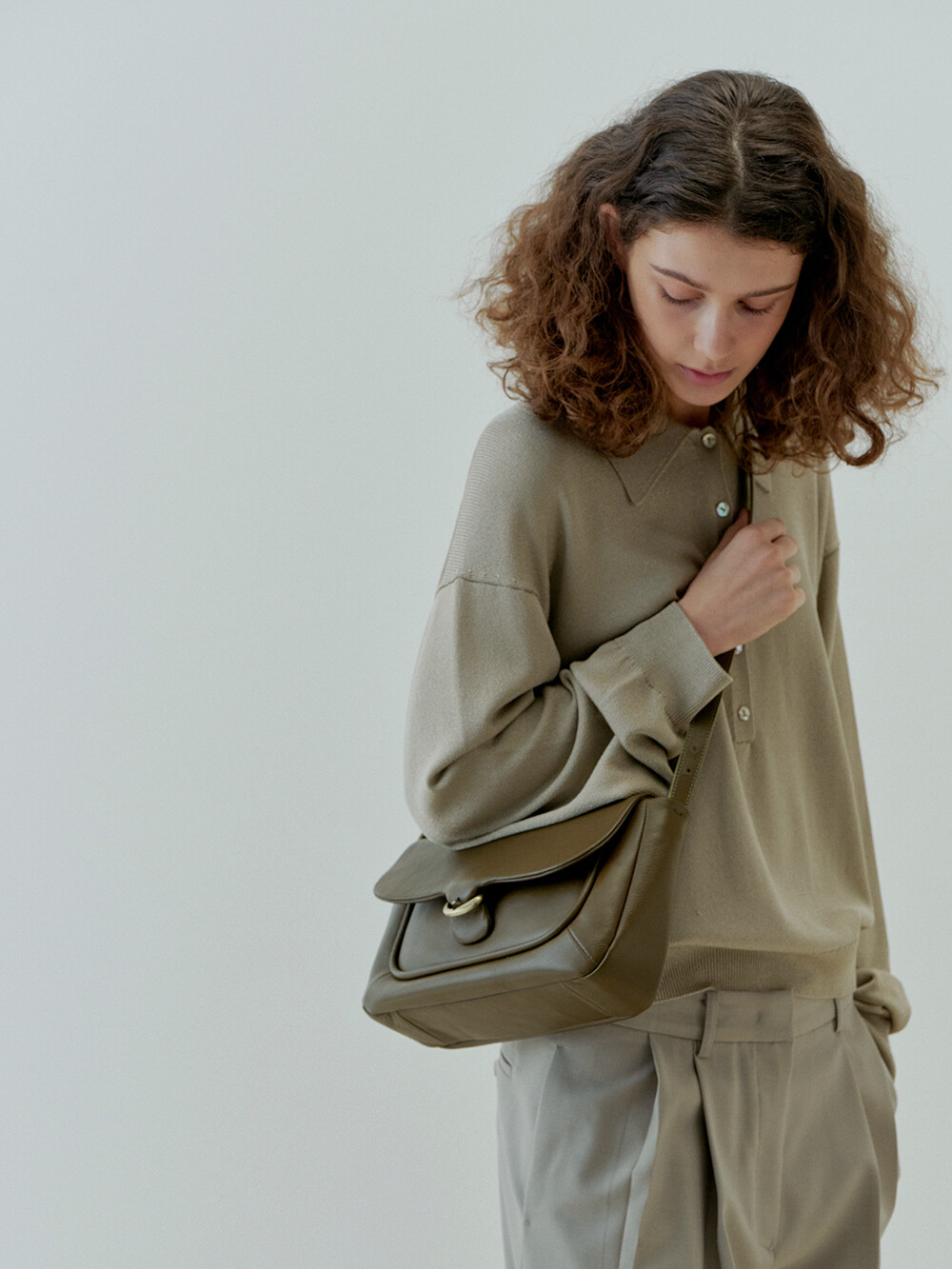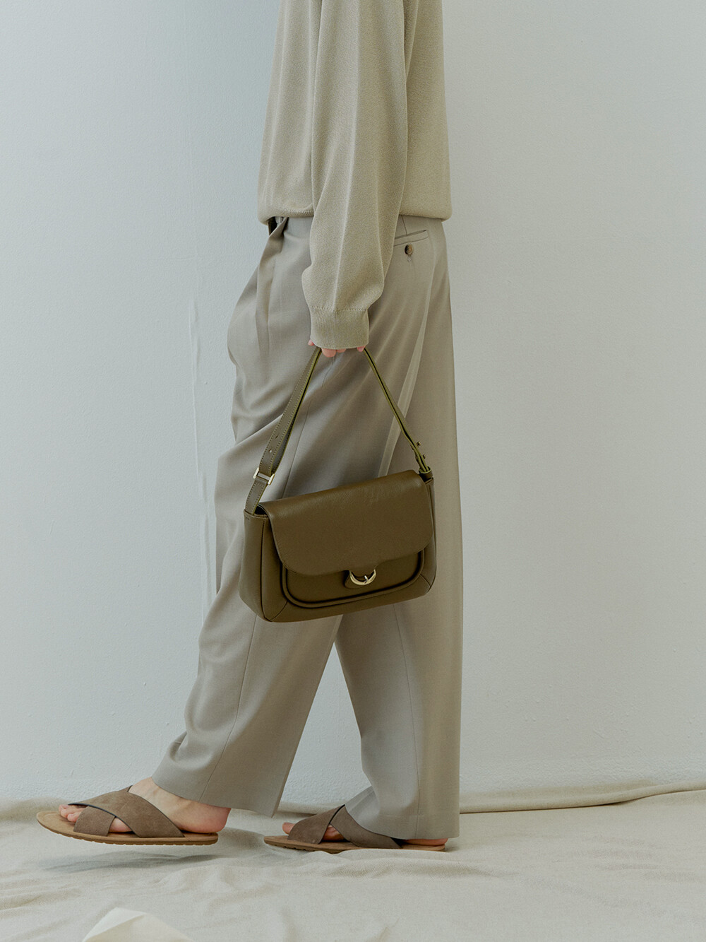 <디자이너의 말> 누군가에게 마음이나 소식을 전하는 우편봉투를 닮은 메일백을 유르트의 시선으로 재해석한 디자인입니다. 소중한 마음과 중요한 이야기들을 묵묵하게 전달하는 비밀스러운 전달자처럼 디테일을 최소화하고 유르트만의 버클장식으로 무게감을 더했습니다.