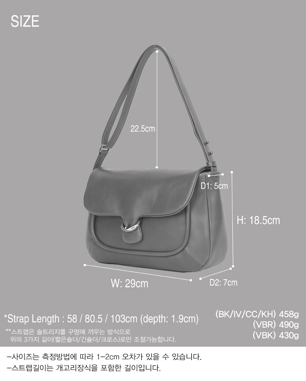 -부드러운 소가죽을 사용하여 견고하지만 푹신하게 몸에 감기는 디자인입니다. -매트하고 담백한 질감의 블랙, 아이보리와 투톤의 자연스러운 주름이 매력인 빈티지브라운으로 구성하였습니다. -10.9인치 아이패드까지 수납이 가능하여 데일리백으로 활용하기 좋은 사이즈입니다. -3way (짧은 숄더/긴 숄더/크로스)로 스트랩의 길이를 조절하여 다양한 방식으로 연출할 수 있습니다. -유르트의 로고가 각인된 비정형의 금속장식을 사용하여 고급스러운 느낌을 더하였습니다.