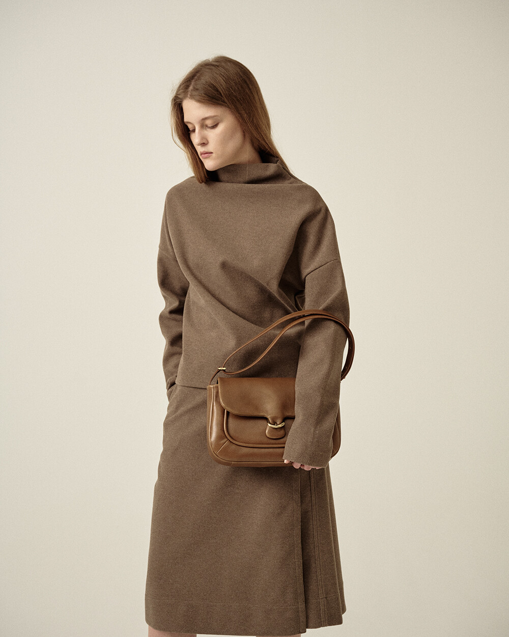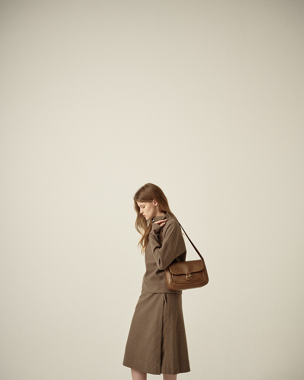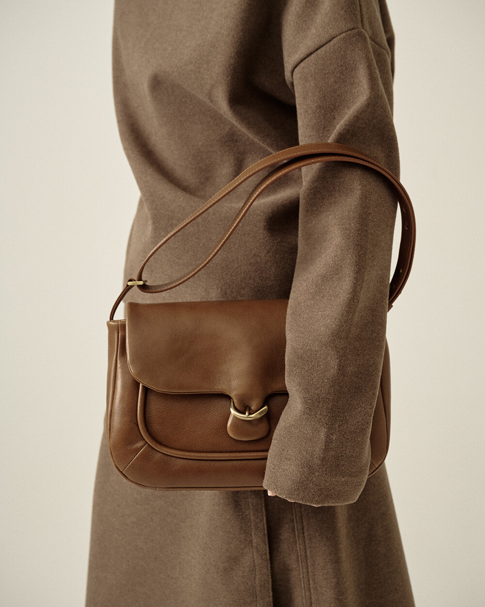 <디자이너의 말> 누군가에게 마음이나 소식을 전하는 우편봉투를 닮은 메일백을 유르트의 시선으로 재해석한 디자인입니다. 소중한 마음과 중요한 이야기들을 묵묵하게 전달하는 비밀스러운 전달자처럼 디테일을 최소화하고 유르트만의 버클장식으로 무게감을 더했습니다.