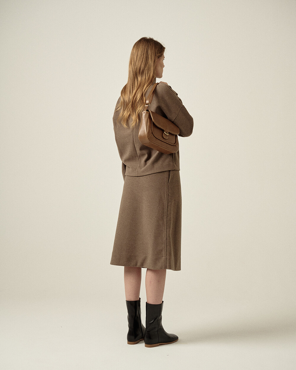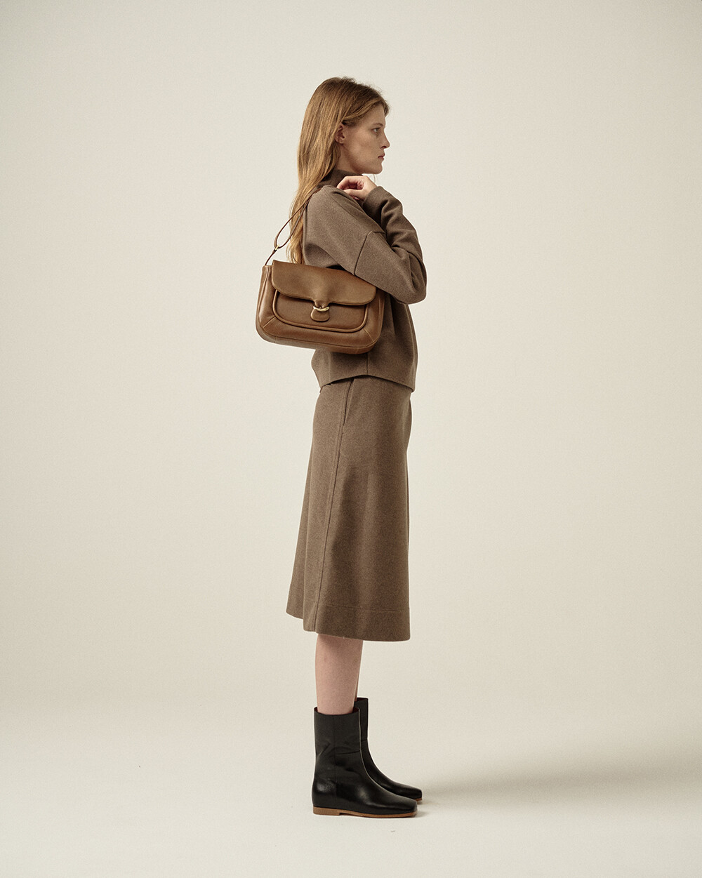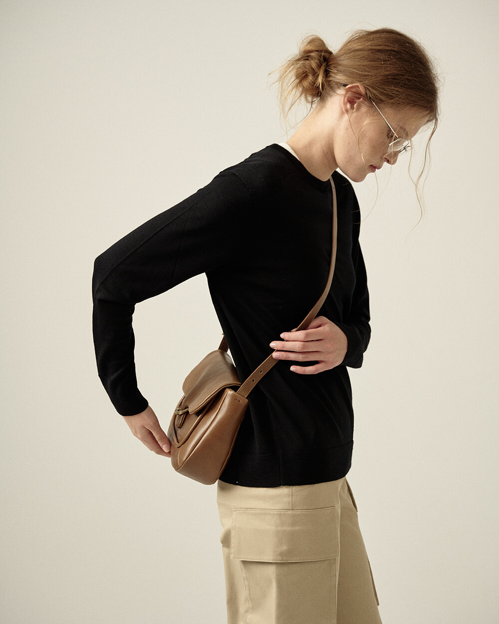<디자이너의 말> 누군가에게 마음이나 소식을 전하는 우편봉투를 닮은 메일백을 유르트의 시선으로 재해석한 디자인입니다. 소중한 마음과 중요한 이야기들을 묵묵하게 전달하는 비밀스러운 전달자처럼 디테일을 최소화하고 유르트만의 버클장식으로 무게감을 더했습니다.