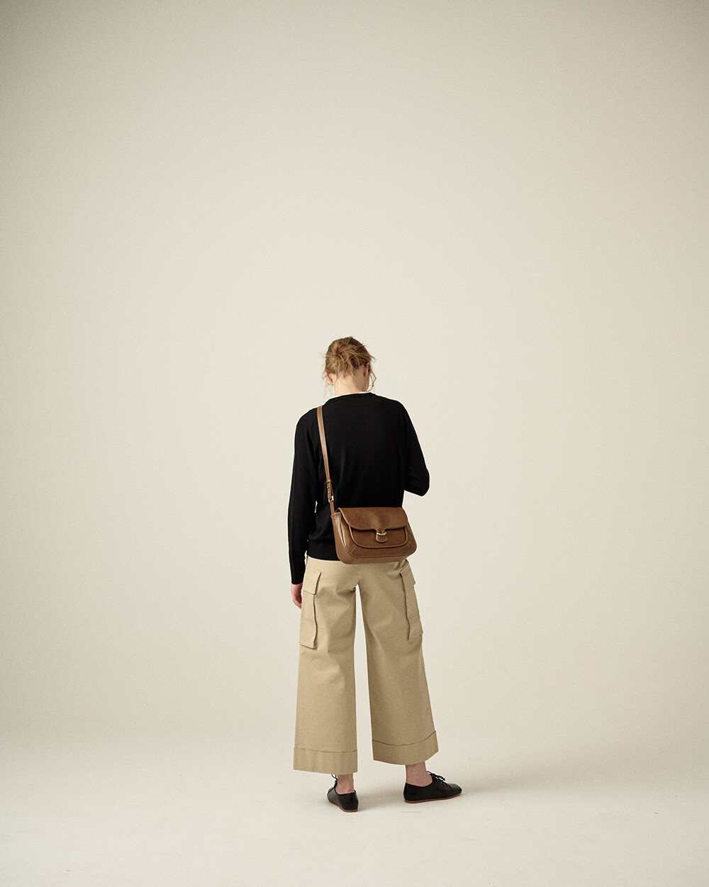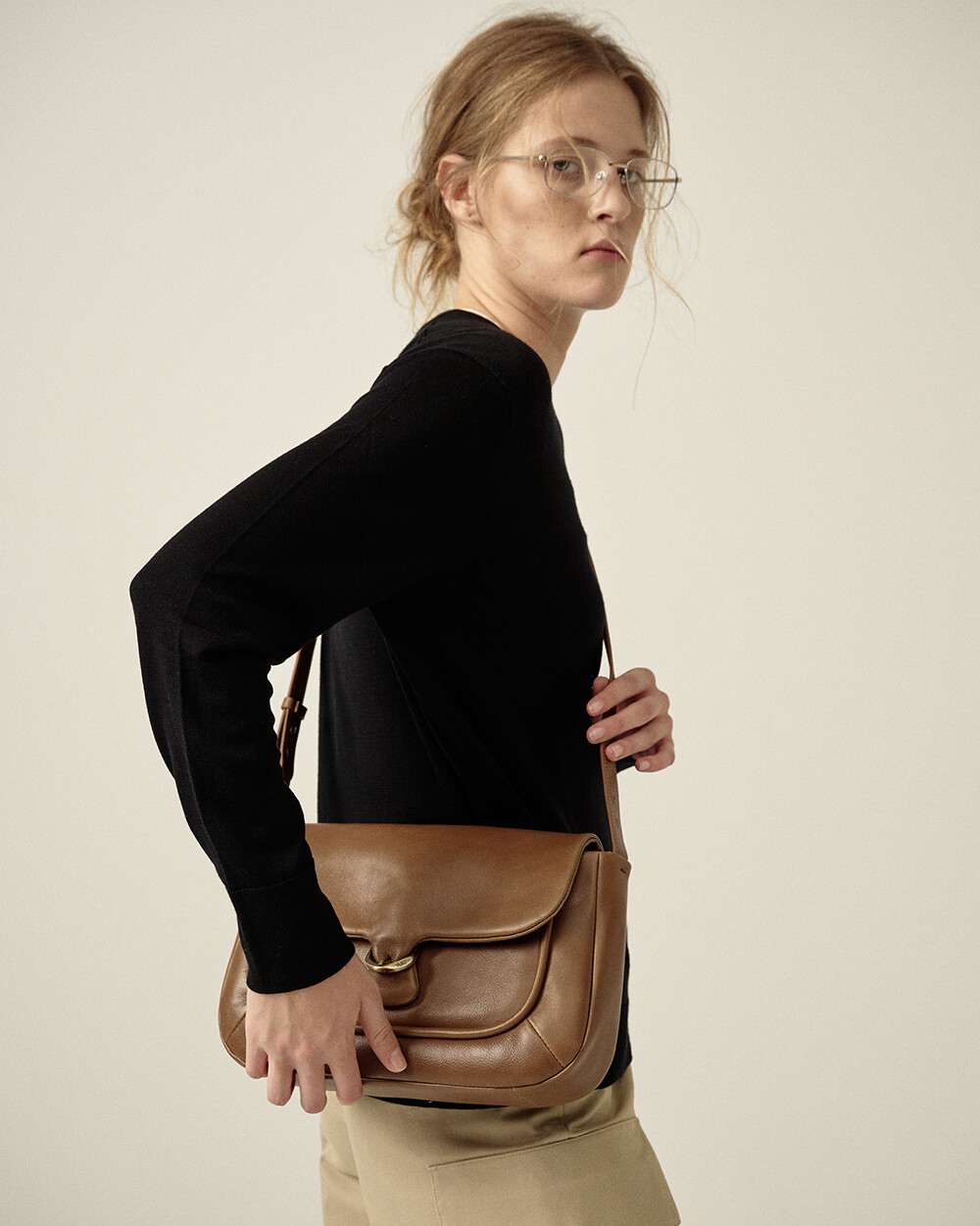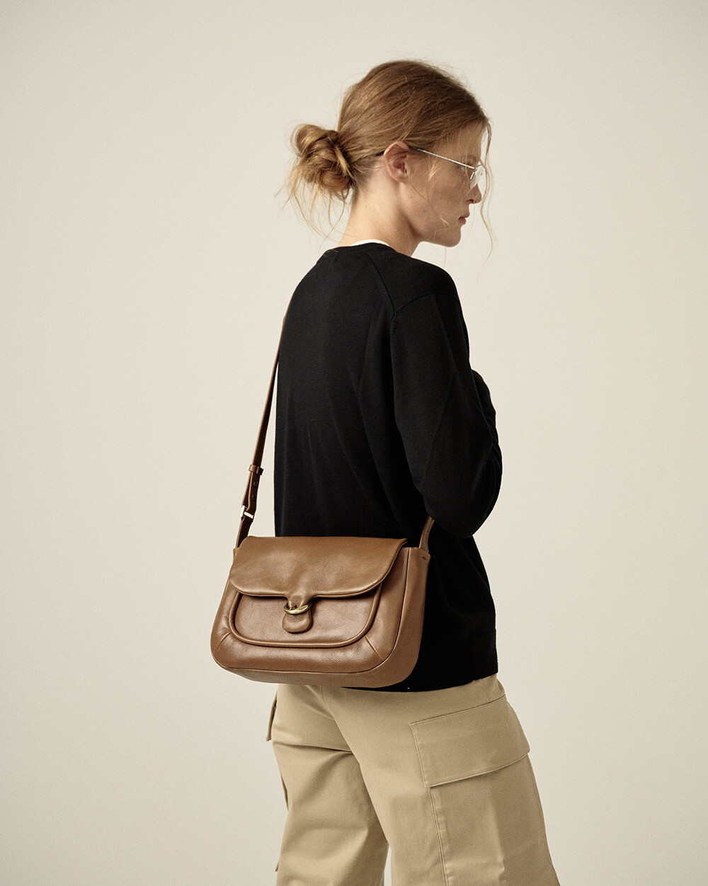 -부드러운 소가죽을 사용하여 견고하지만 푹신하게 몸에 감기는 디자인입니다. -매트하고 담백한 질감의 블랙, 아이보리와 투톤의 자연스러운 주름이 매력인 빈티지브라운으로 구성하였습니다. -10.9인치 아이패드까지 수납이 가능하여 데일리백으로 활용하기 좋은 사이즈입니다. -3way (짧은 숄더/긴 숄더/크로스)로 스트랩의 길이를 조절하여 다양한 방식으로 연출할 수 있습니다. -유르트의 로고가 각인된 비정형의 금속장식을 사용하여 고급스러운 느낌을 더하였습니다.