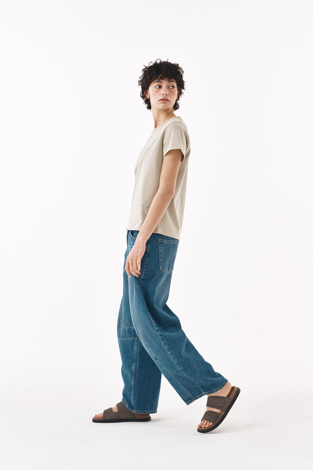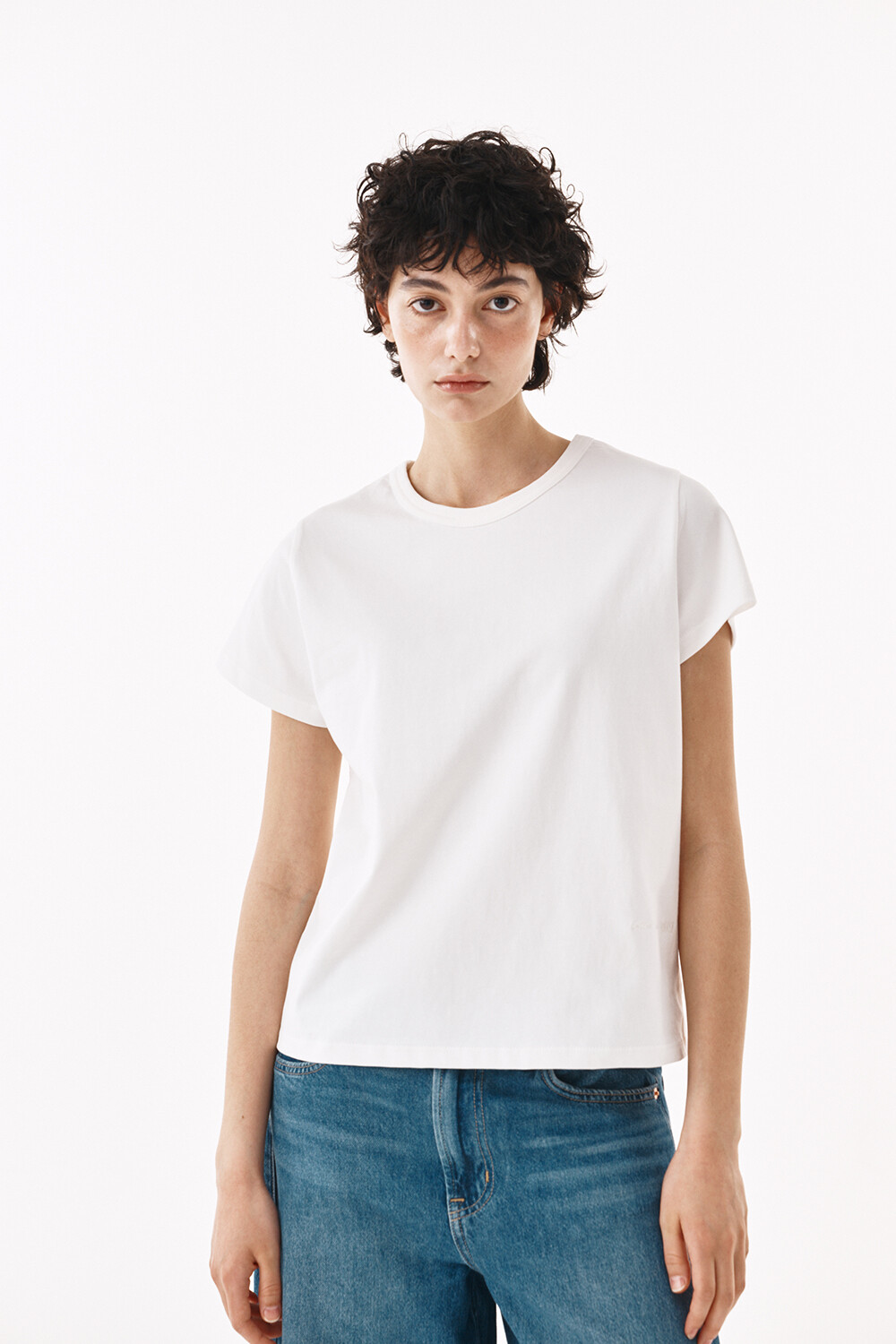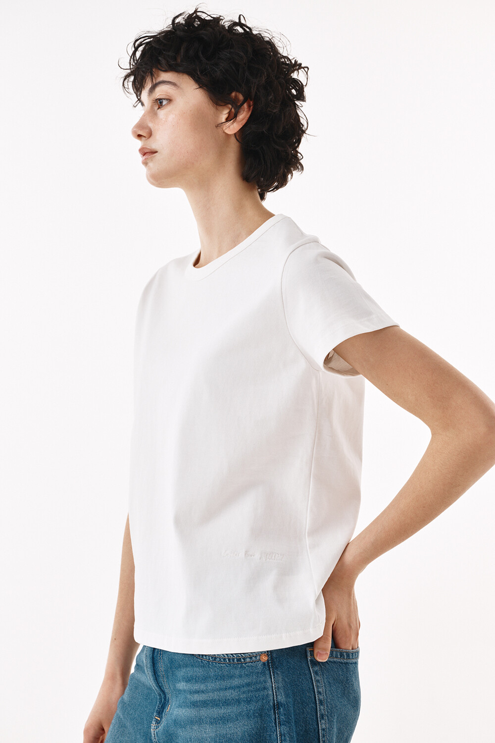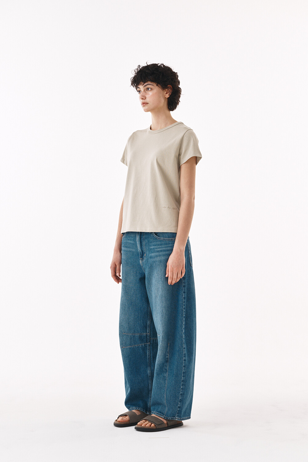 - 쾌적한 터치감의 코튼원사로 제작된 하프 슬리브 티셔츠입니다.