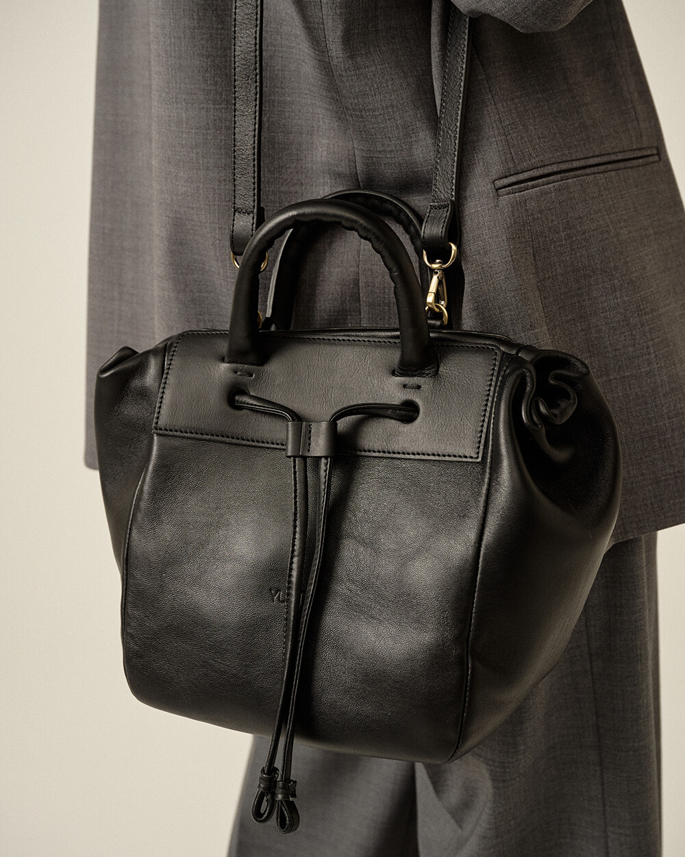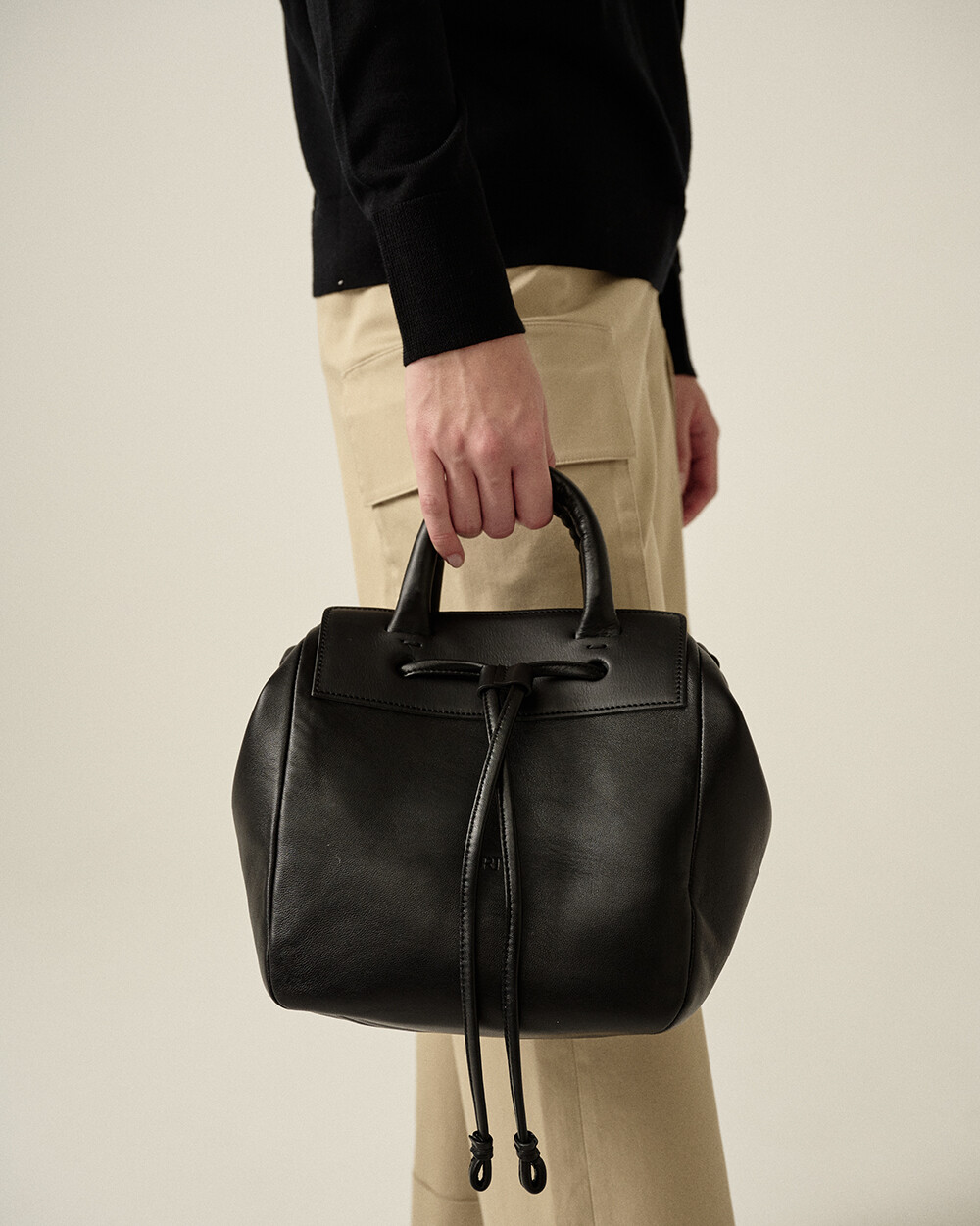 - 그립감이 좋은 통통한 손잡이와 크지만 귀여운 비율의 실루엣을 가진 토트, 크로스백입니다. - 가방입구의 모양을 돛단배처럼 넓게 스트링을 당겨 복주머니 형태로 활용이 가능한 디자인입니다. - 양가죽과 소가죽을 함께 조합하여 가벼운 무게감과 탄탄한 내구성을 지녔습니다. - 탈부착이 가능한 레더스트랩으로 토트, 숄더, 크로스 모두 연출 가능합니다.