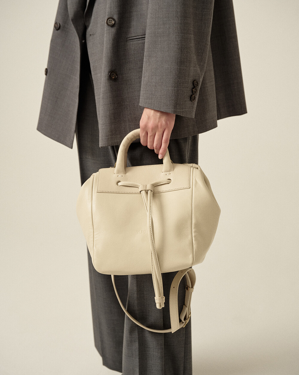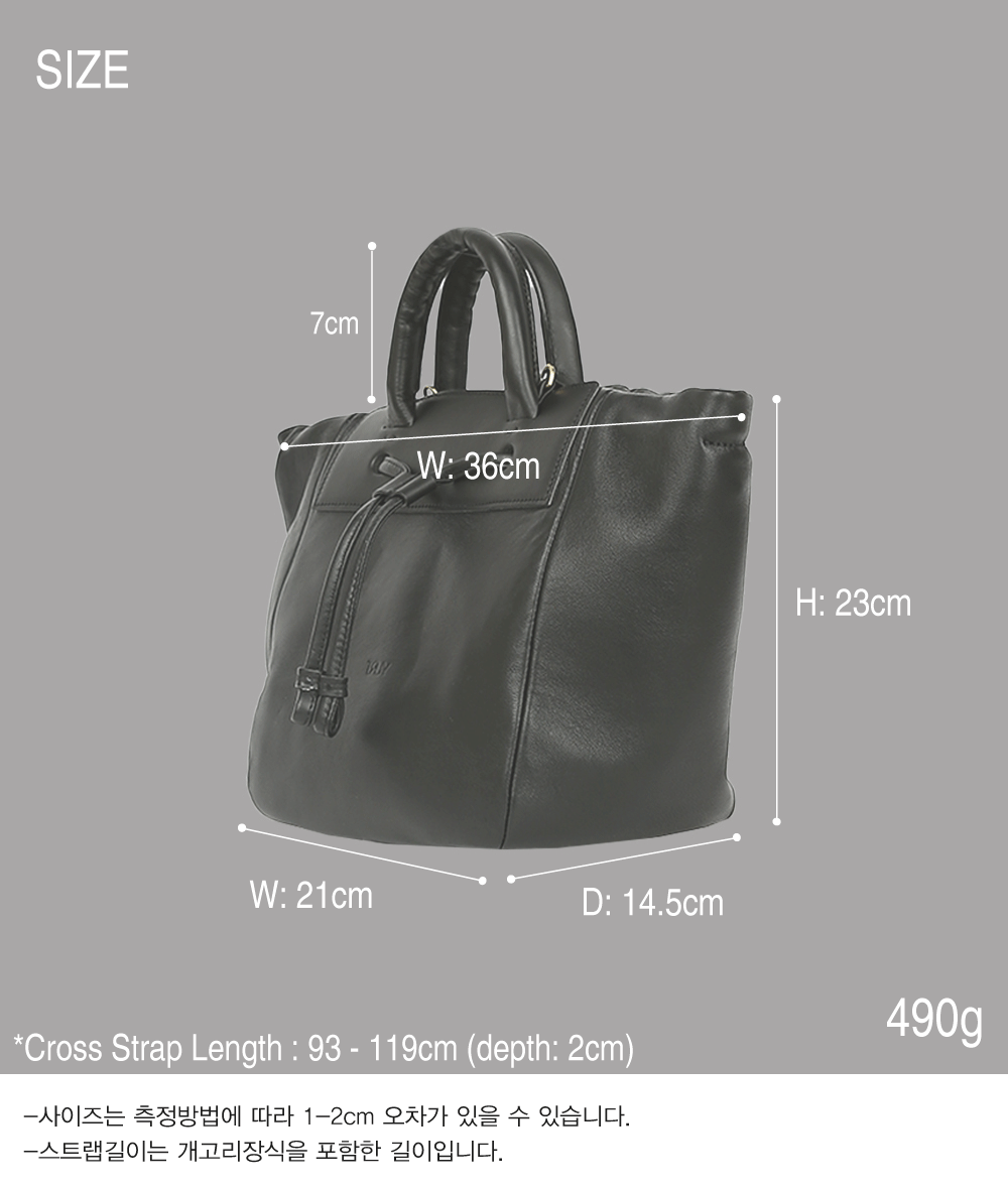 - 그립감이 좋은 통통한 손잡이와 크지만 귀여운 비율의 실루엣을 가진 토트, 크로스백입니다. - 가방입구의 모양을 돛단배처럼 넓게 스트링을 당겨 복주머니 형태로 활용이 가능한 디자인입니다. - 양가죽과 소가죽을 함께 조합하여 가벼운 무게감과 탄탄한 내구성을 지녔습니다. - 탈부착이 가능한 레더스트랩으로 토트, 숄더, 크로스 모두 연출 가능합니다.