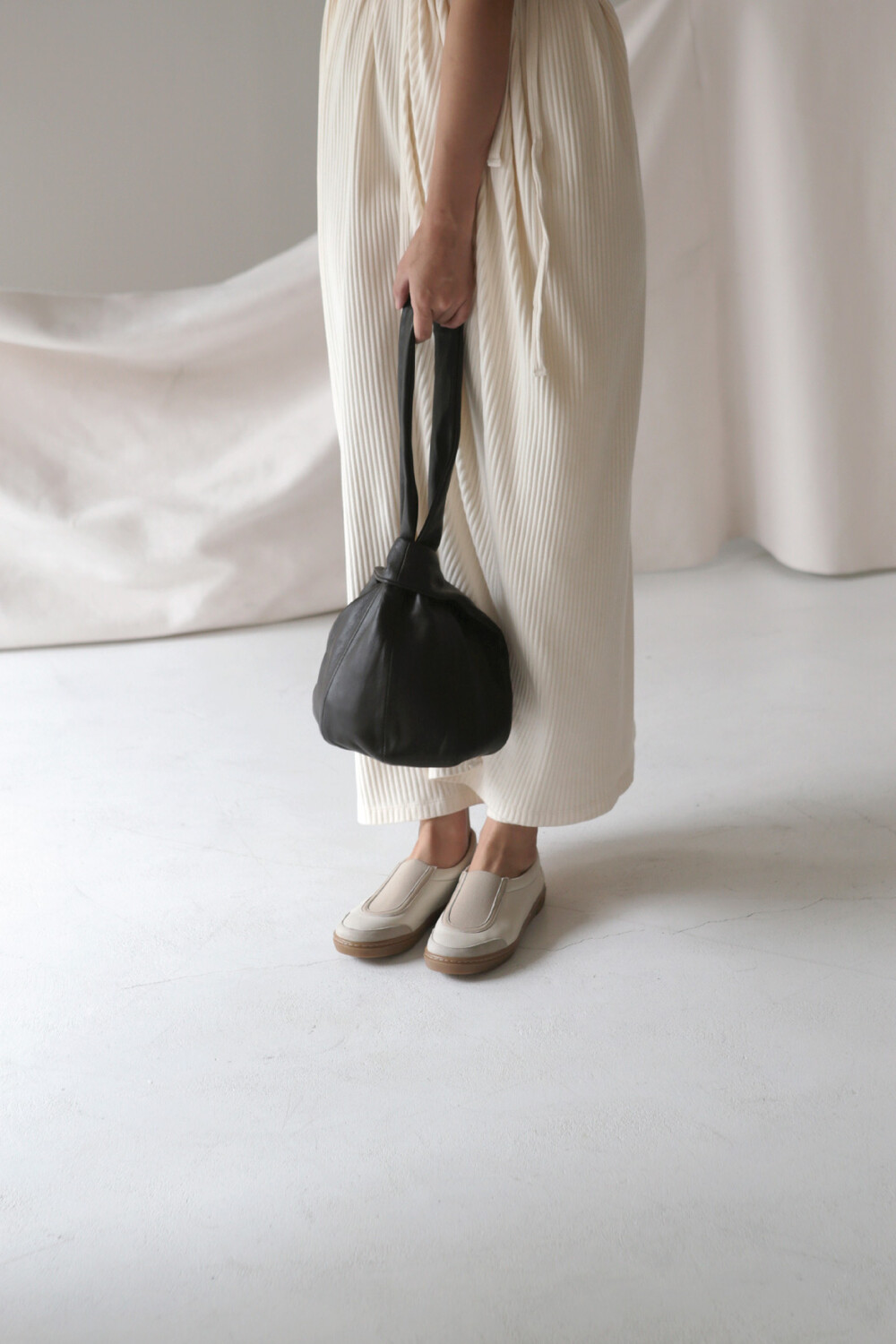 무화과를 닮은 실루엣의 부드러운 양가죽으로 제작된 'FIG 피그'입니다. 바닥은 꽃 혹은 화과자 모양으로 디자인되어 실루엣을 전반적으로 탄탄하게 잡아주며, 수납을 많아 아래로 쳐지는 현상을 줄여주었습니다. 숄더 혹은 토트로 착용할 수 있도록 제작되었으며, 길이가 다른 두 스트랩을 엮어서 여미는 구조입니다. 러프하게 걸쳐도 포인트가 되어주는 데일리 가방입니다.