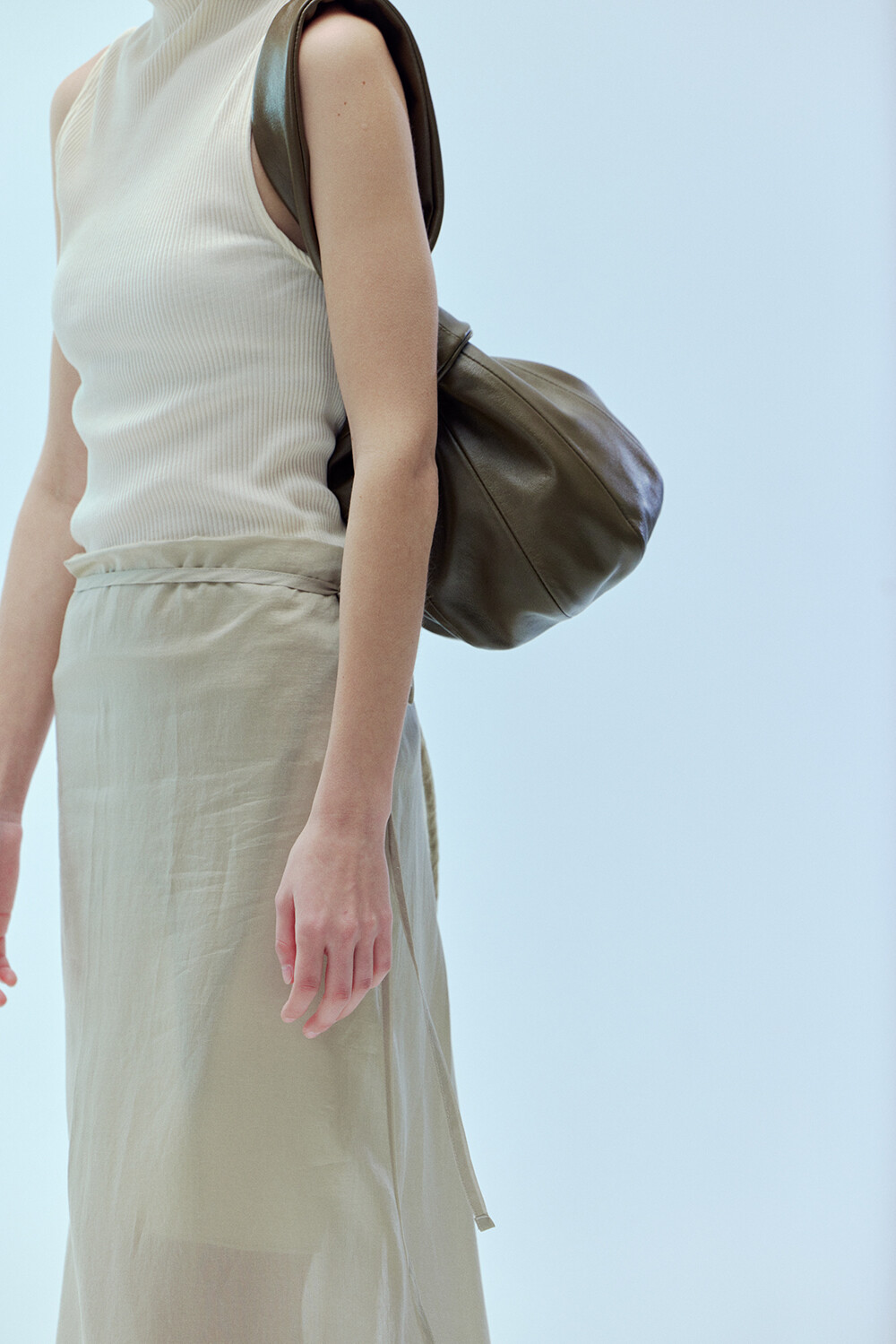 무화과를 닮은 실루엣의 부드러운 양가죽으로 제작된 'FIG 피그'입니다. 바닥은 꽃 혹은 화과자 모양으로 디자인되어 실루엣을 전반적으로 탄탄하게 잡아주며, 수납을 많아 아래로 쳐지는 현상을 줄여주었습니다. 숄더 혹은 토트로 착용할 수 있도록 제작되었으며, 길이가 다른 두 스트랩을 엮어서 여미는 구조입니다. 러프하게 걸쳐도 포인트가 되어주는 데일리 가방입니다.