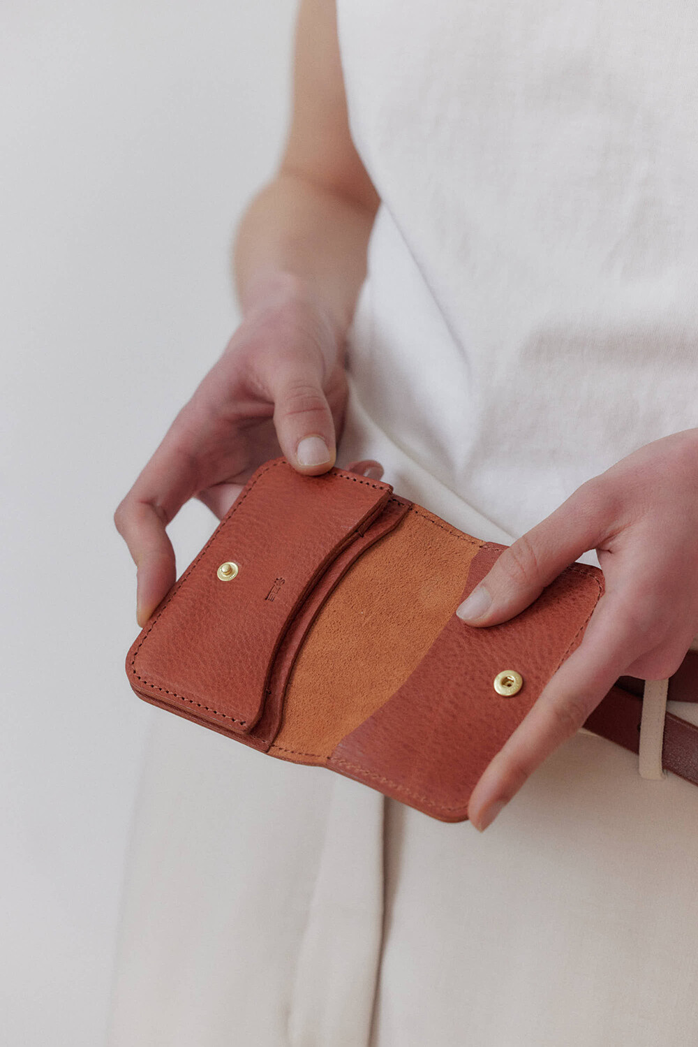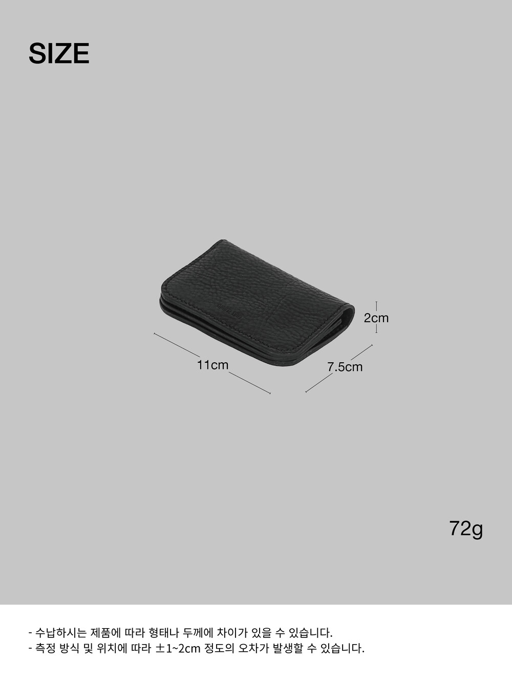 - 이탈리아 베지터블가죽으로 만들어진 미니멀한 반지갑입니다.