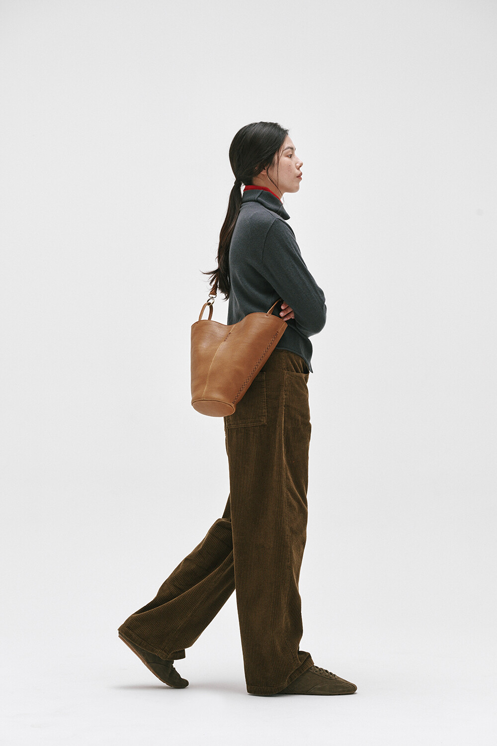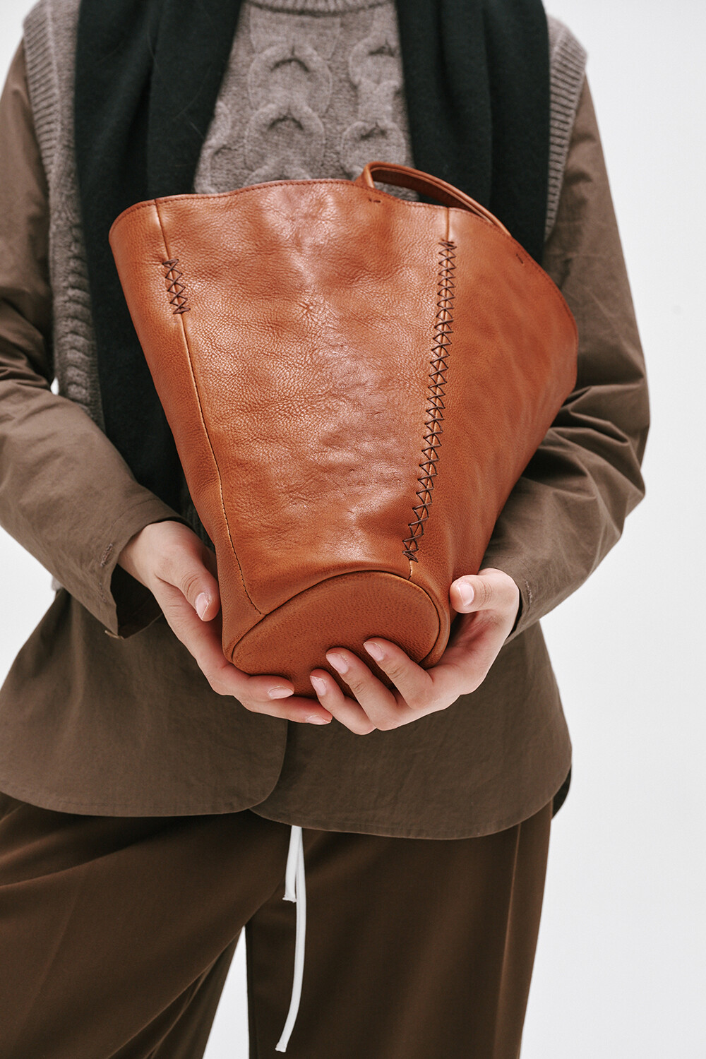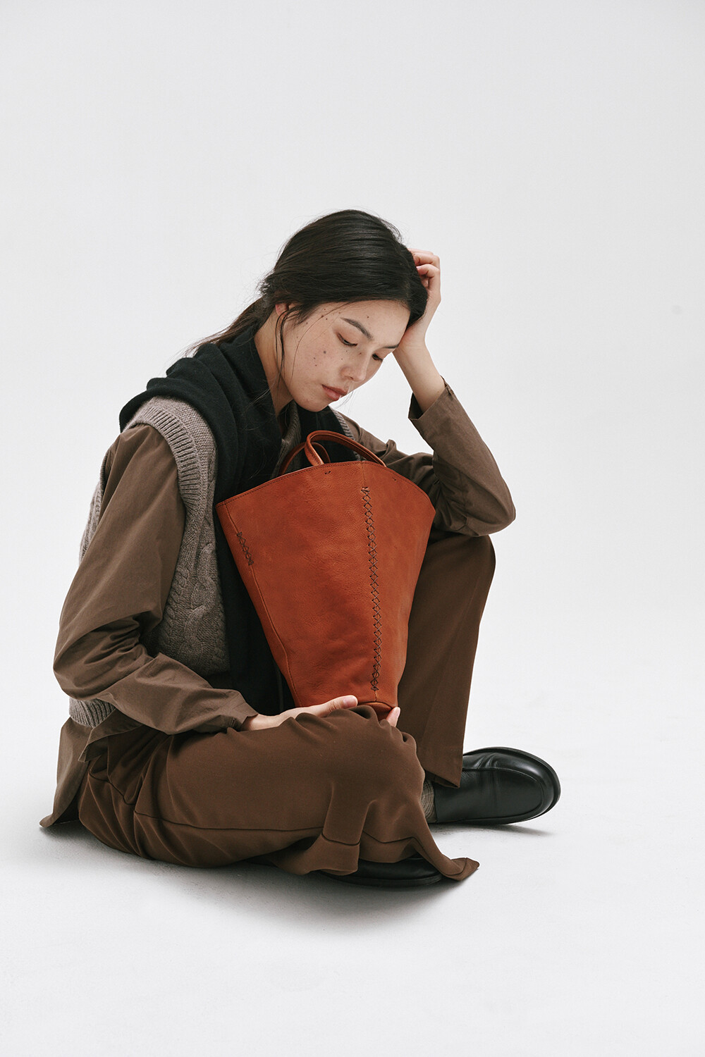 이탈리아산 천연 베지터블 가죽을 아낌없이 사용해, 볼드한 바스켓 형태와 핸드 스티치라인으로 유르트의 감도를 풍부하게 담아낸 버킷백 ‘HARV 하브’입니다. 일반적인 버킷백보다 과감한 컷팅으로 멋스러운 쉐입을 구현하고, 한 땀 한 땀 엮은 핸드 스티치라인을 새겨 고급스러우면서도 캐주얼하게 풀어냈습니다.