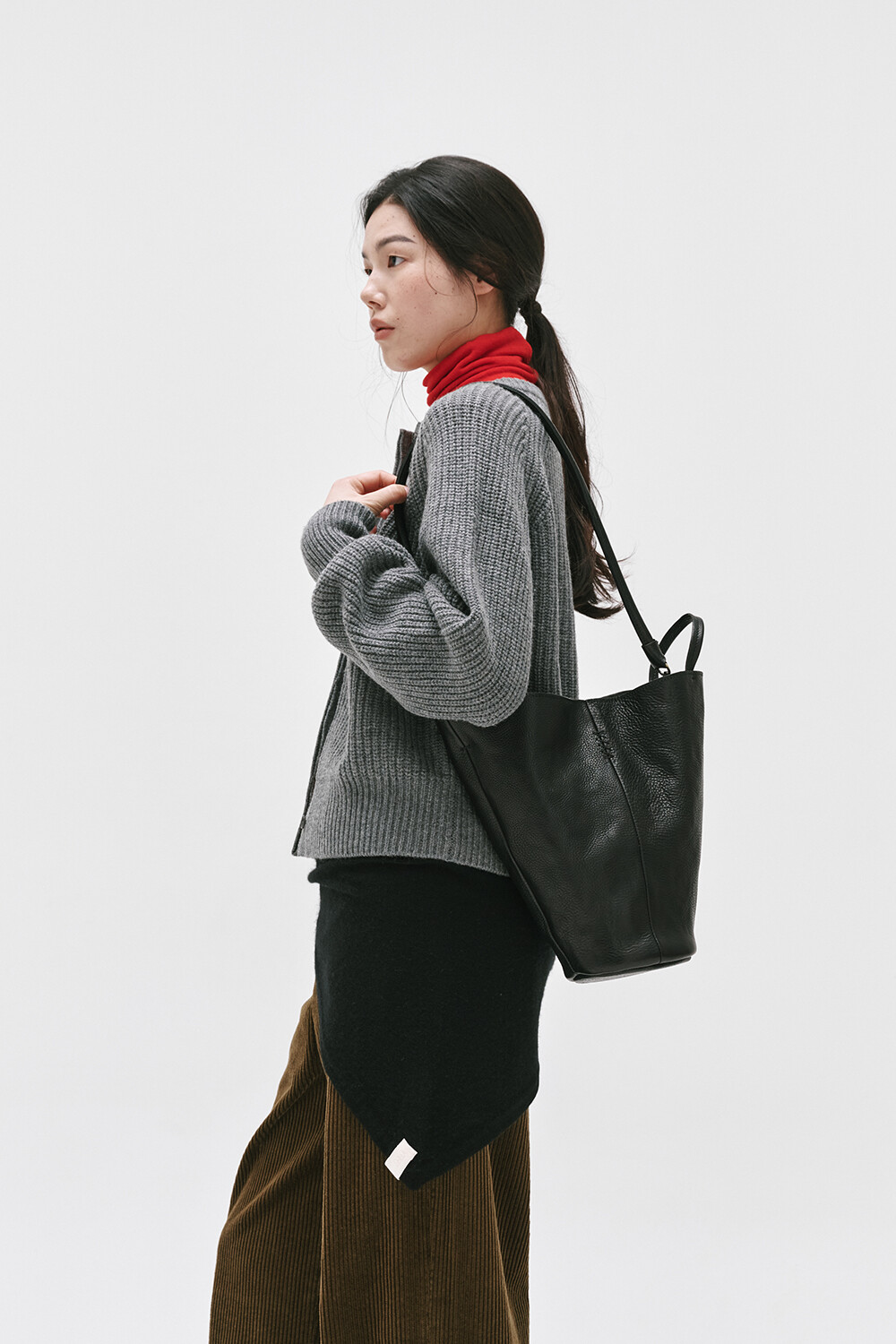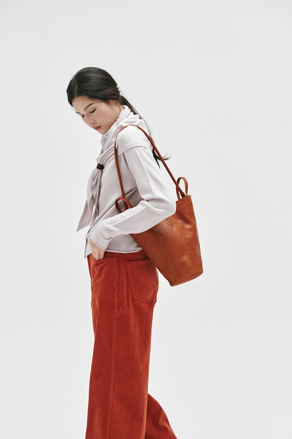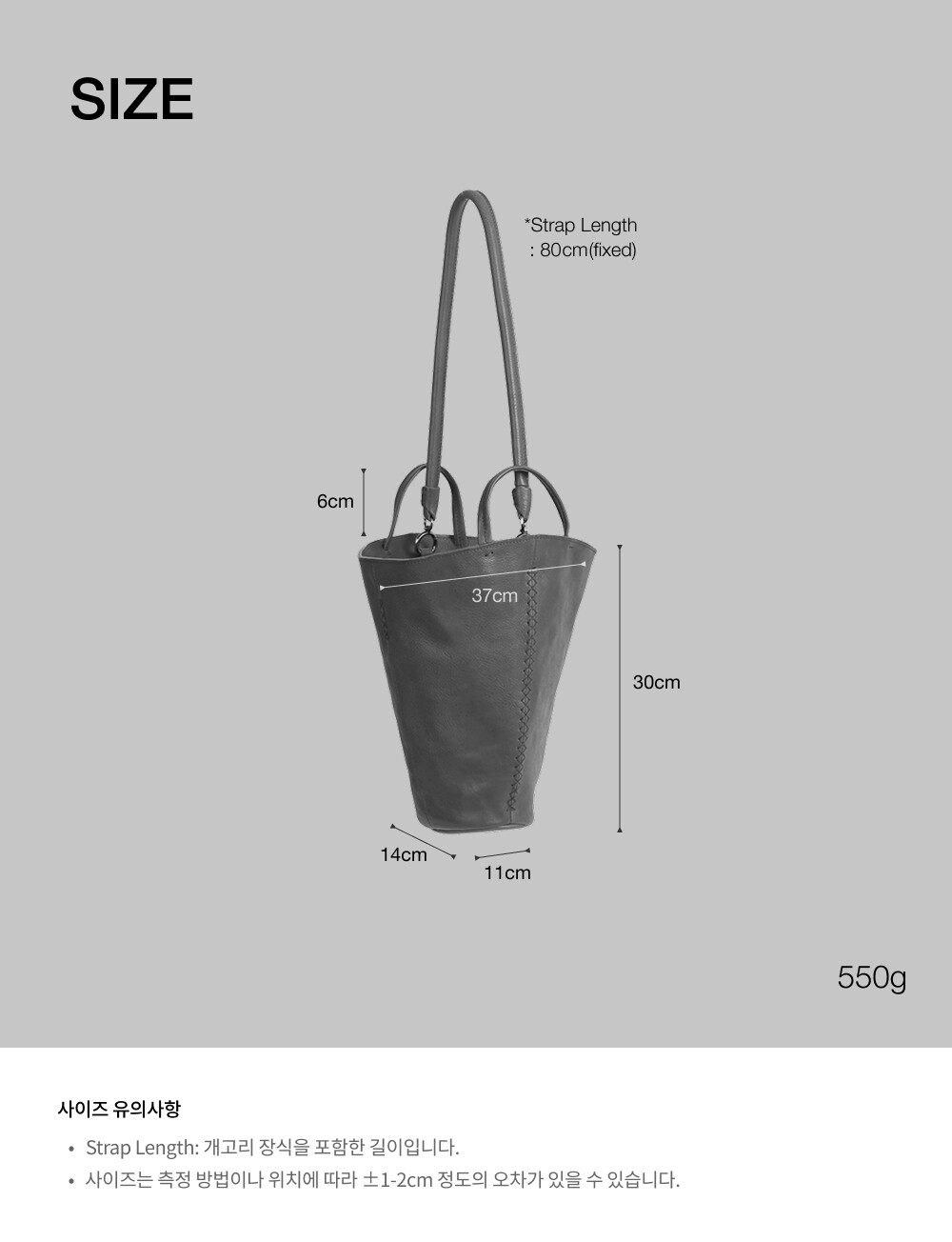 앞/뒤 구분 없이 원하는 착용방식에 따라 감각적인 탑핸들의 토트백으로, 분리 가능한 스트랩을 활용해 숄더/크로스백으로 즐기실 수 있습니다. 안쪽에는 일상에서 편안히 물건을 소지할 수 있도록 패브릭 포켓과 카드 수납이 가능한 레더 포켓 두 가지 모두를 더해 실용성을 높였습니다. 바닥면은 둥근 원형으로 다듬어 가방 하나만으로도 존재감있는 스타일링을 완성해주는 멋스러운 버킷백입니다.
