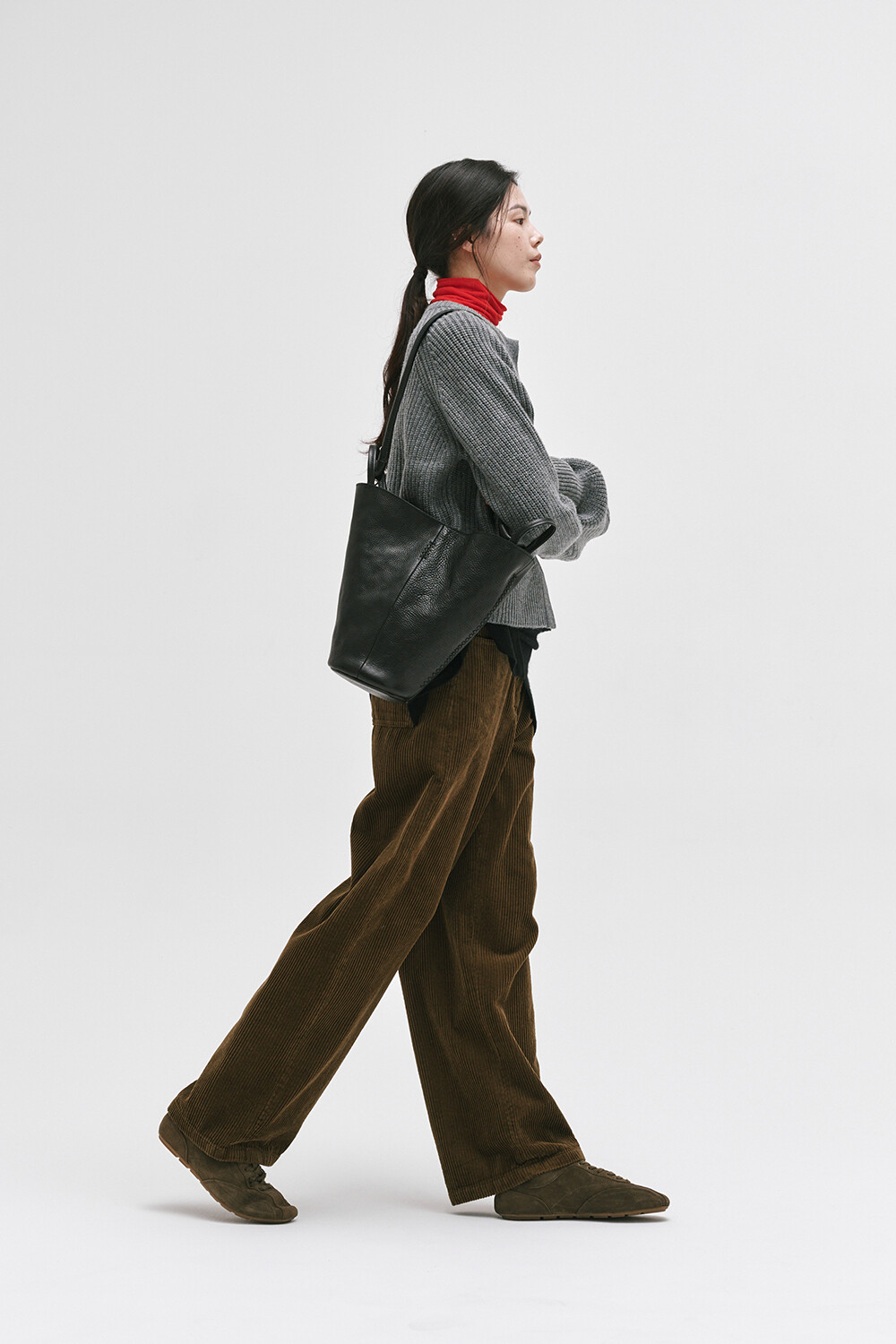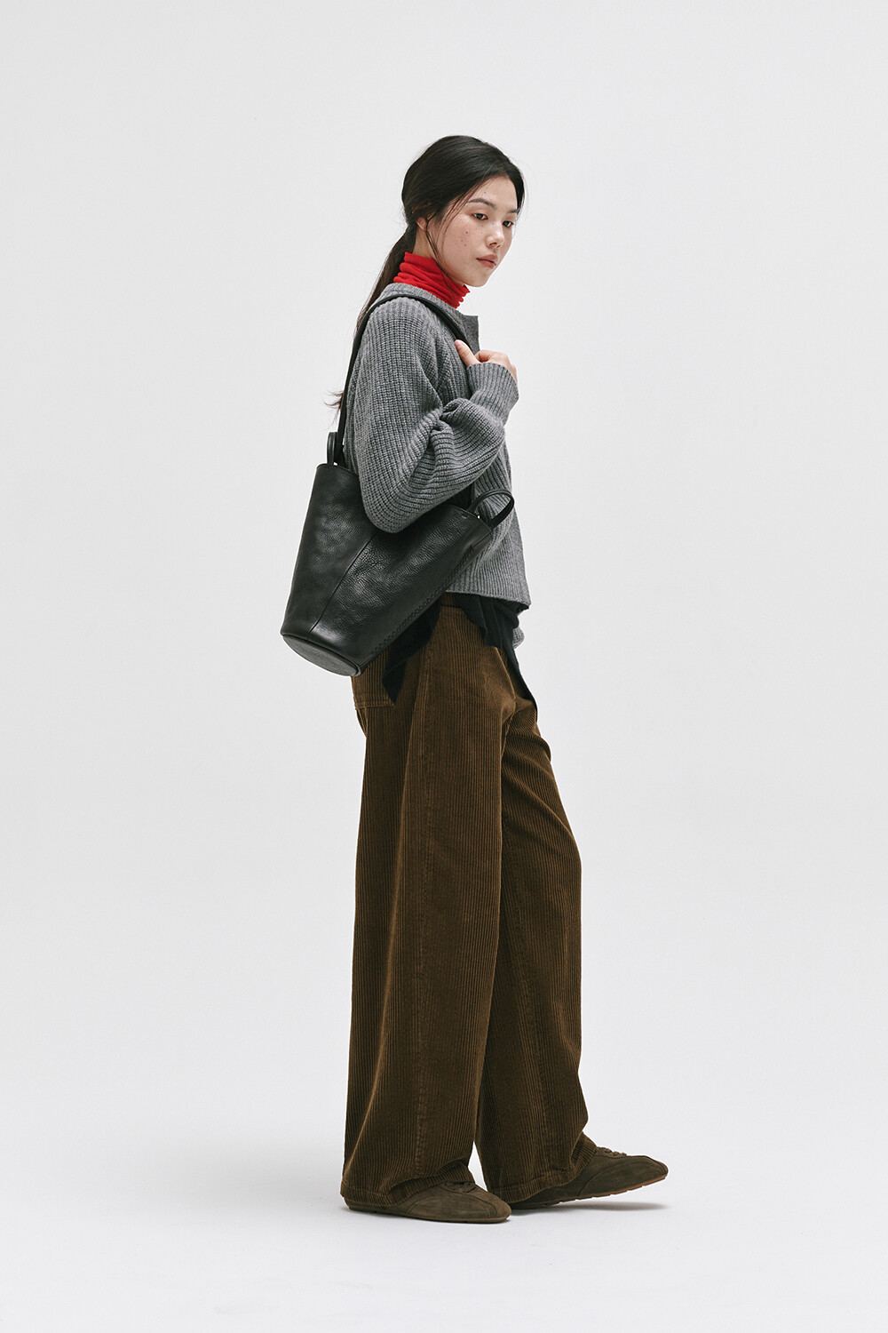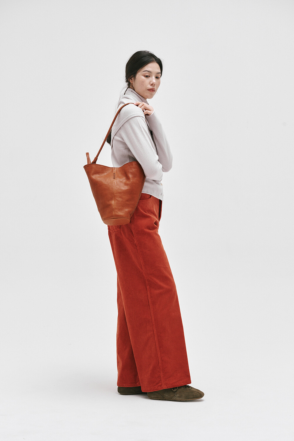 앞/뒤 구분 없이 원하는 착용방식에 따라 감각적인 탑핸들의 토트백으로, 분리 가능한 스트랩을 활용해 숄더/크로스백으로 즐기실 수 있습니다. 안쪽에는 일상에서 편안히 물건을 소지할 수 있도록 패브릭 포켓과 카드 수납이 가능한 레더 포켓 두 가지 모두를 더해 실용성을 높였습니다. 바닥면은 둥근 원형으로 다듬어 가방 하나만으로도 존재감있는 스타일링을 완성해주는 멋스러운 버킷백입니다.