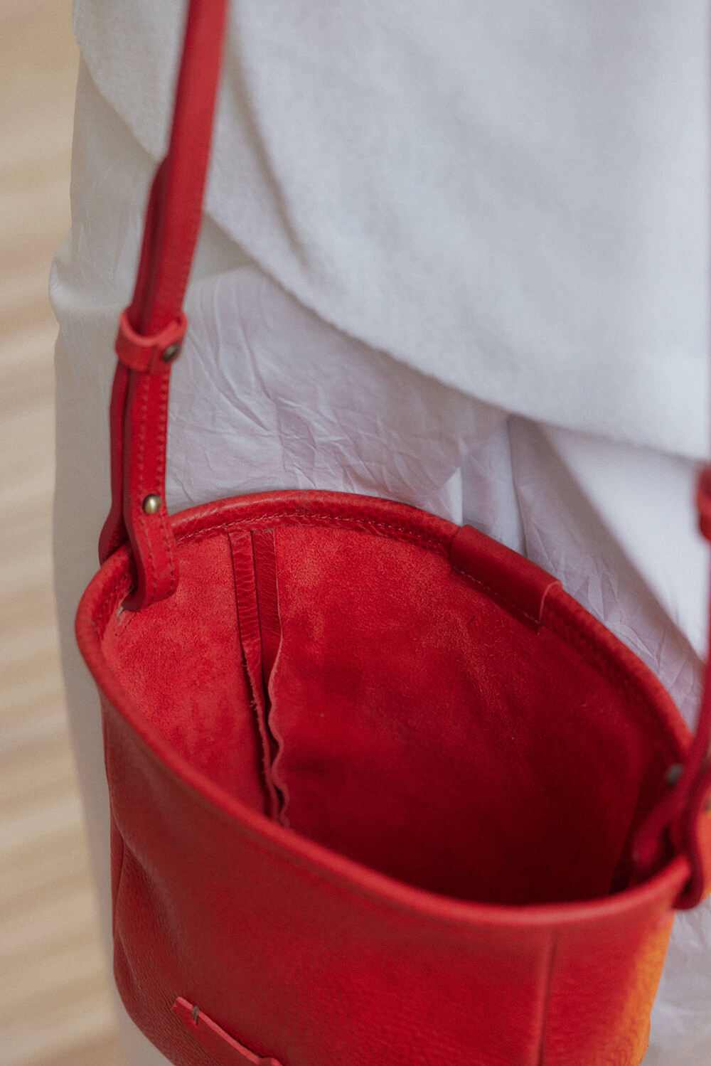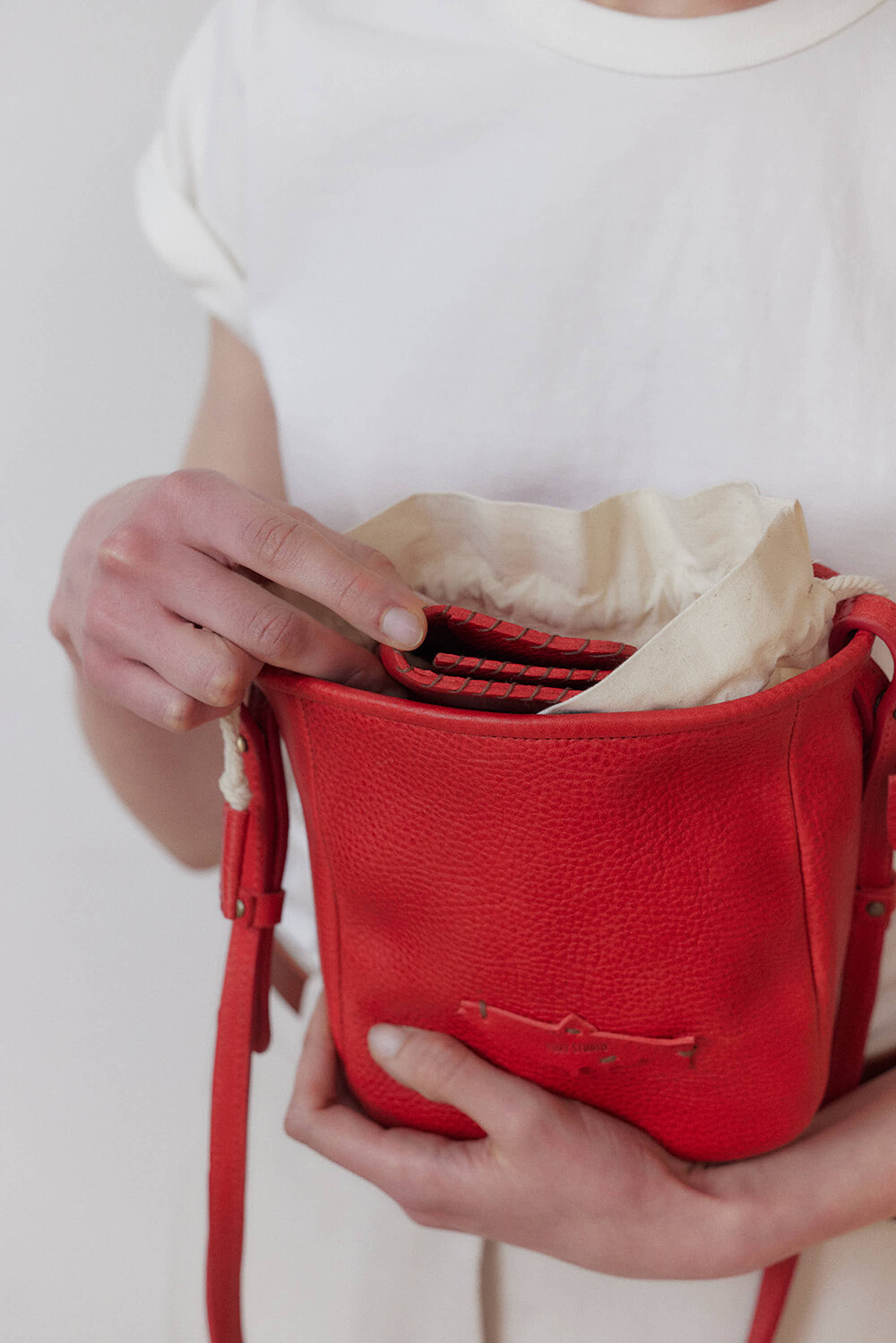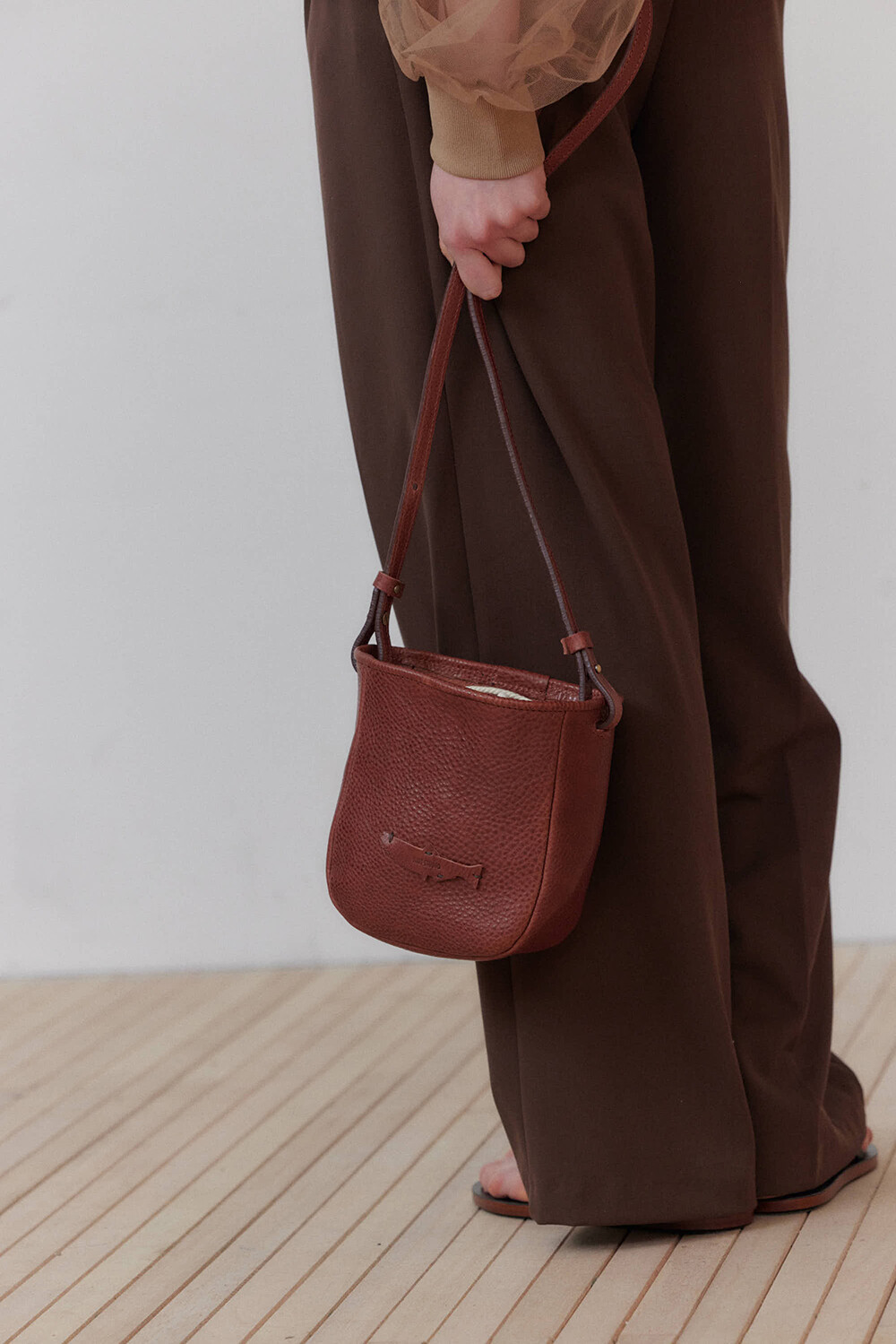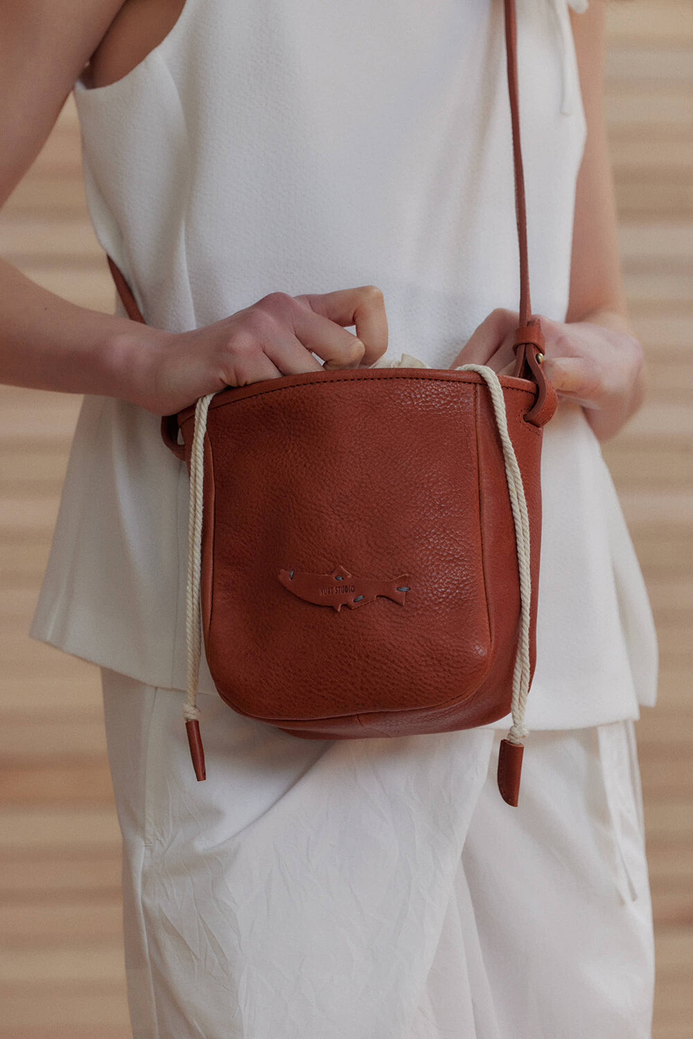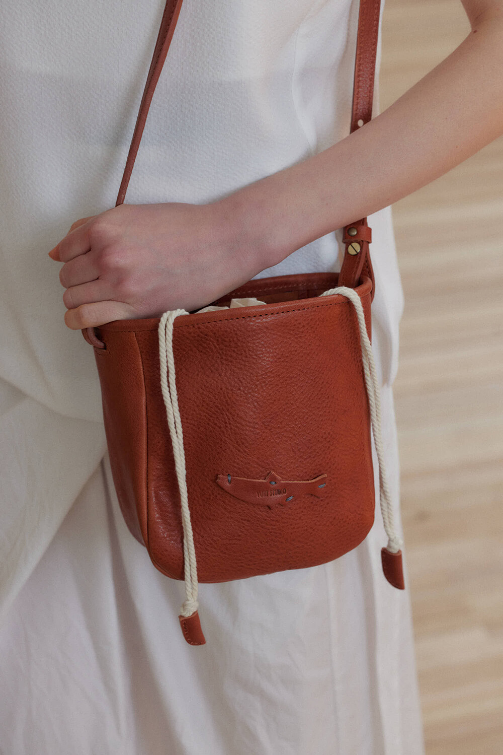 -베지터블 가죽과 핸드메이드 감성이 어우러진 디자인으로, 자연스러운 무드가 특징입니다.