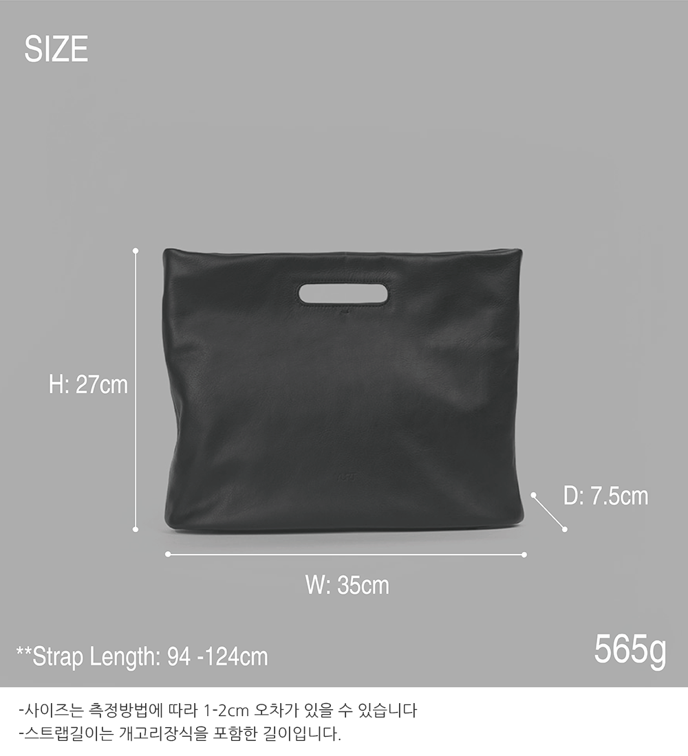 SIZE W - 38cm H - 27cm D - 7.5cm Strap Length - 93~105cm Weight - 565g