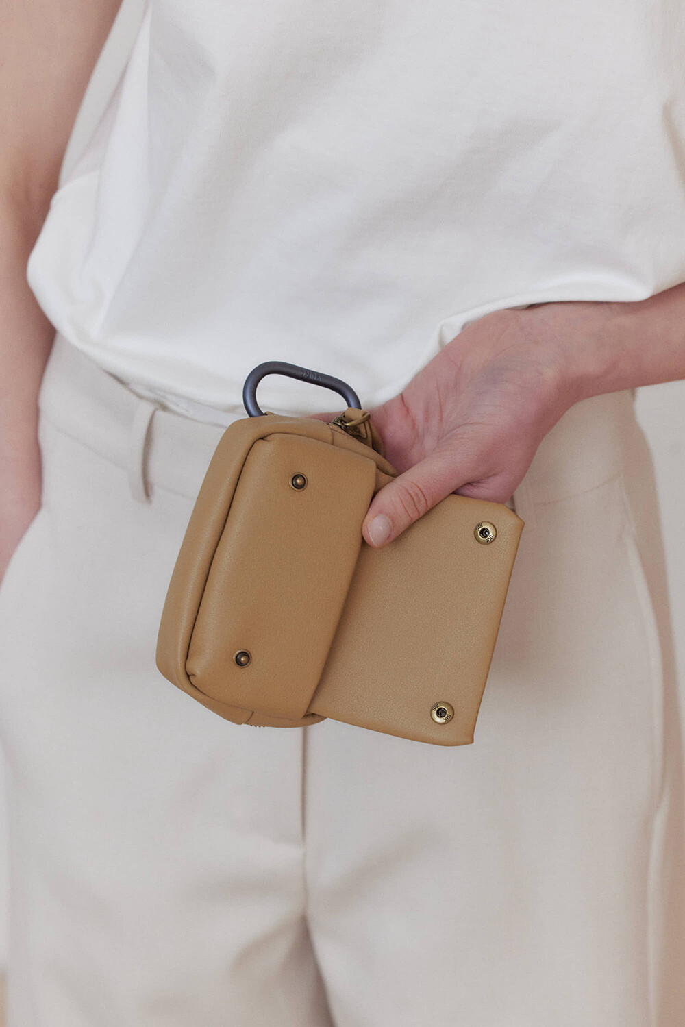 - 유르트 각인 카라비너와 구성되어 키링을 활용하여 연출 가능하며, 벨트와 함께 미니 벨트백으로 활용하실 수 있습니다.