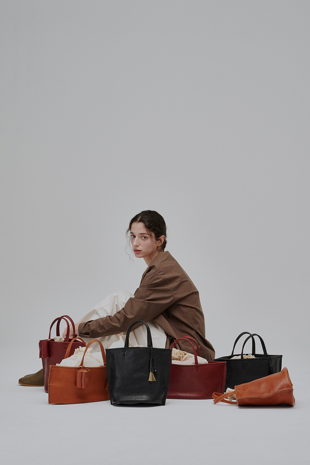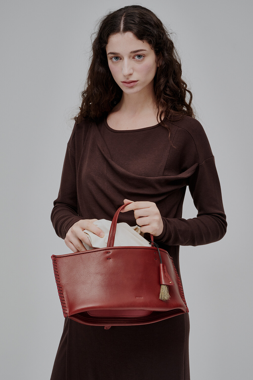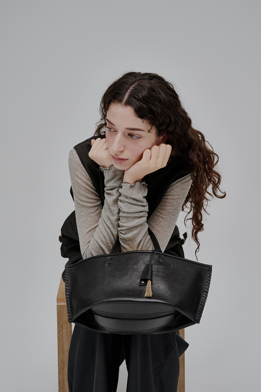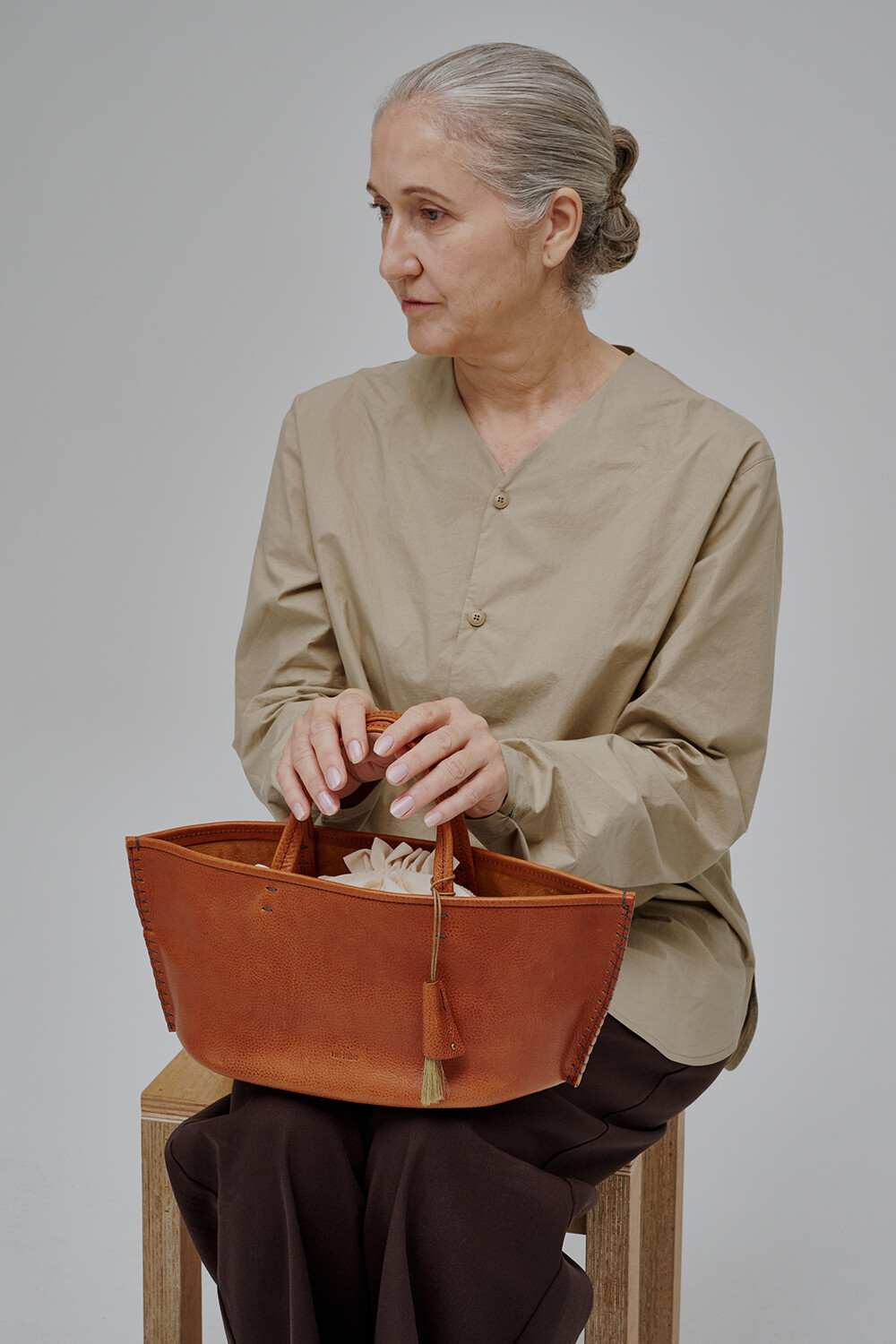 이탈리아산 천연 베지터블 가죽이 가지고 있는 본연의 멋을 고스란히 살려 깔끔하고 담백한 느낌을 주는 가방입니다. 손잡이에는 싸리로 제작한 솔 참을 달아 유르트만의 감도를 더해주었습니다. 바닥면에는 통가죽을 덧대어 사용 시 밑면이 무너지지 않도록 단단히 잡아줄 뿐 아니라, 안으로 접혀 플랫한 상태로 보관이 용이하도록 감각적인 실용성을 더했습니다. 물건을 넣었을 땐 보트 형태로 바닥이 넓게 펼쳐지며 넉넉한 수납이 가능합니다. 안감이 없이도 부담 없이 사용하실 수 있도록 패브릭 이너 파우치를 함께 구성했으며, 멀버리, 카멜, 블랙의 3가지 색상으로 만나보실 수 있습니다.