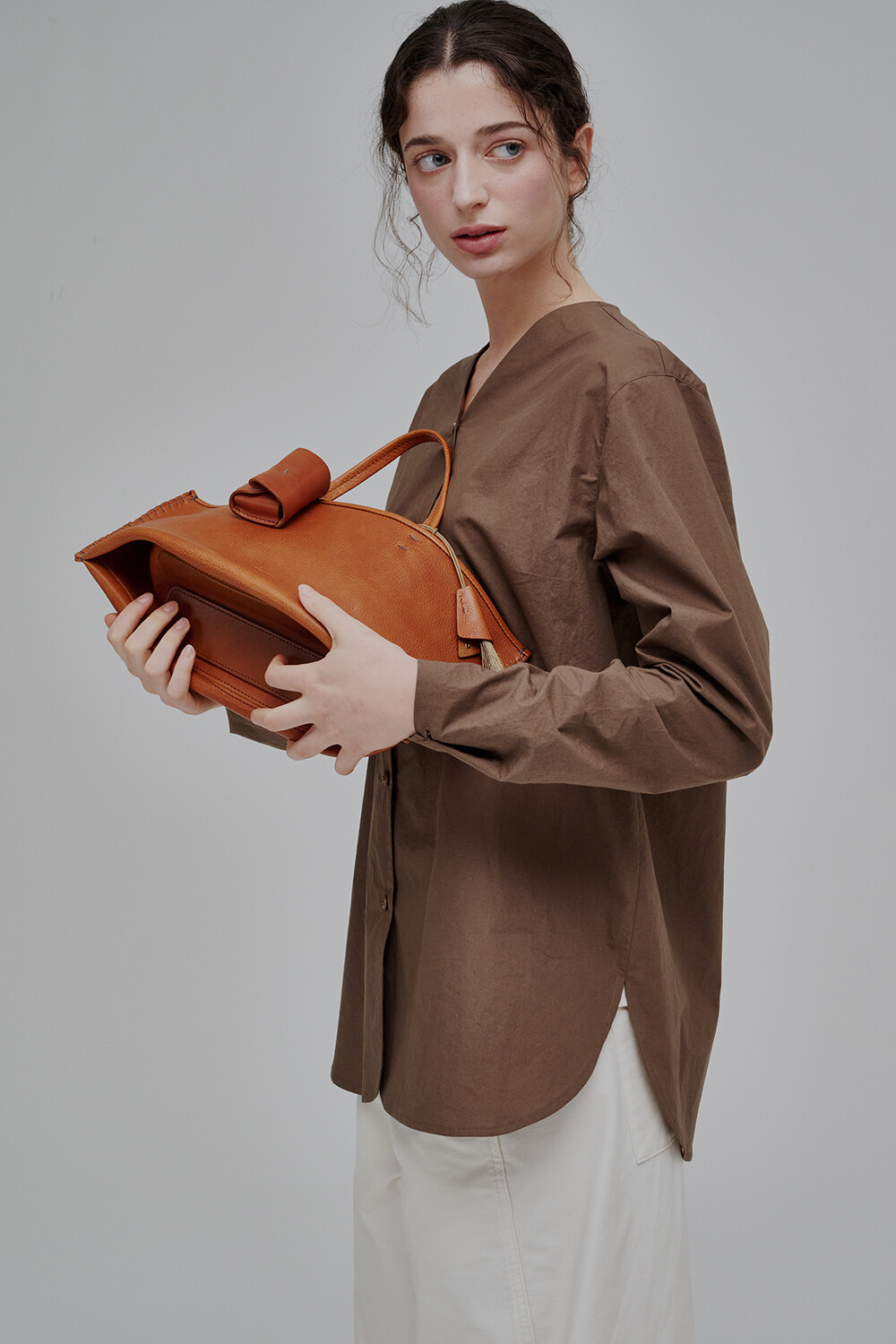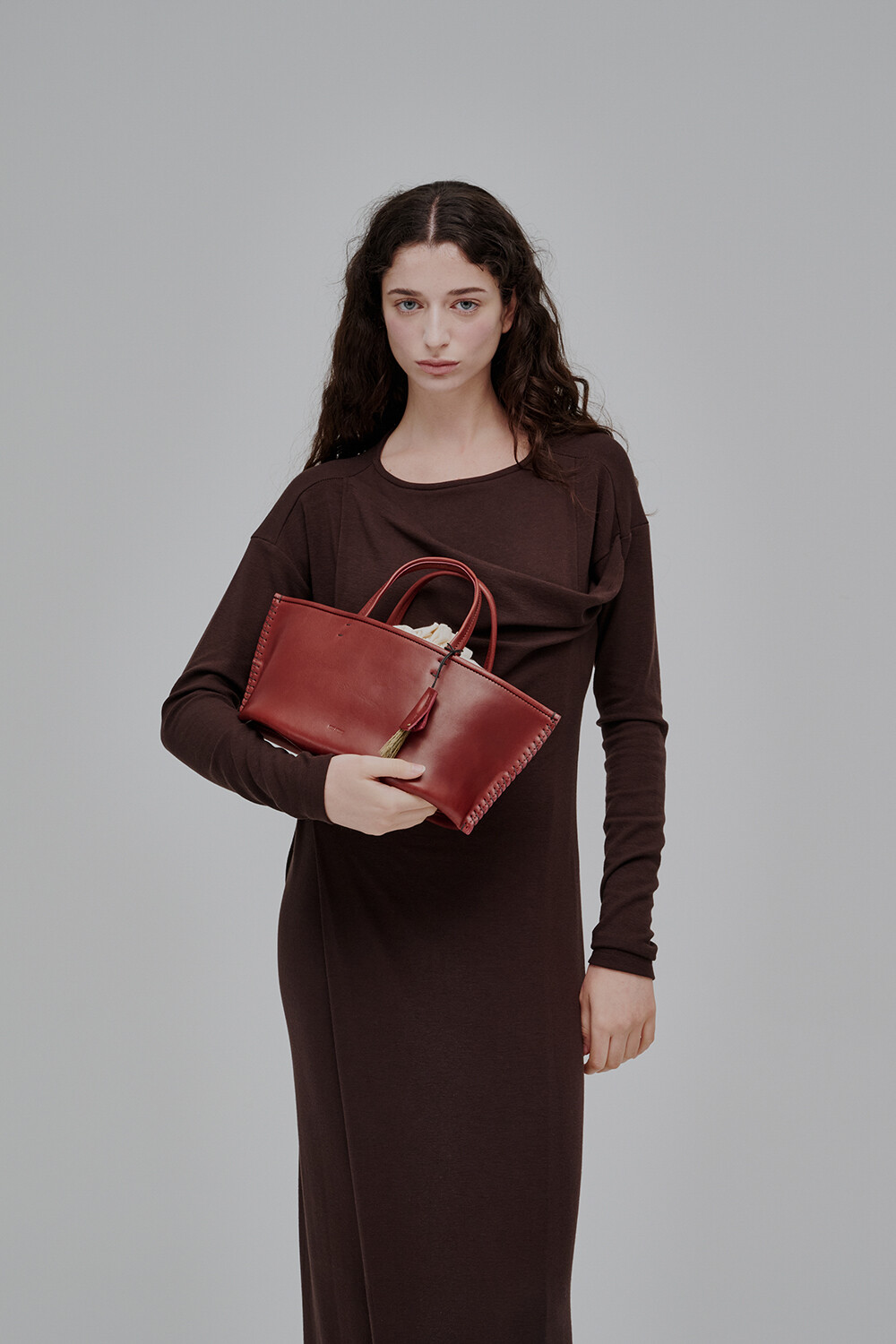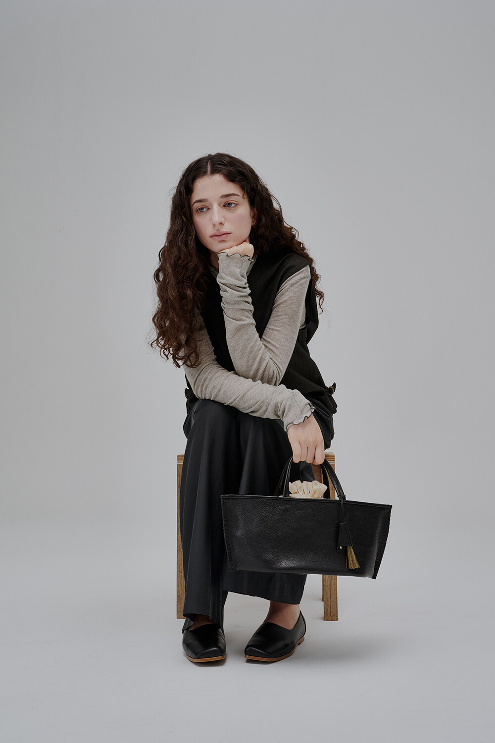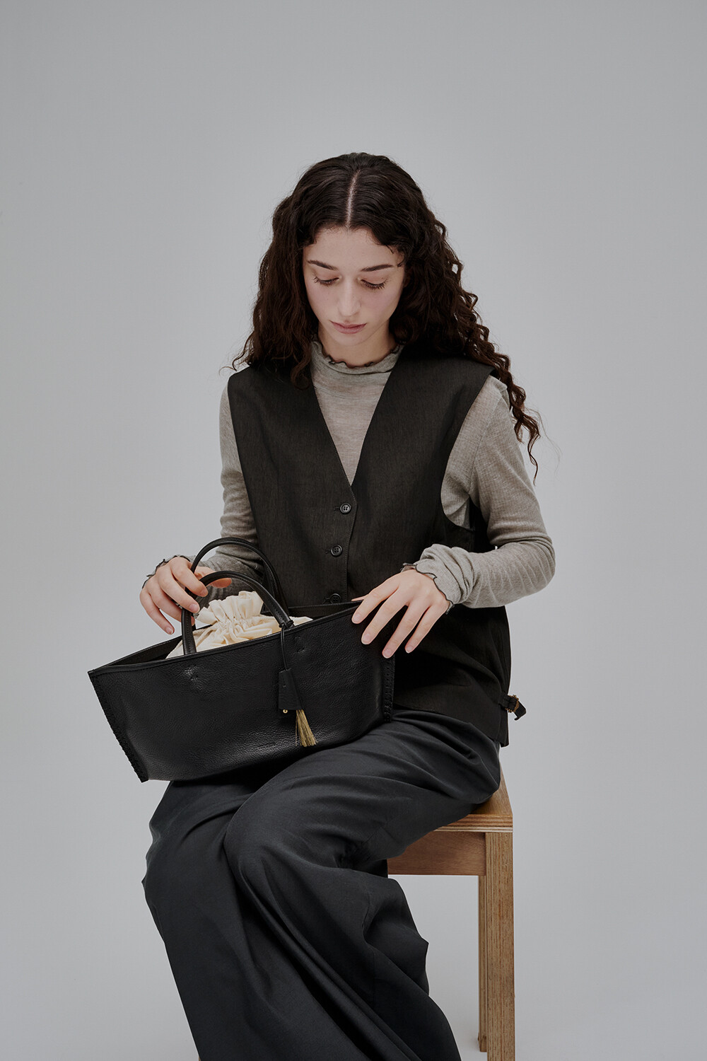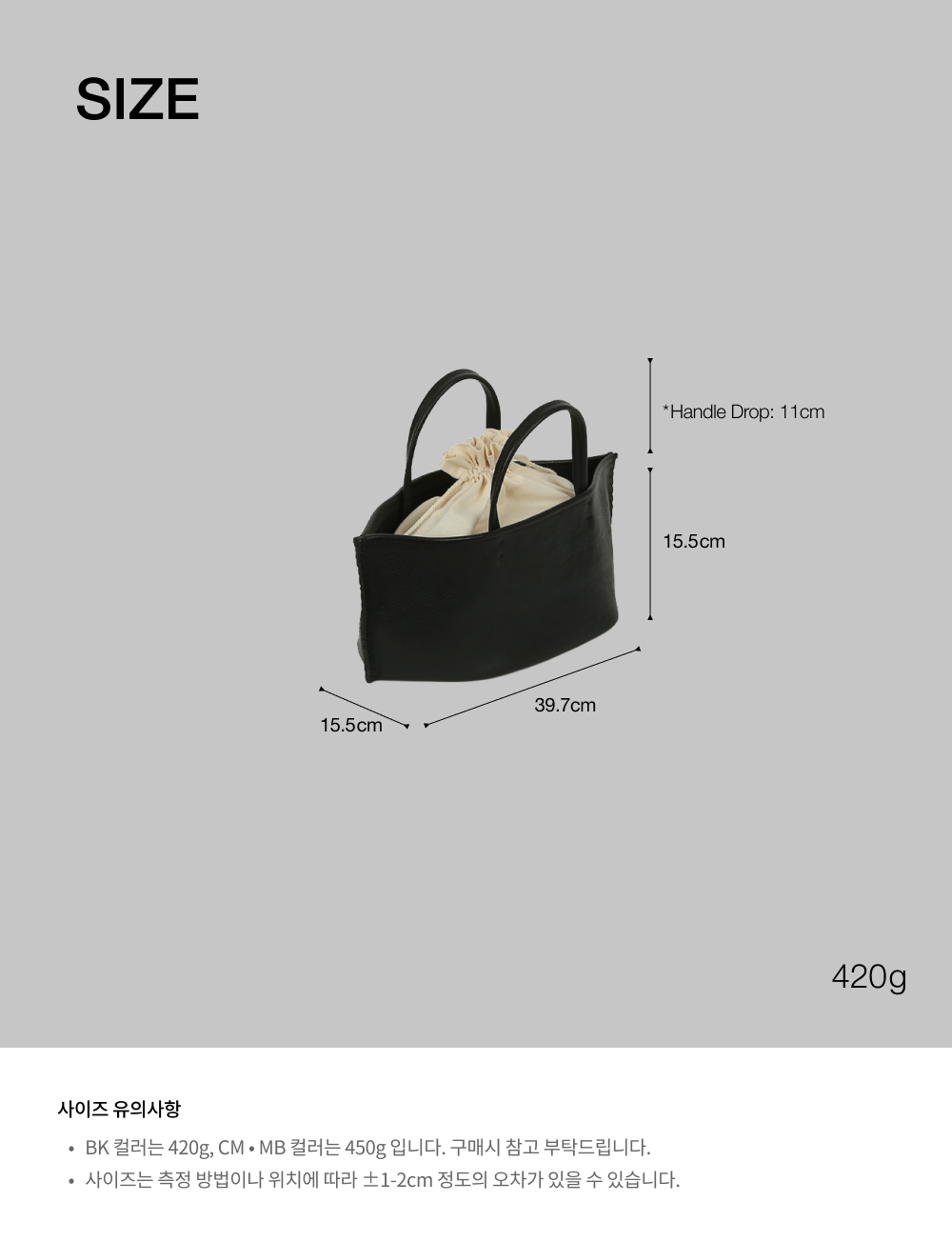 이탈리아산 천연 베지터블 가죽이 가지고 있는 본연의 멋을 고스란히 살려 깔끔하고 담백한 느낌을 주는 가방입니다. 손잡이에는 싸리로 제작한 솔 참을 달아 유르트만의 감도를 더해주었습니다. 바닥면에는 통가죽을 덧대어 사용 시 밑면이 무너지지 않도록 단단히 잡아줄 뿐 아니라, 안으로 접혀 플랫한 상태로 보관이 용이하도록 감각적인 실용성을 더했습니다. 물건을 넣었을 땐 보트 형태로 바닥이 넓게 펼쳐지며 넉넉한 수납이 가능합니다. 안감이 없이도 부담 없이 사용하실 수 있도록 패브릭 이너 파우치를 함께 구성했으며, 멀버리, 카멜, 블랙의 3가지 색상으로 만나보실 수 있습니다.