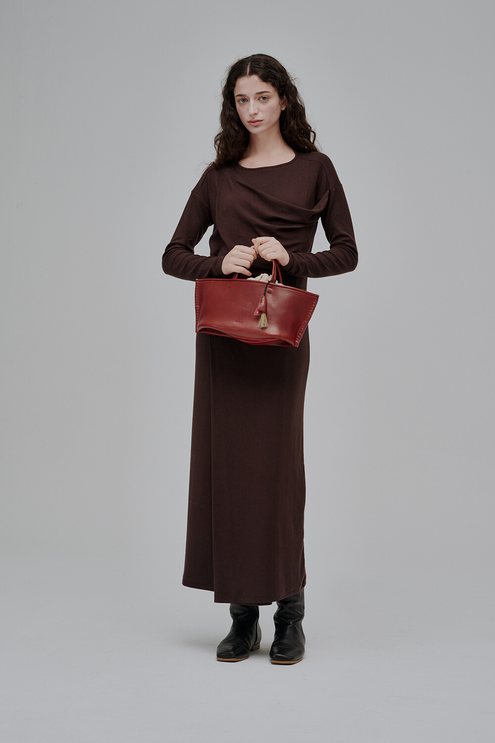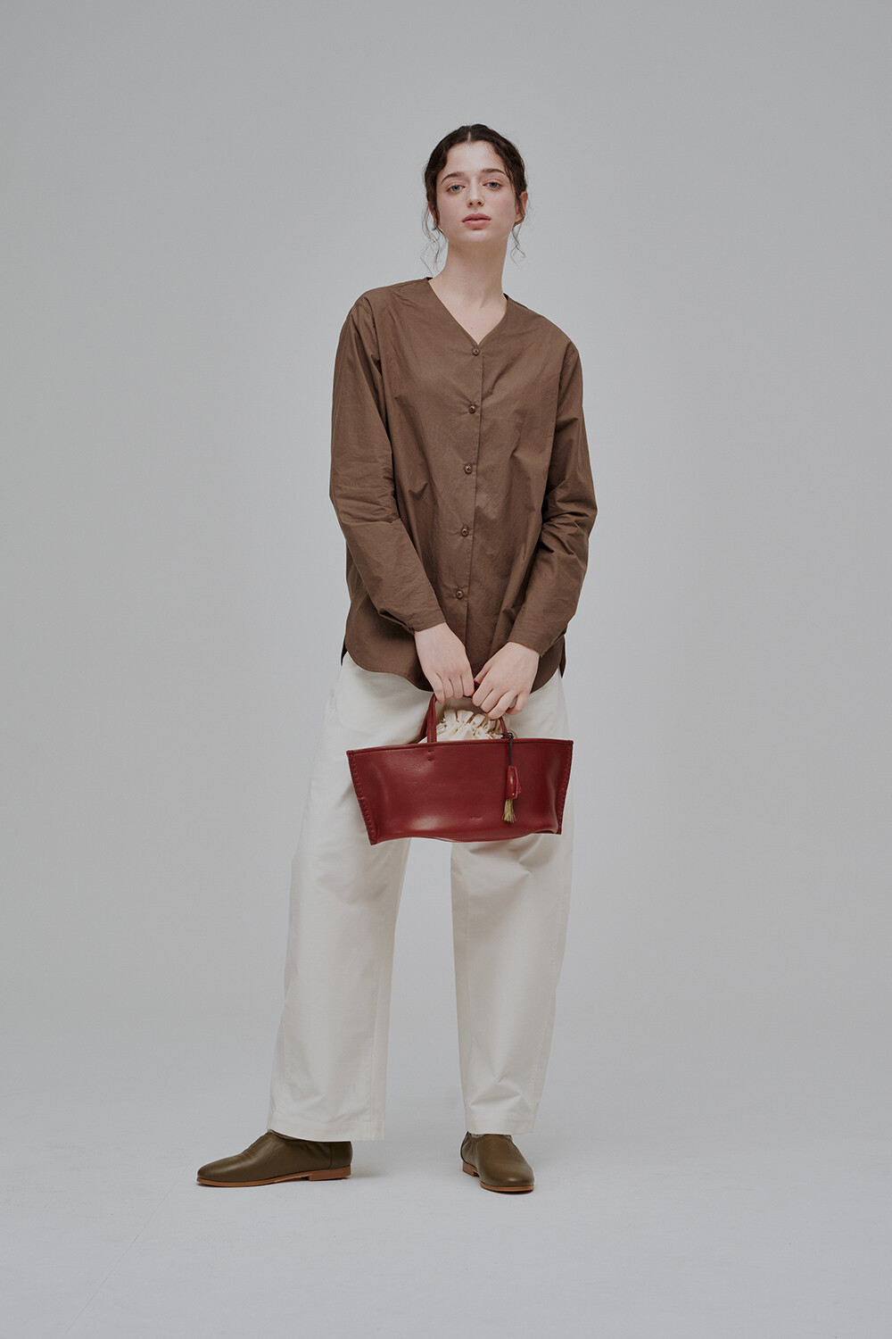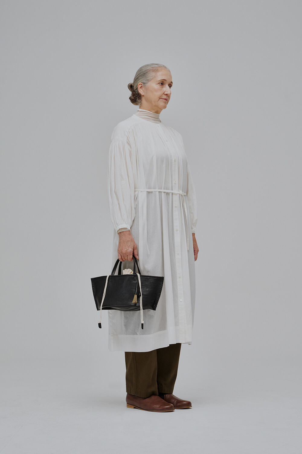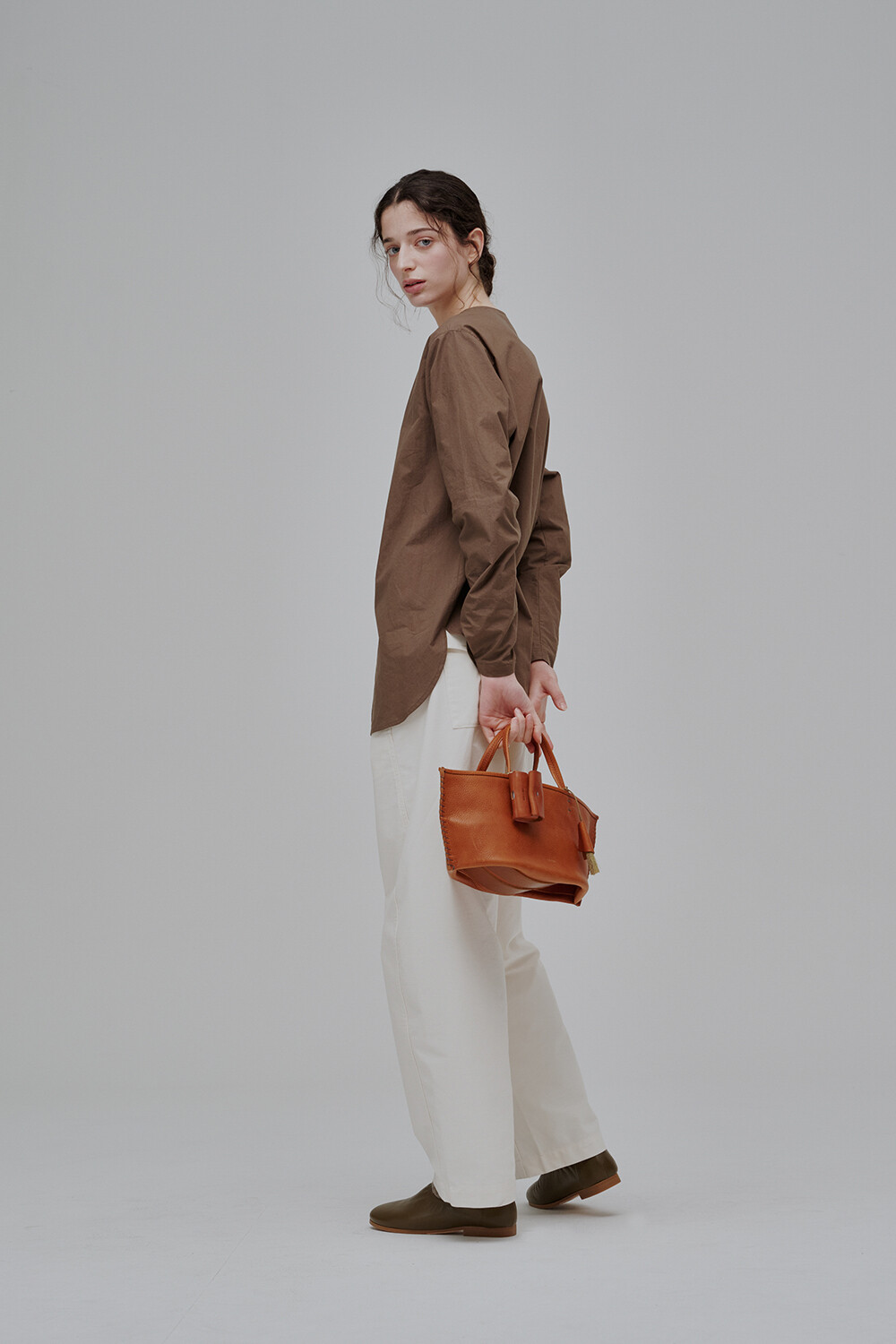 이탈리아산 천연 베지터블 가죽이 가지고 있는 본연의 멋을 고스란히 살려 깔끔하고 담백한 느낌을 주는 가방입니다. 손잡이에는 싸리로 제작한 솔 참을 달아 유르트만의 감도를 더해주었습니다. 바닥면에는 통가죽을 덧대어 사용 시 밑면이 무너지지 않도록 단단히 잡아줄 뿐 아니라, 안으로 접혀 플랫한 상태로 보관이 용이하도록 감각적인 실용성을 더했습니다. 물건을 넣었을 땐 보트 형태로 바닥이 넓게 펼쳐지며 넉넉한 수납이 가능합니다. 안감이 없이도 부담 없이 사용하실 수 있도록 패브릭 이너 파우치를 함께 구성했으며, 멀버리, 카멜, 블랙의 3가지 색상으로 만나보실 수 있습니다.