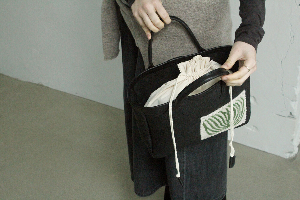 유르트 로고 자수와 가방과 동일한 색상의 가죽 택이 더해진