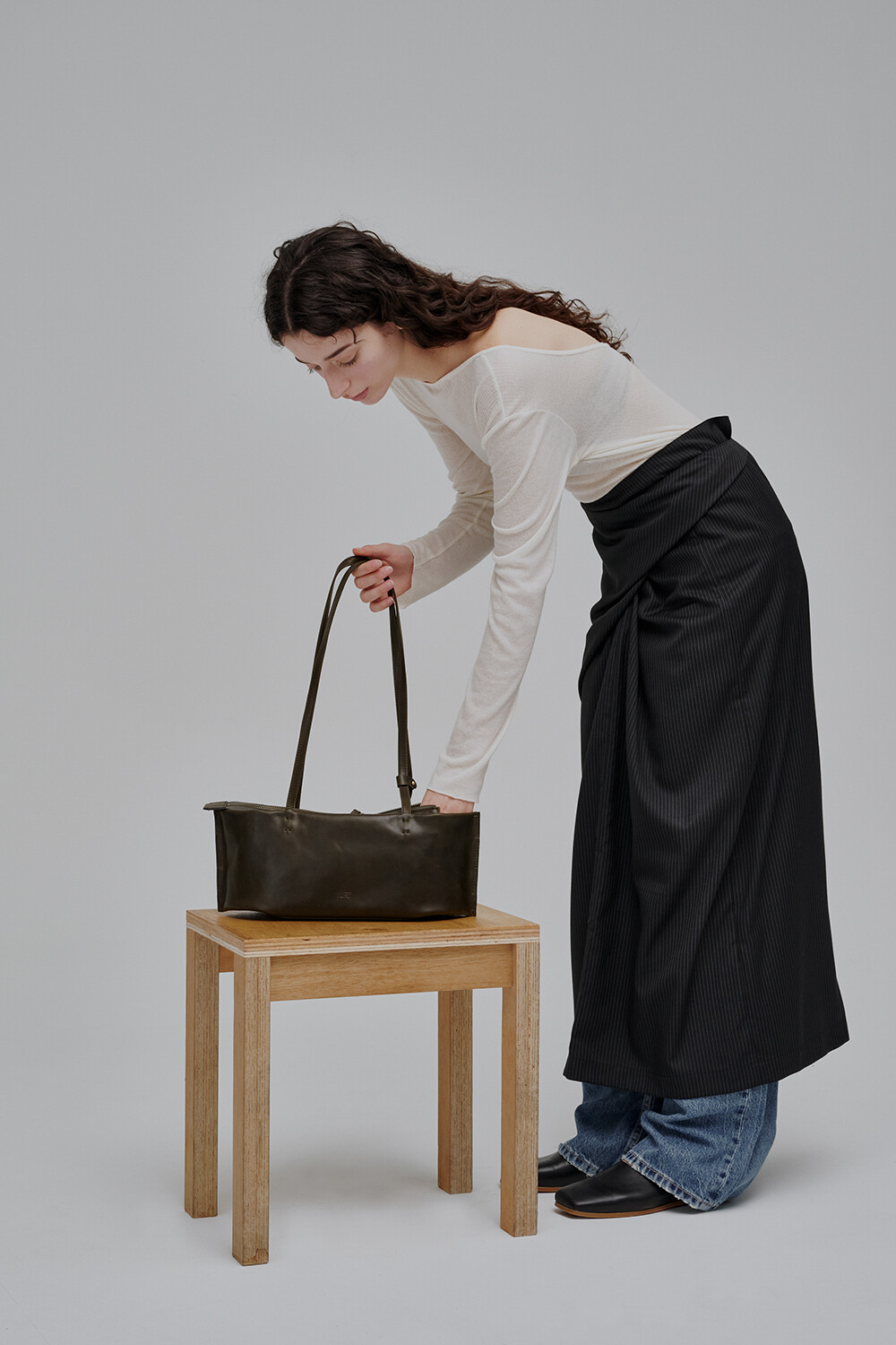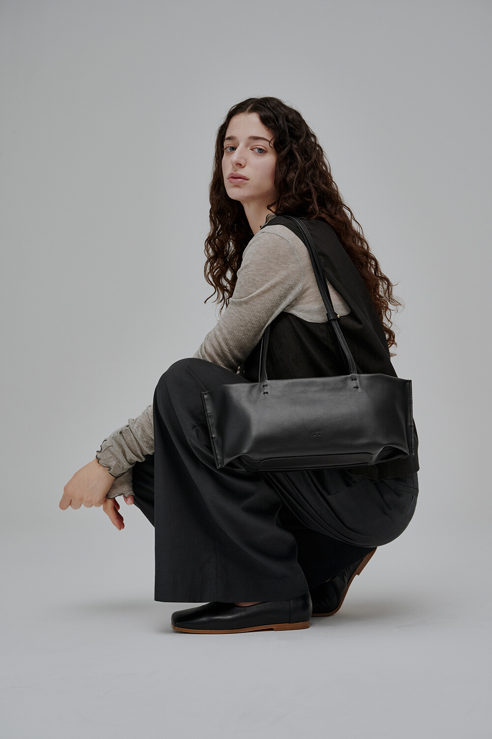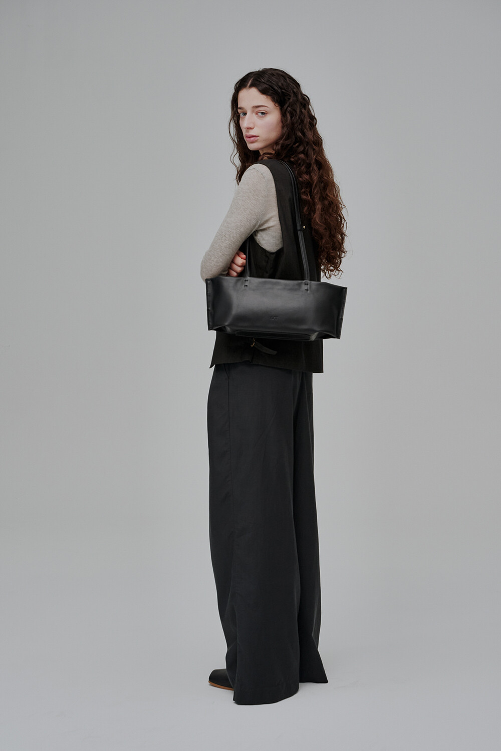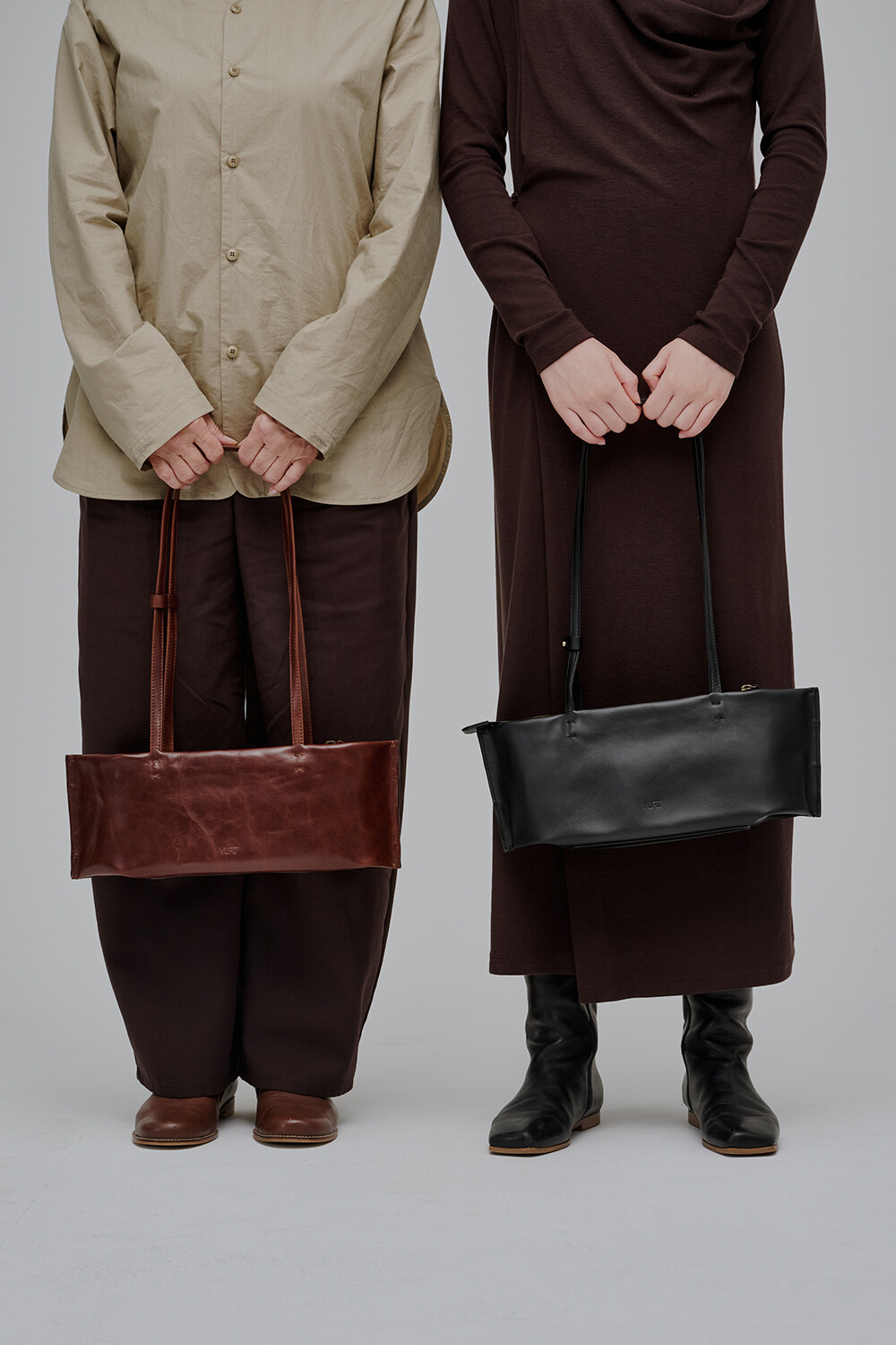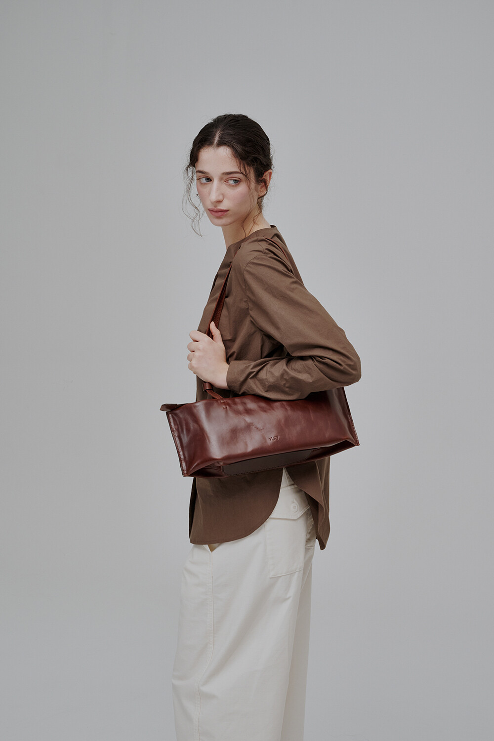 군더더기 없는 디자인에 바닥면이 안으로 접혀 플랫한 상태로 보관이 용이하도록 감각적인 실용성을 더했습니다. 물건을 넣었을 땐 보트 형태로 바닥이 넓게 펼쳐지며 넉넉한 수납이 가능합니다. 보이지 않는 가방의 가장 아랫목에는 통가죽을 덧대어 오래 사용해도 변함없는 실루엣을 구현하는 견고함으로 완성했습니다. 착용 시 어깨에서 쉽게 흘러내리지 않도록 스트랩 홀더를 부착하고 내부엔 포켓을 더해 시즌에 구애받지 않고 매일 함께하기 좋은 숄더백입니다.