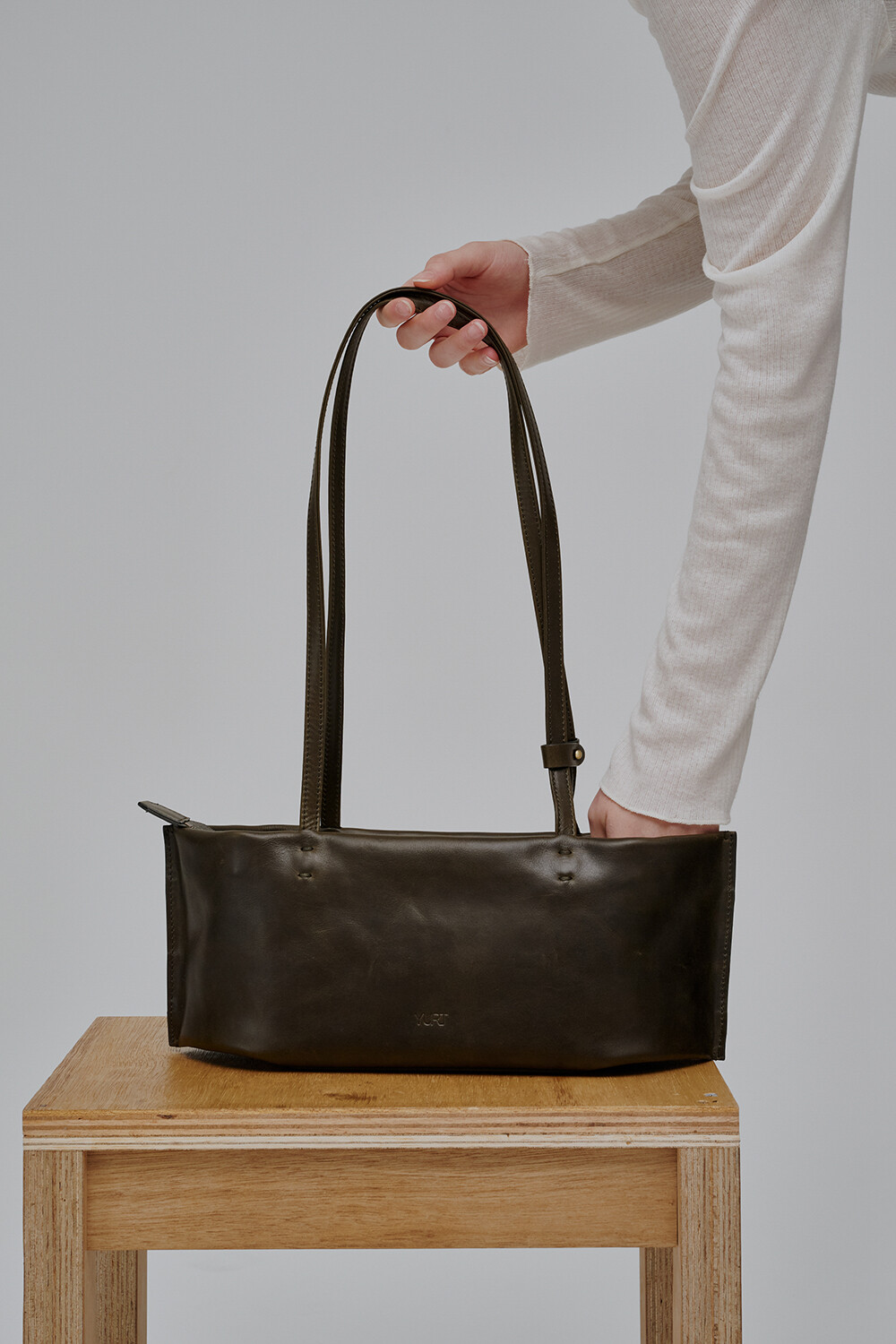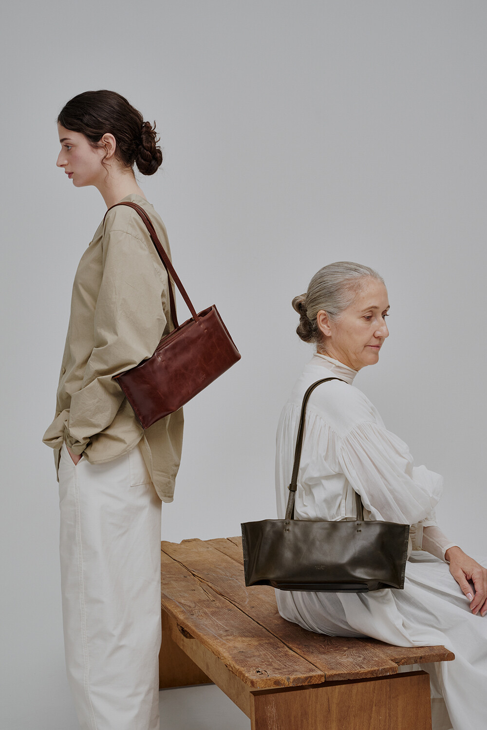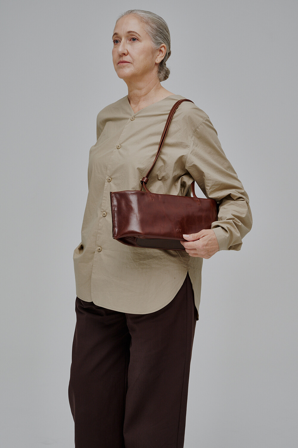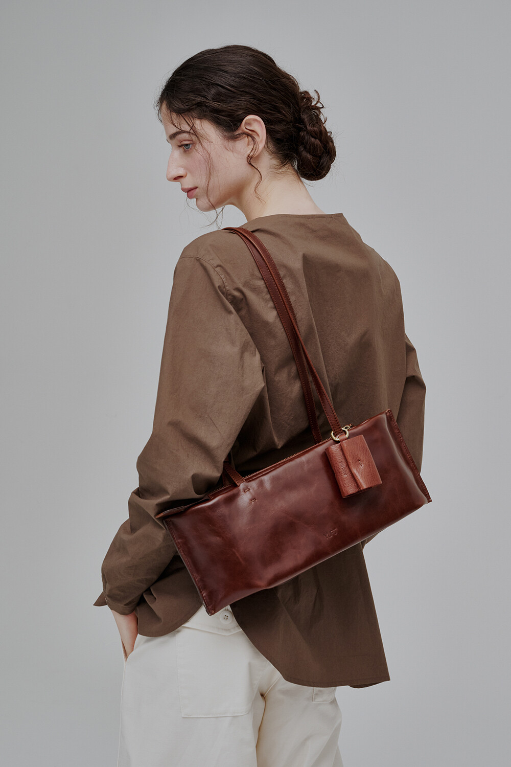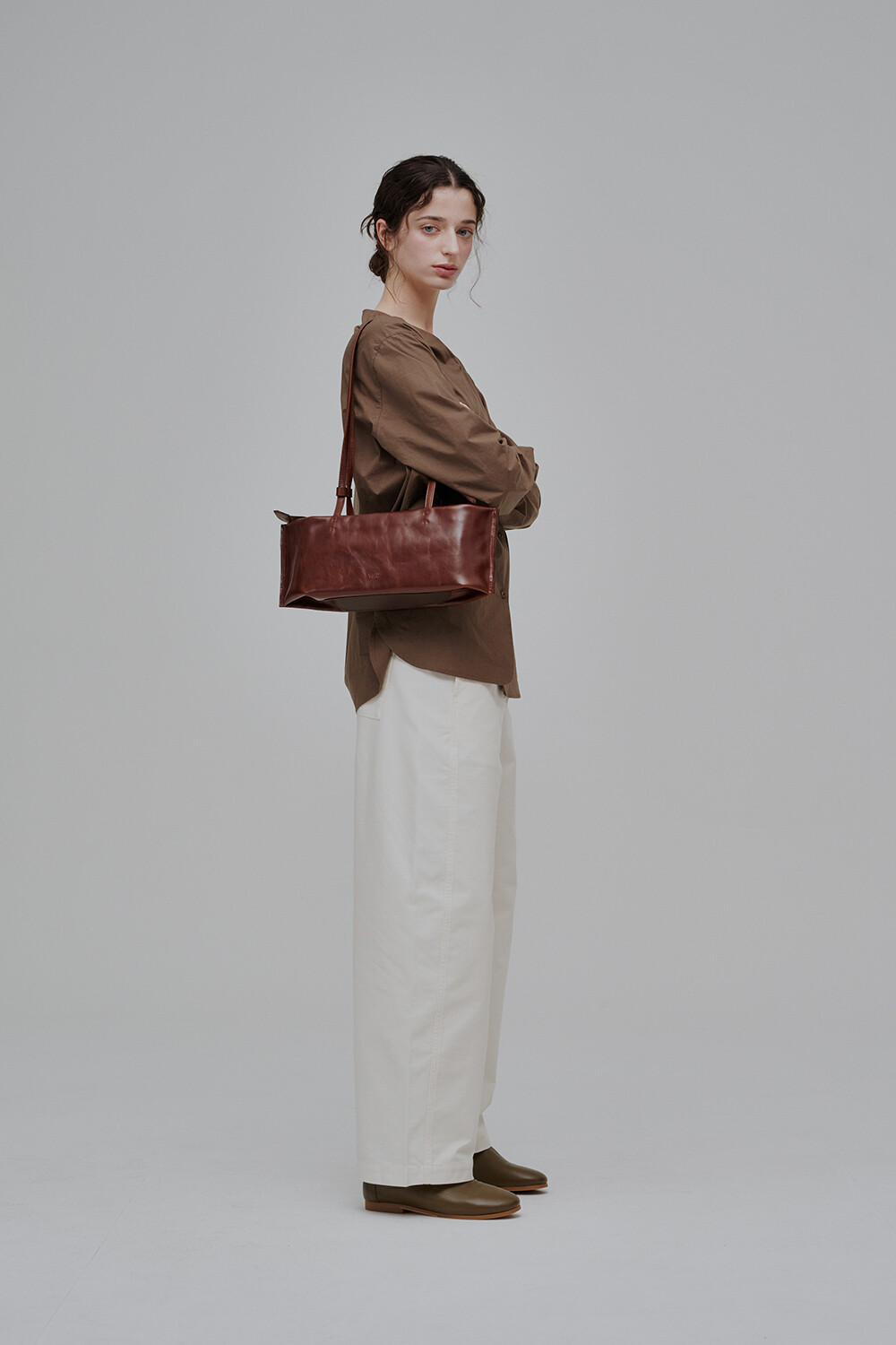 군더더기 없는 디자인에 바닥면이 안으로 접혀 플랫한 상태로 보관이 용이하도록 감각적인 실용성을 더했습니다. 물건을 넣었을 땐 보트 형태로 바닥이 넓게 펼쳐지며 넉넉한 수납이 가능합니다. 보이지 않는 가방의 가장 아랫목에는 통가죽을 덧대어 오래 사용해도 변함없는 실루엣을 구현하는 견고함으로 완성했습니다. 착용 시 어깨에서 쉽게 흘러내리지 않도록 스트랩 홀더를 부착하고 내부엔 포켓을 더해 시즌에 구애받지 않고 매일 함께하기 좋은 숄더백입니다.