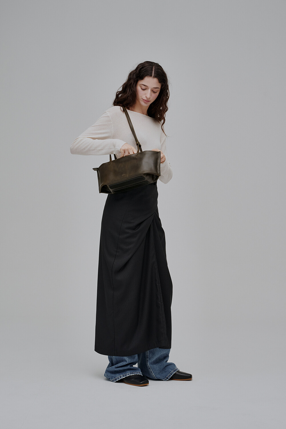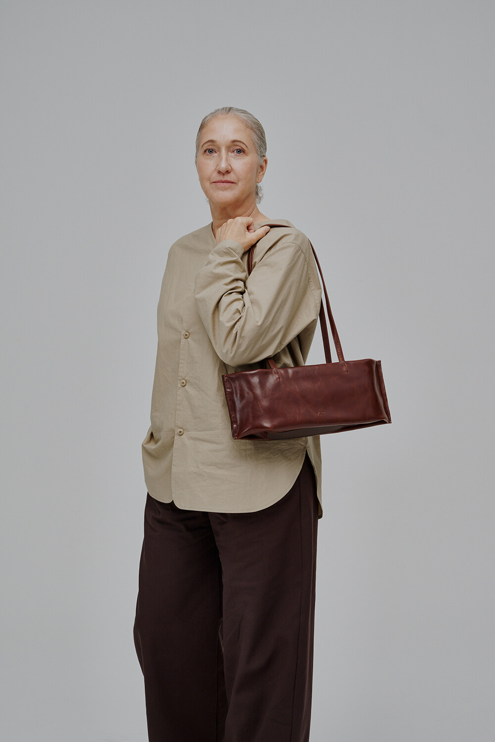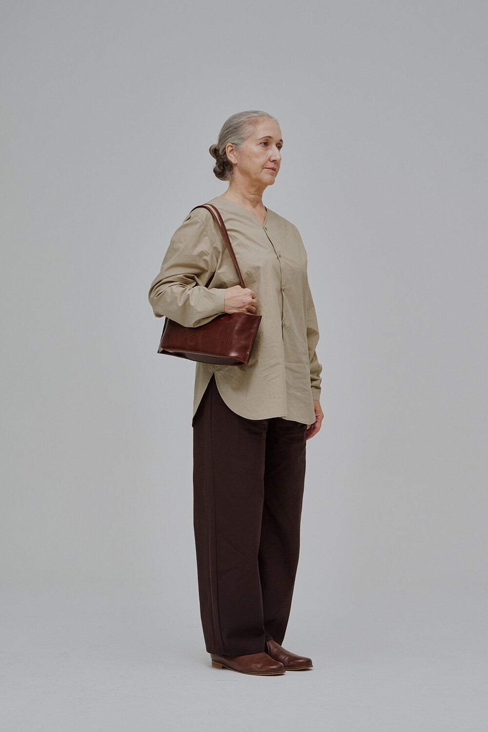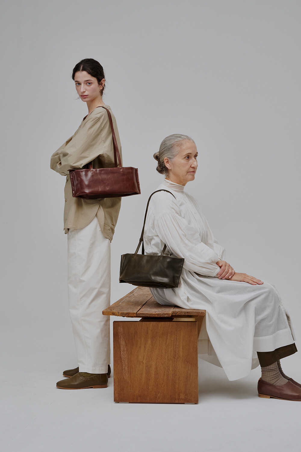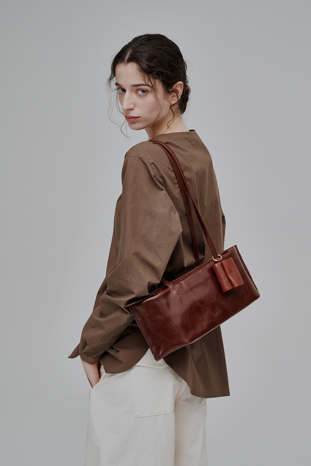 군더더기 없는 디자인에 바닥면이 안으로 접혀 플랫한 상태로 보관이 용이하도록 감각적인 실용성을 더했습니다. 물건을 넣었을 땐 보트 형태로 바닥이 넓게 펼쳐지며 넉넉한 수납이 가능합니다. 보이지 않는 가방의 가장 아랫목에는 통가죽을 덧대어 오래 사용해도 변함없는 실루엣을 구현하는 견고함으로 완성했습니다. 착용 시 어깨에서 쉽게 흘러내리지 않도록 스트랩 홀더를 부착하고 내부엔 포켓을 더해 시즌에 구애받지 않고 매일 함께하기 좋은 숄더백입니다.