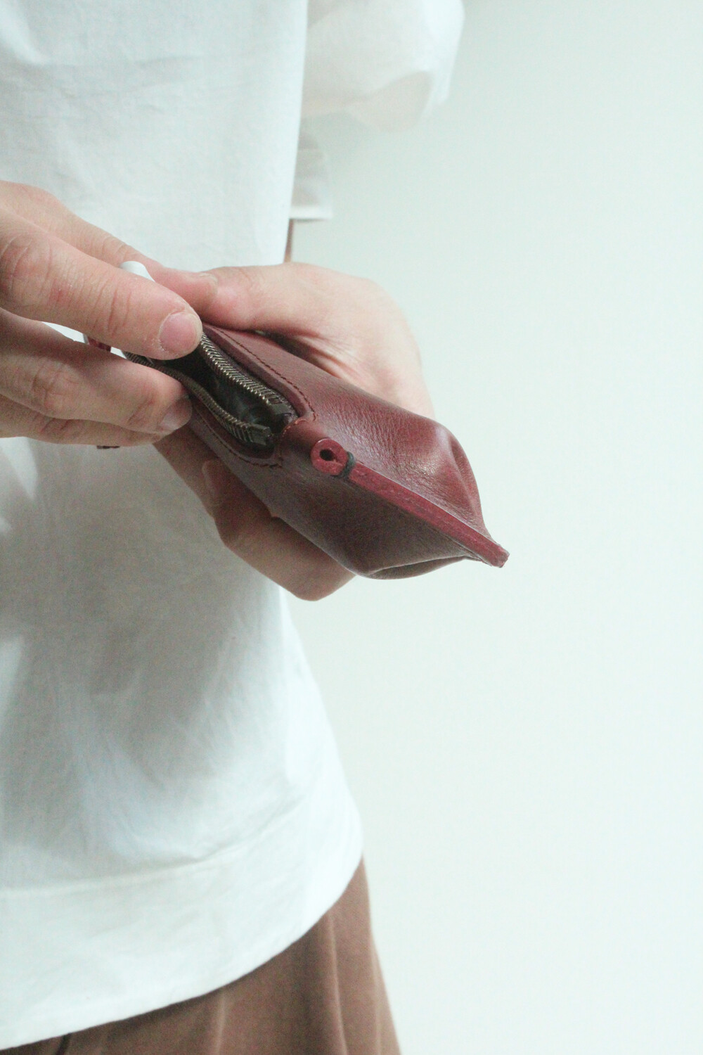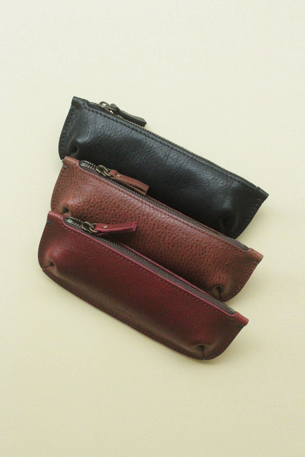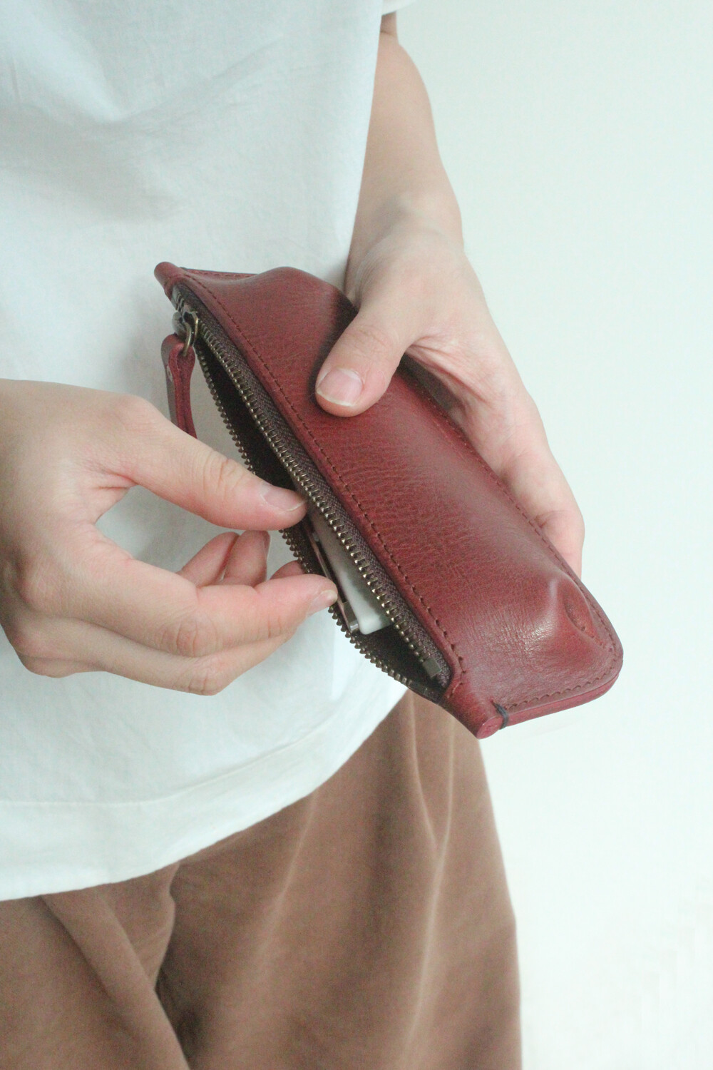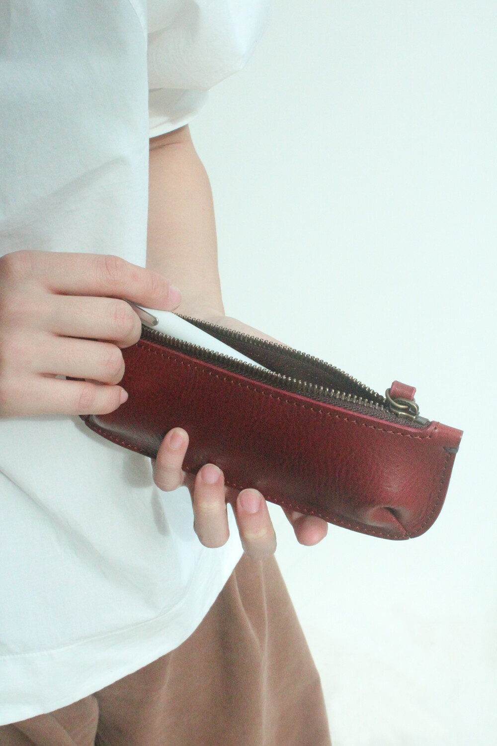지퍼로 열고 닫을 수 있는 실용성과 컴팩트한 크기로 다양한 종류의 펜, 연필, 지우개 등 작은 문구류 및 소지품을 안전하게 보관하실 수 있습니다. 견고한 스티치 라인으로 내구성을 높이고, 이태리산 베지터블 가죽을 사용해 시간이 지남에 따라 은은한 광택과 독특한 개성을 경험하실 수 있는 펜 케이스입니다.