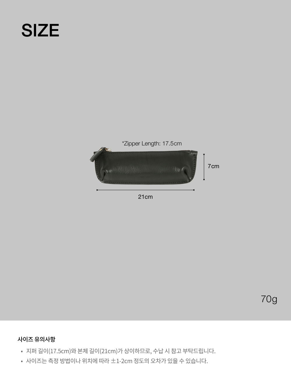 - 천연 베지터블 가죽 소재 특성상 주름, 흉터, 힘줄, 반점 등이 있을 수 있습니다. 같은 가죽이라도 그 부위에 따라 엠보와 두께가 달라 제작 시 다양한 결과물이 나타나는 점 안내드립니다.