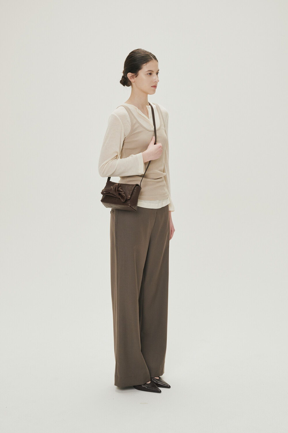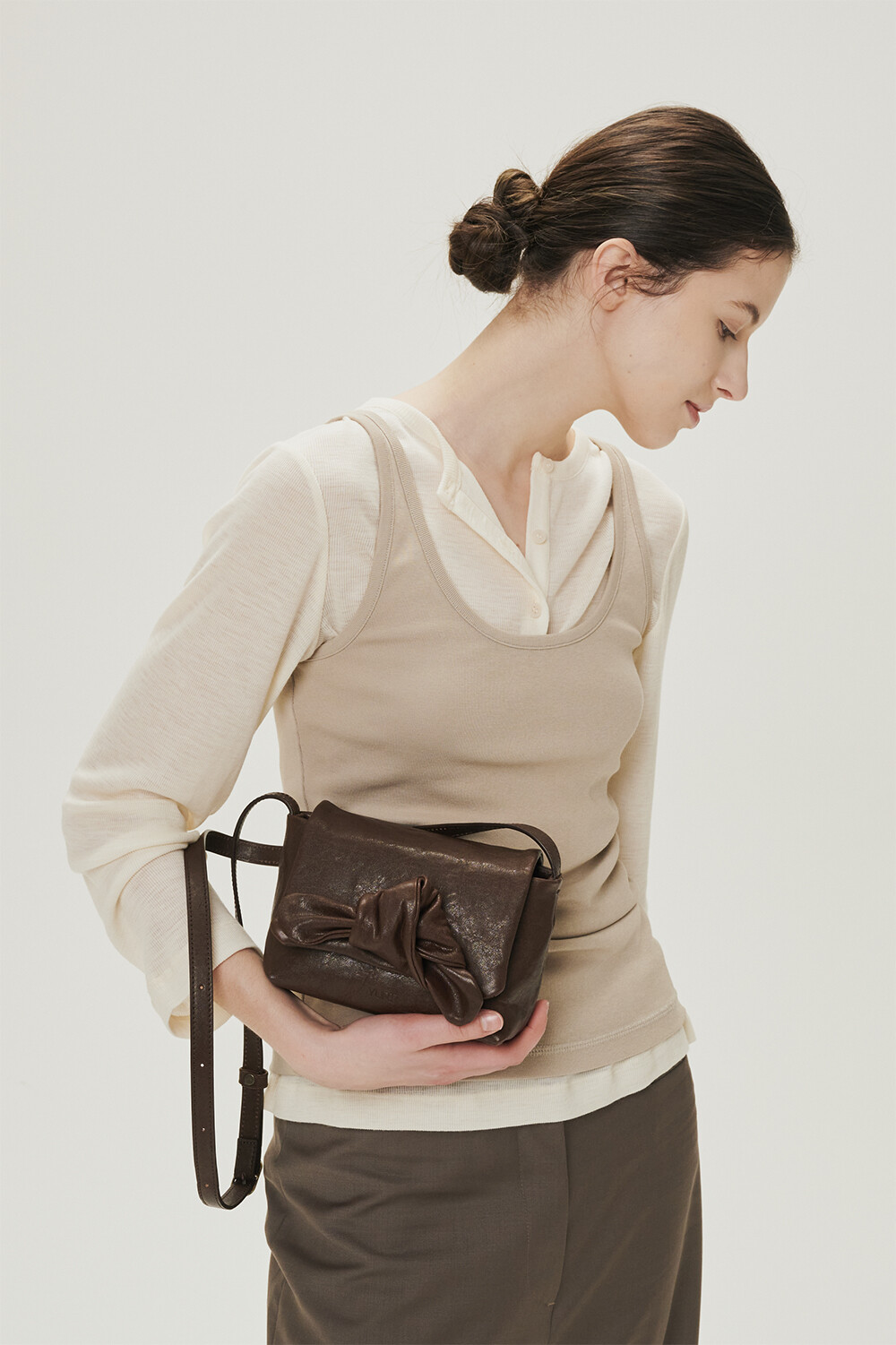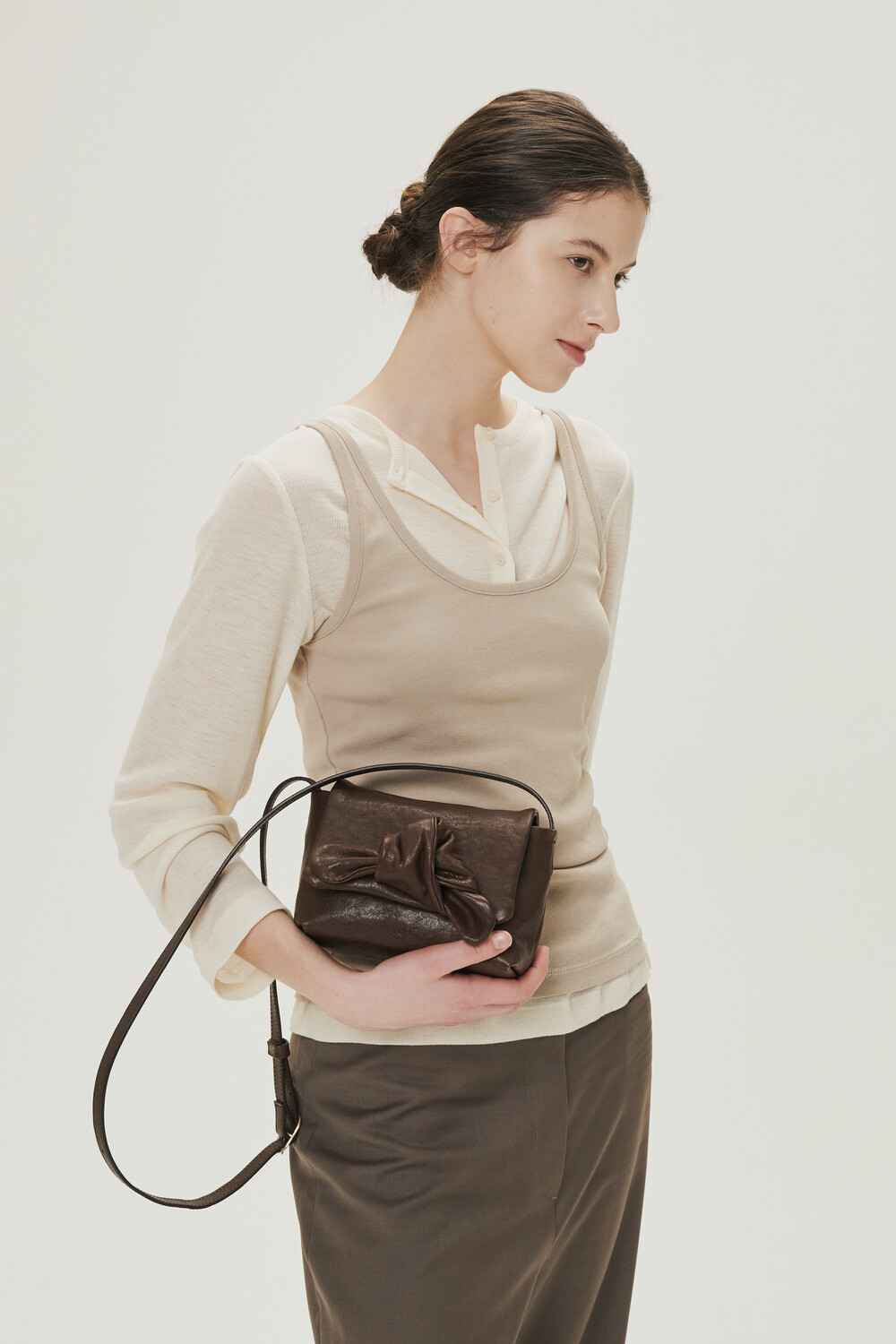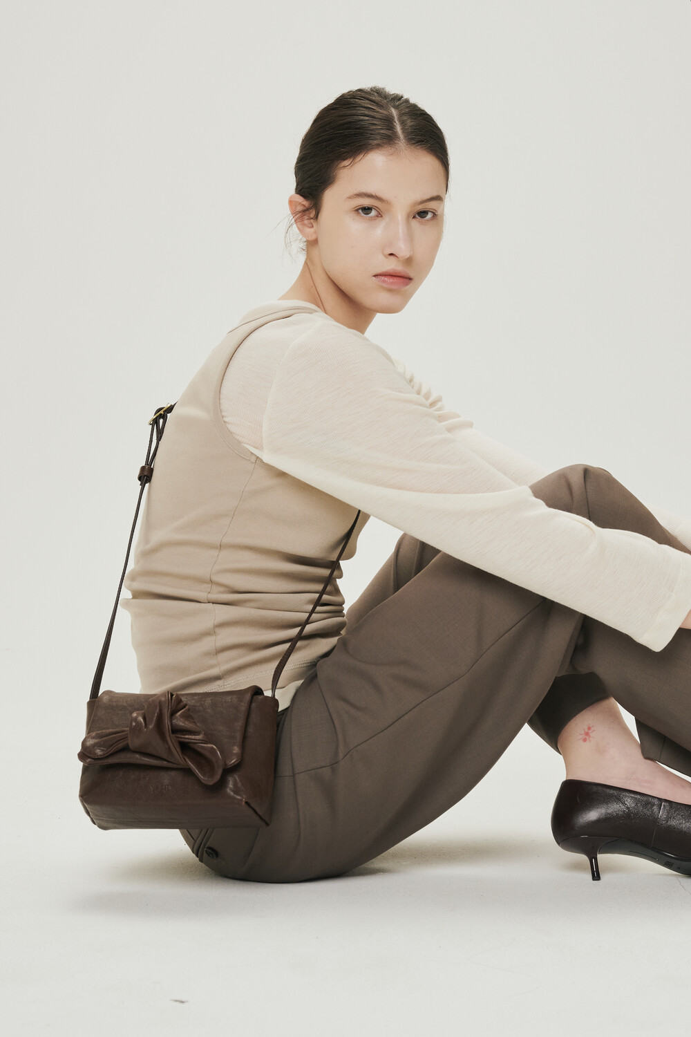 해당 상품의 리본 디테일은 유르트 디자이너가 하나하나 직접 리본을 잡아 마무리하여 출고됩니다. 그 과정에서 리본의 형태와 볼륨감은 제품마다 미세한 차이가 있을 수 있으며, 이는 수작업 공정에서 자연스럽게 만들어지는 결과물입니다.