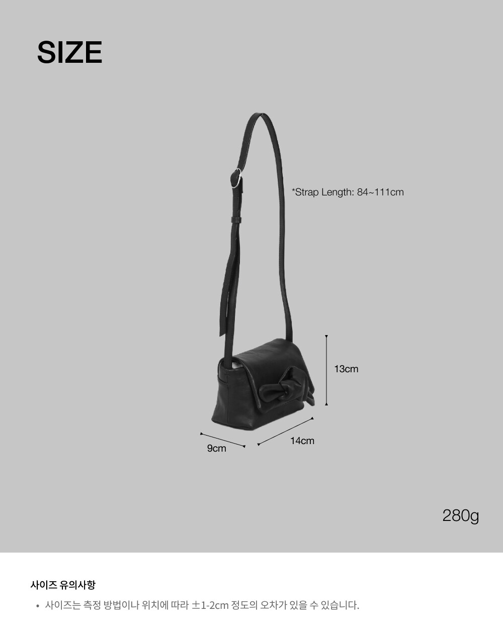 - 미니백이지만 밑면의 넓은 폭으로 핸드폰, 에어팟, 카드 지갑 등 컴팩트한 수납이 가능합니다.