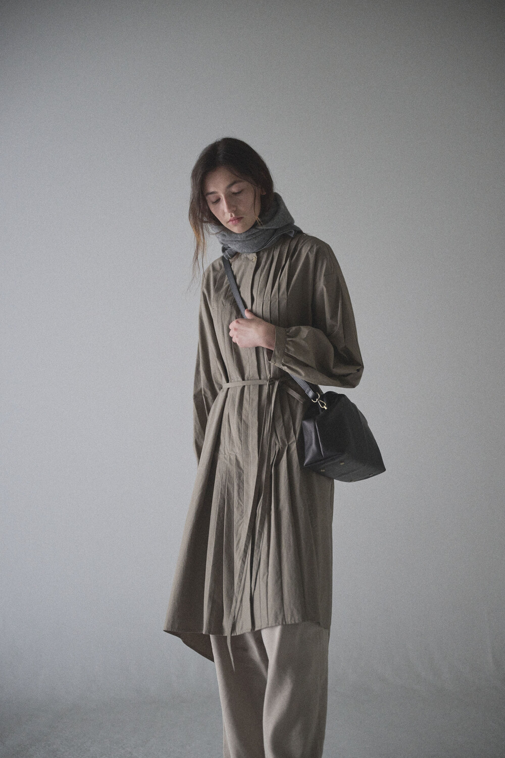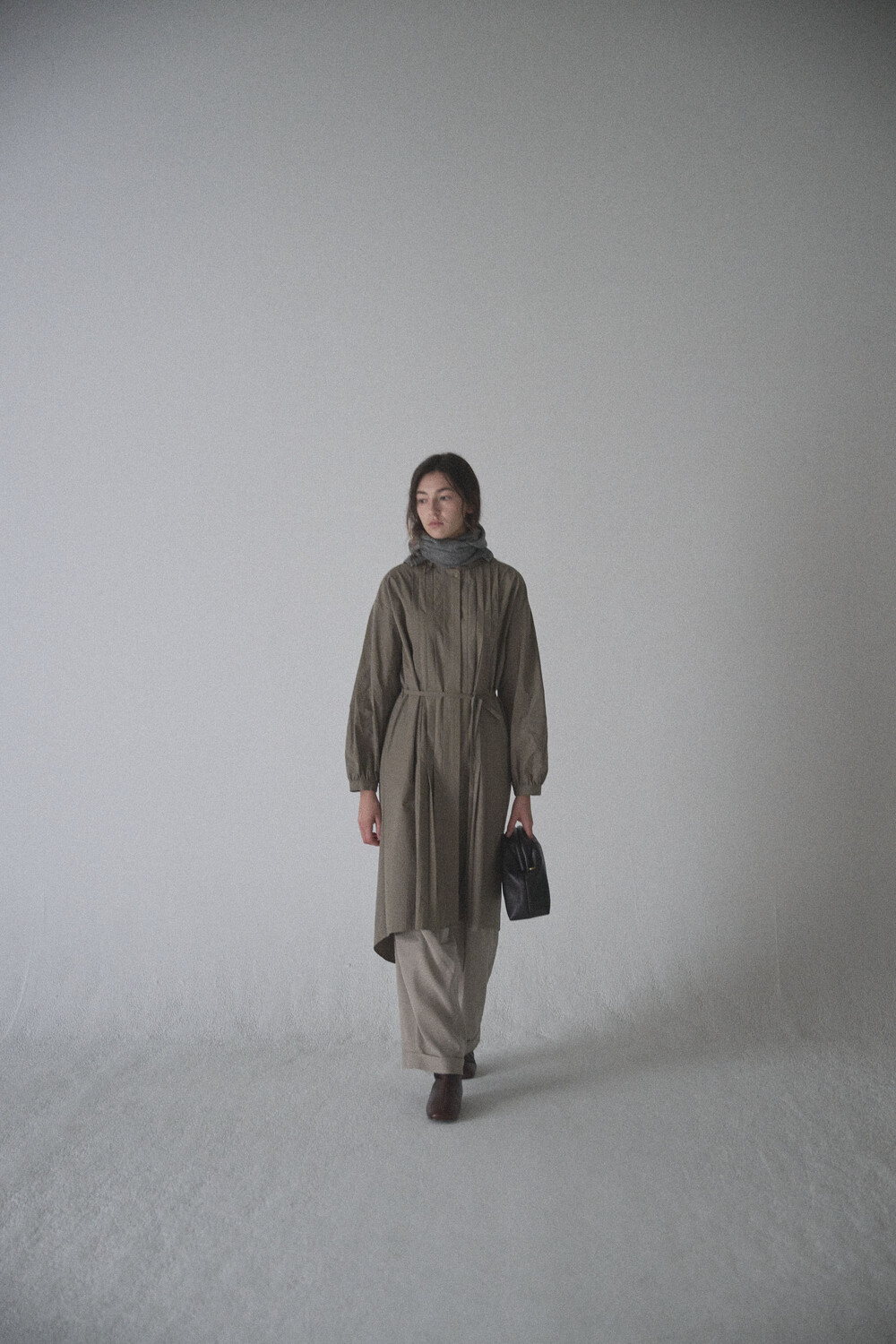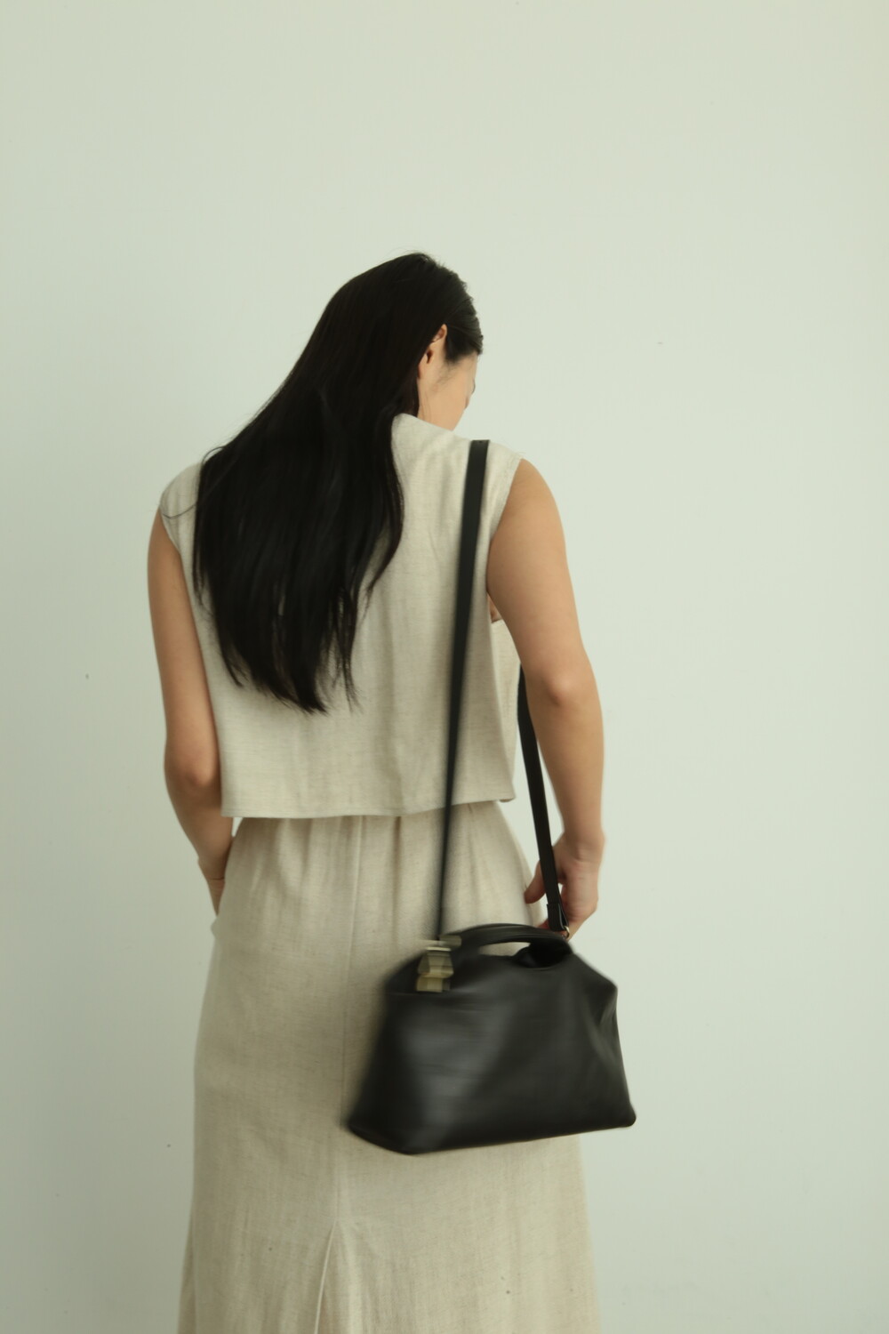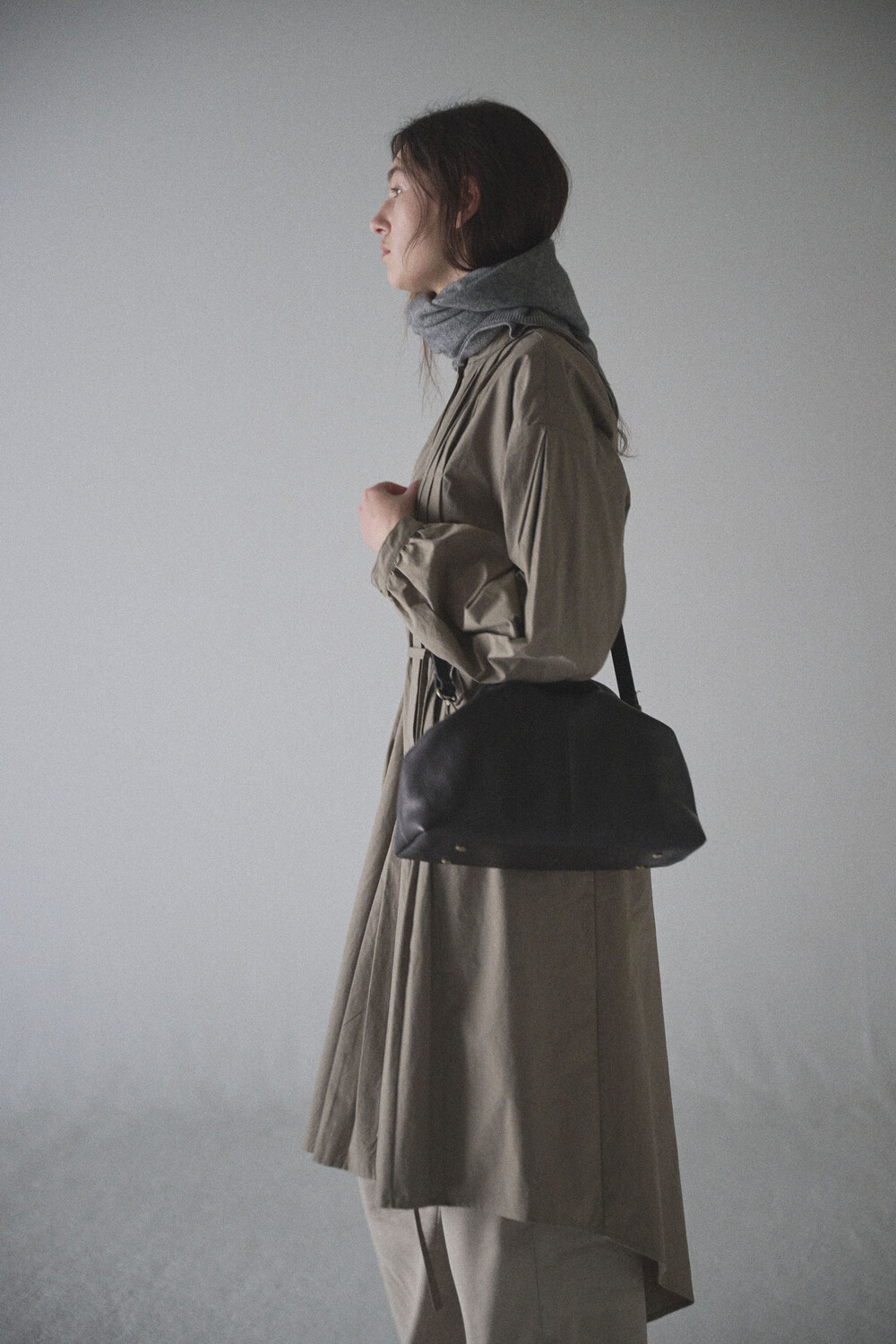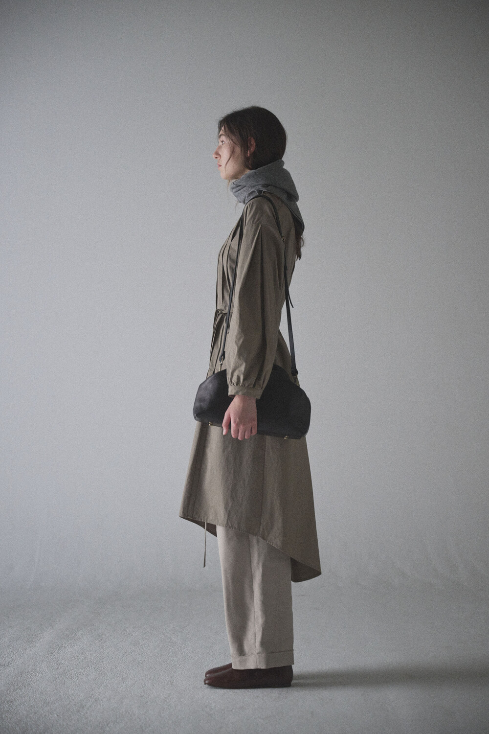 초기에는 가죽이 아직 길들여지지 않아 다소 볼륨감 있게 보일 수 있으며, 사용할수록 부드럽게 변하면서 매트한 실루엣으로 자리잡습니다.