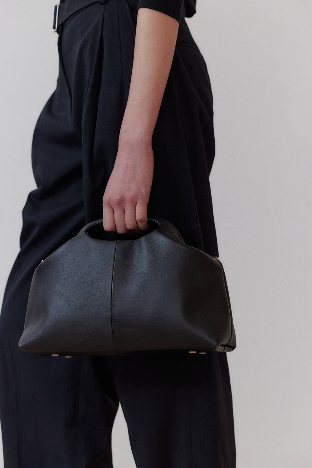 유르트만의 독특한 디자인, 누오입니다. 조개 혹은 반달을 닮은 듯한 유니크한 실루엣과, 자체 제작한 고급 프레임 손잡이와 여닫이 구조가 특징입니다.