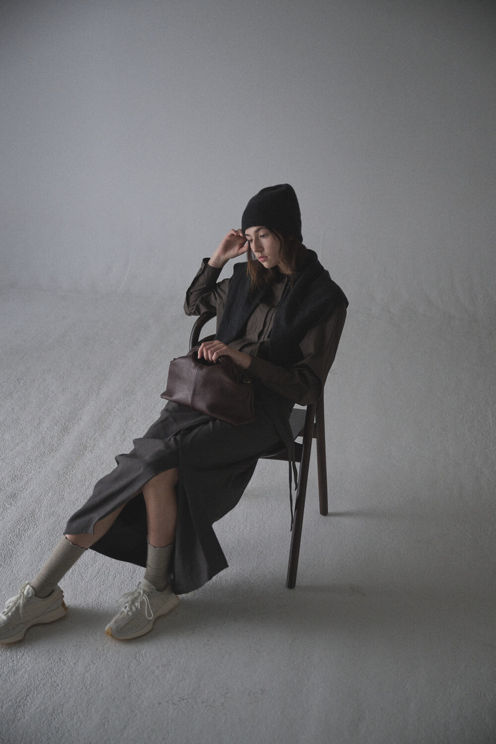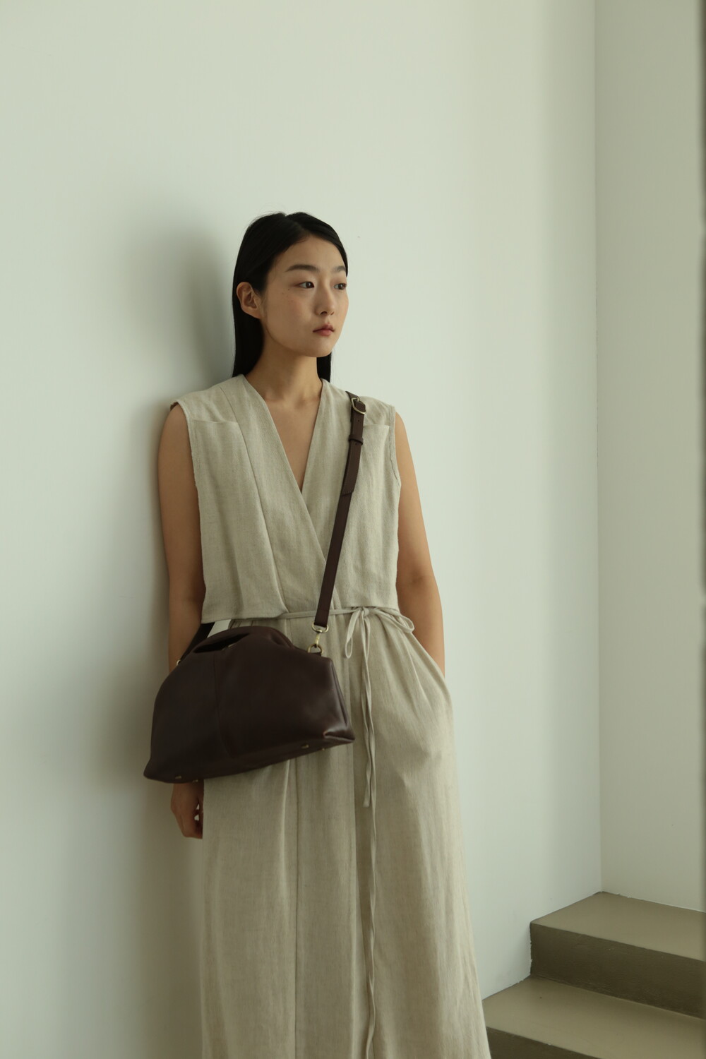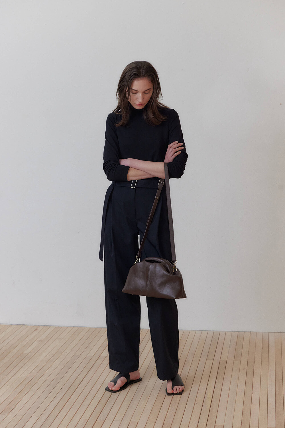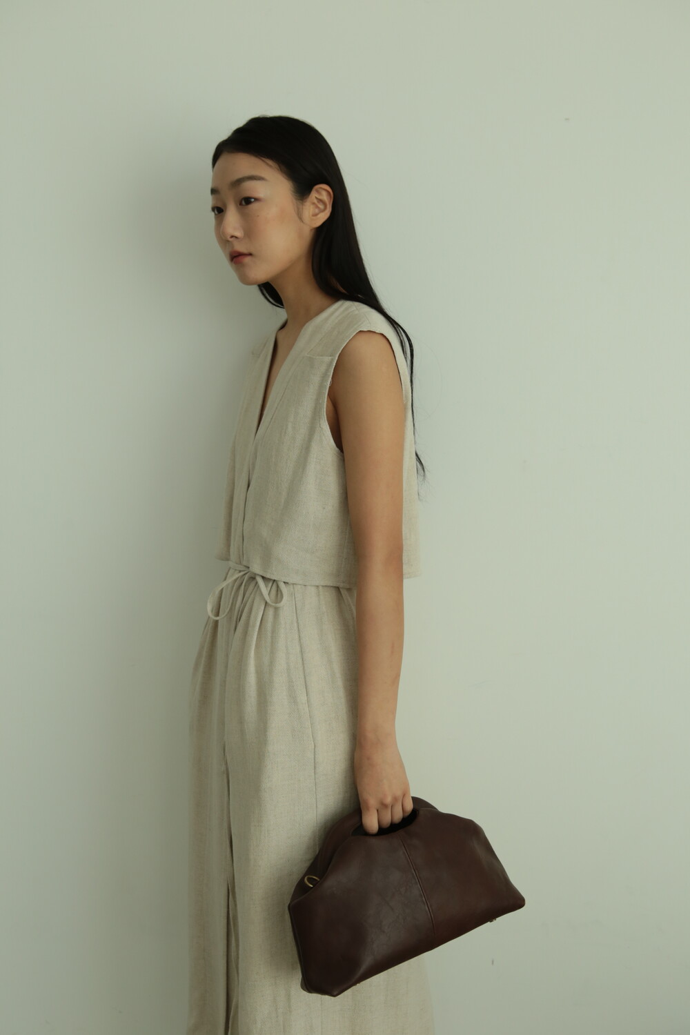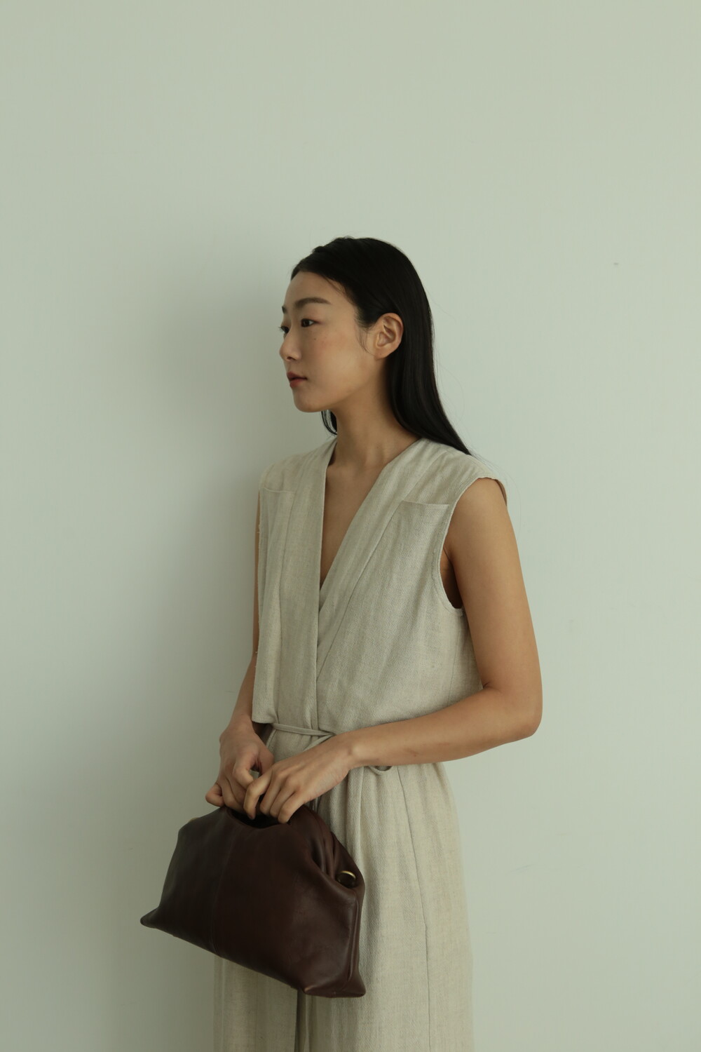 또한 프레임 연결 부분이 가죽과 맞닿아 있어, 손잡이를 오므릴 경우 초기에는 경첩에 맞물린 가죽 두께로 인해 손잡이가 살짝 벌어져 보일 수 있습니다. 이는 사용하면서 가죽이 자연스럽게 길들여지며 점차 안정적으로 여며지게 됩니다. COLOR Black, Choco, Ivory MATERIAL Cow Leather